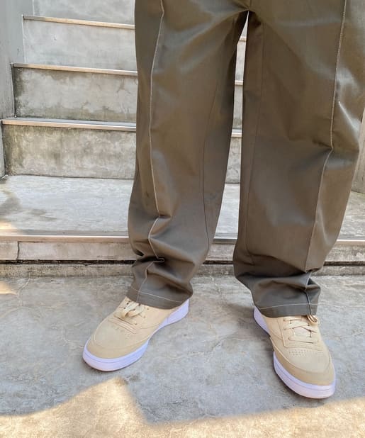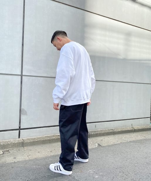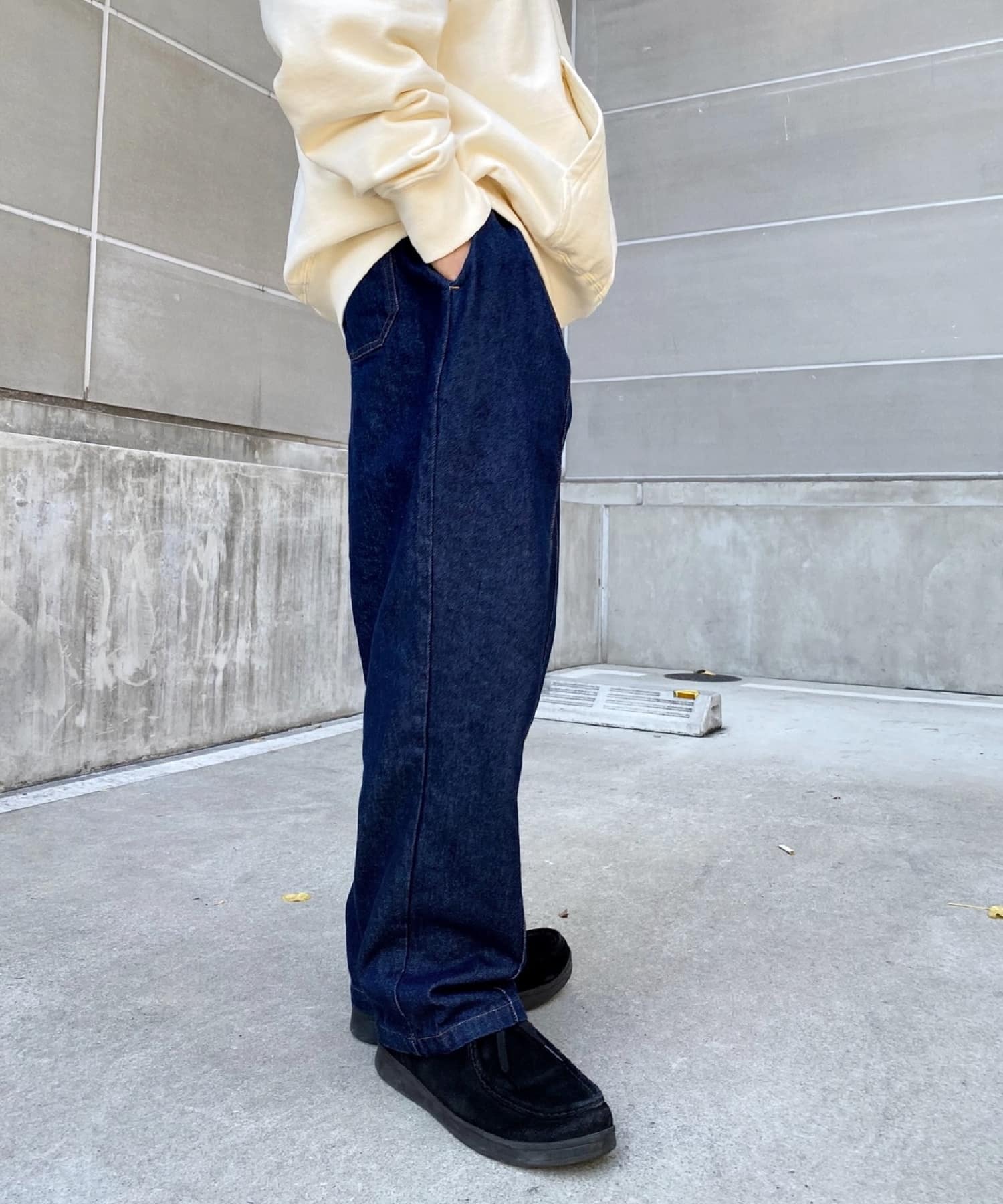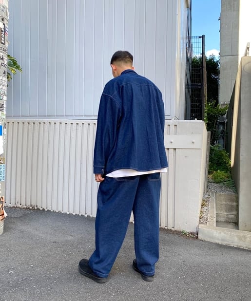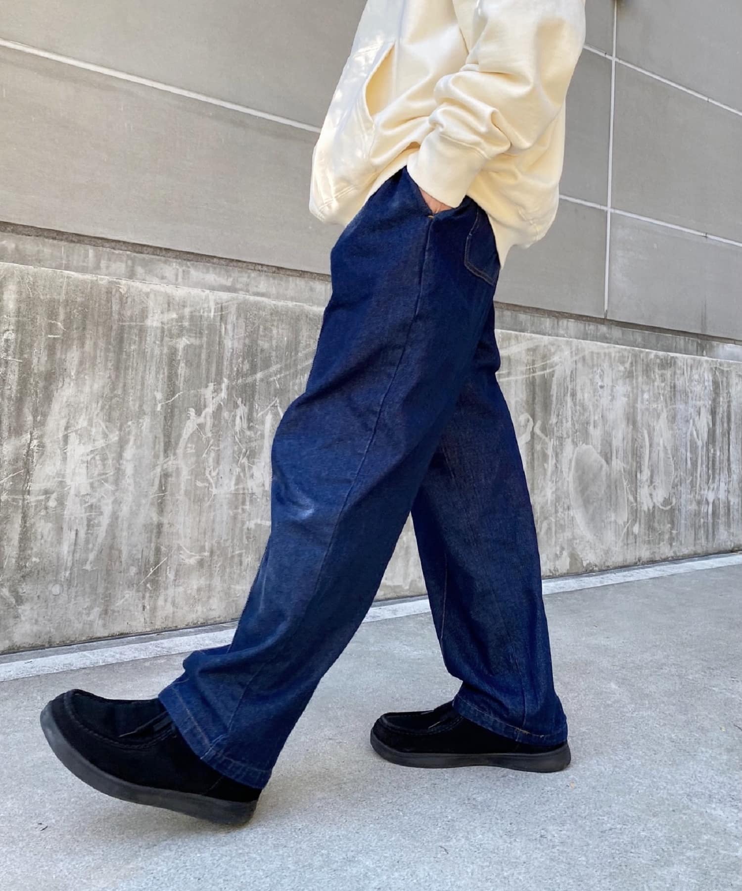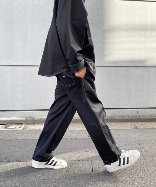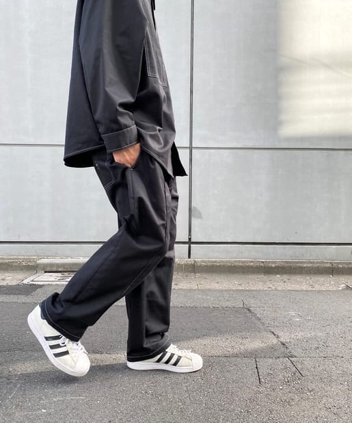 ・ワイドなシルエットながらもテーパードシルエットになっているので、綺麗なラインが出ます。