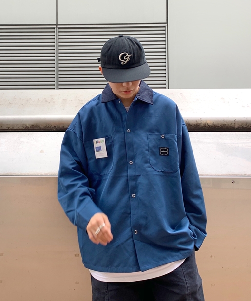 ・襟元は今季はコーデュロイの異素材の切り替えデザイン。