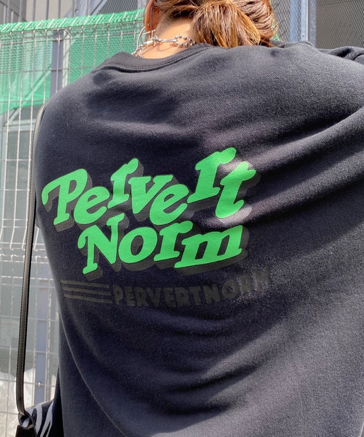 2020年のWWGのブランドテーマ“PERVERT”のロゴがプリントされたビッグスウェット。