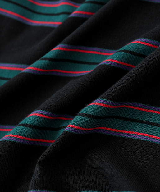 ・左胸のワンポイントには肉厚の刺繍ロゴがアクセントに。ボーダーとの配色にこだわっています。