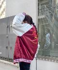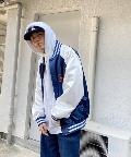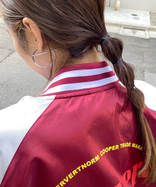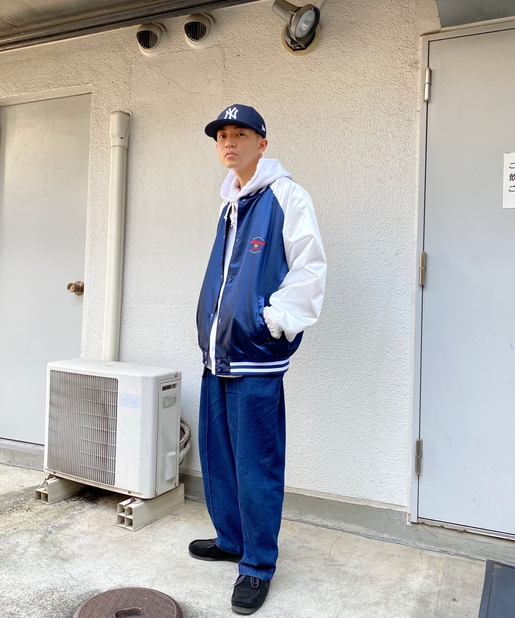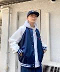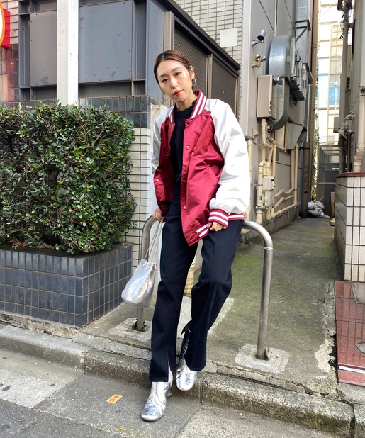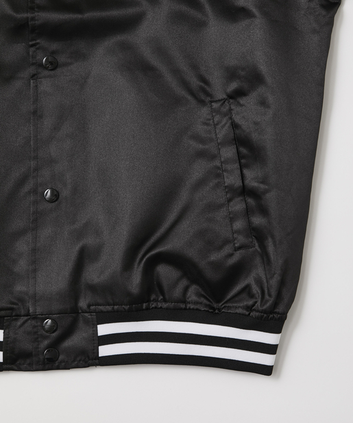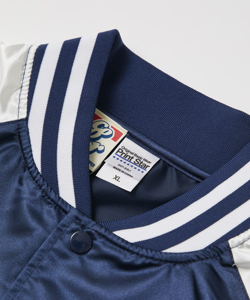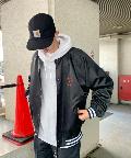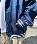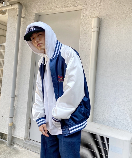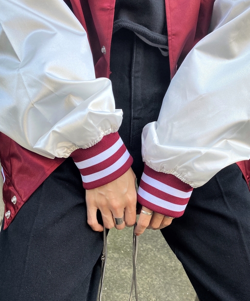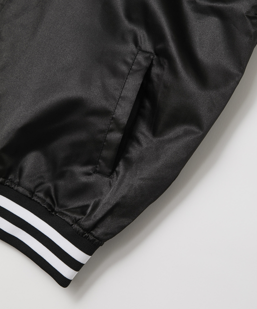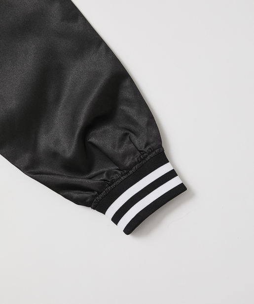 ・スタジャンといえば、襟と裾、袖口のリブの施された2本ラインがポイント!