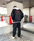 ・ボディーに映えるロゴは、企業ロゴをイメージ。フロントは胸元の刺繍ロゴ、バッグには大きなプリントロゴで、デザインが際立ちます。