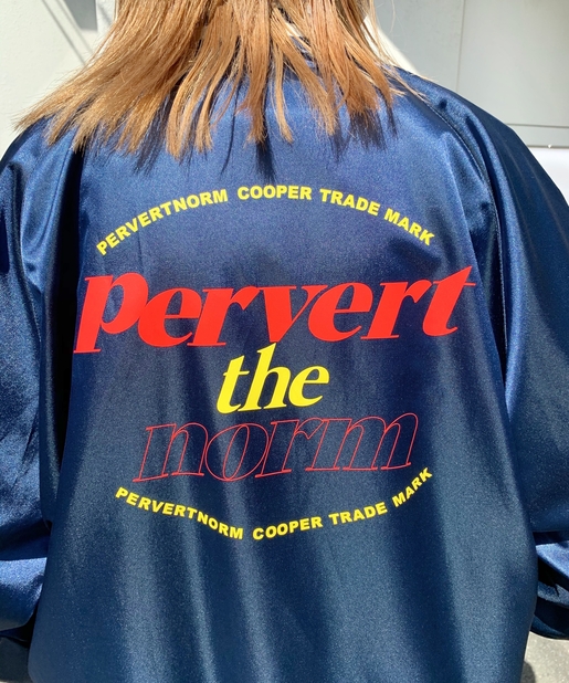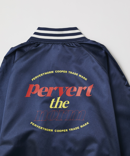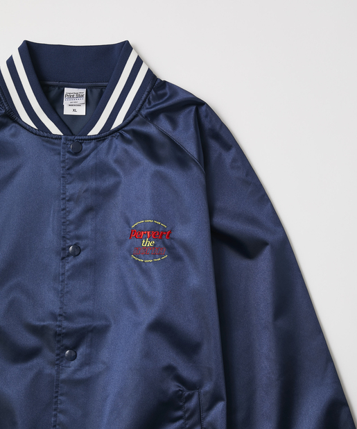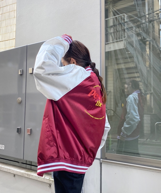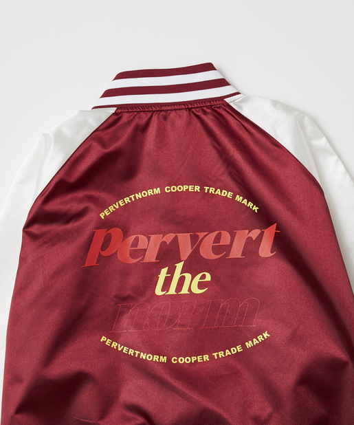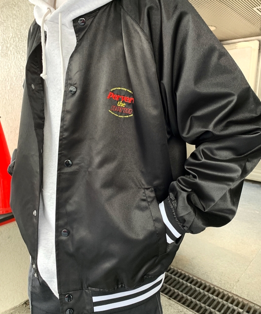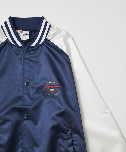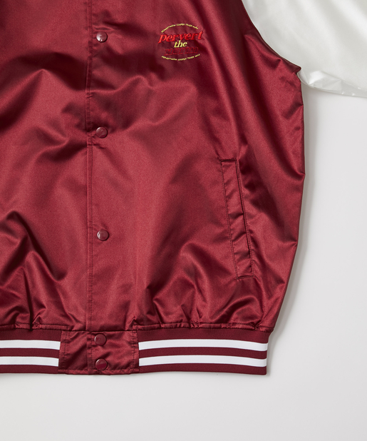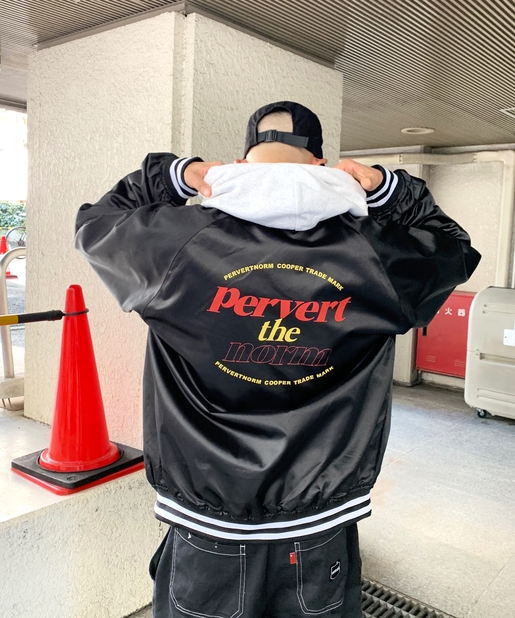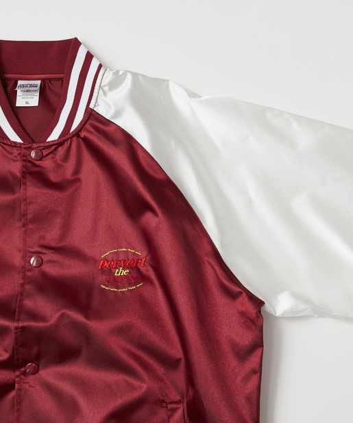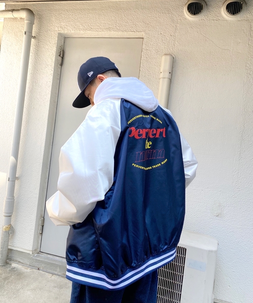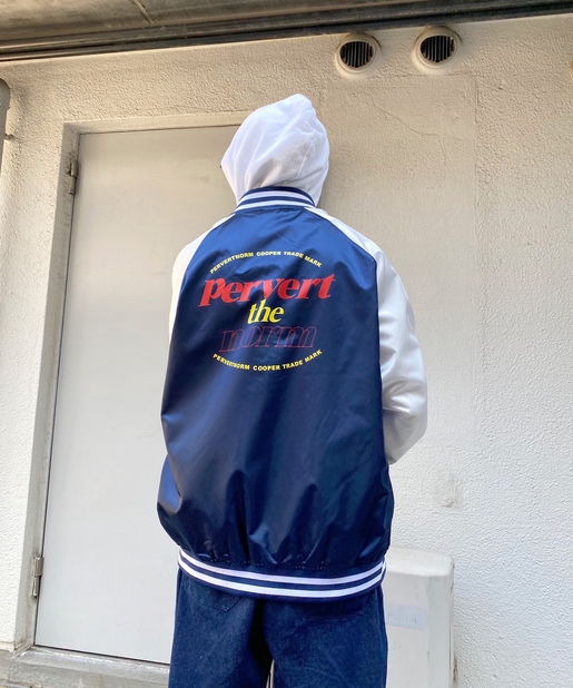 企業ロゴモチーフがポイント!2020年のWWGのブランドテーマ“PERVERT”のロゴがプリントされたスタジャン