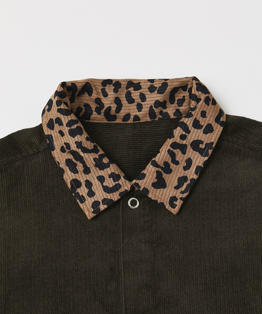 ・ボディーは季節感を感じられるコーデュロイ素材、襟にはシンプルな無地タイプとヒョウ柄・ゼブラ柄の切り替えデザインタイプの2種類。