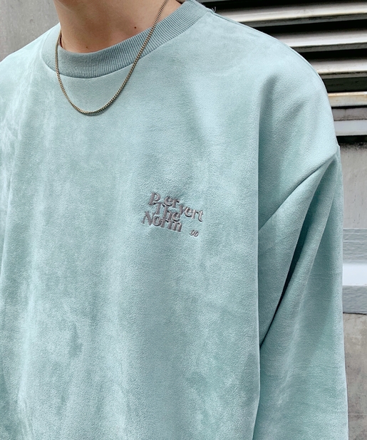 幅広いジャンルのスタイリングに◎スエード×ポンチ素材のビッグシルエットスウェット
