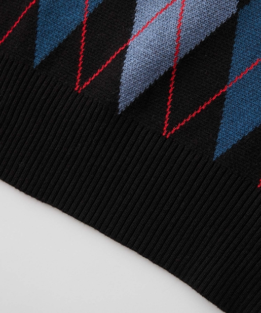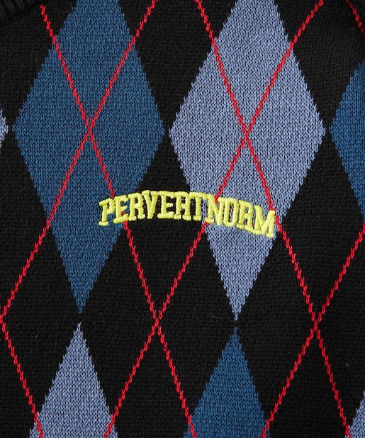 ・左胸のワンポイントに映える肉厚の刺繍ロゴ。アーガイル柄の配色にも負けない存在感。