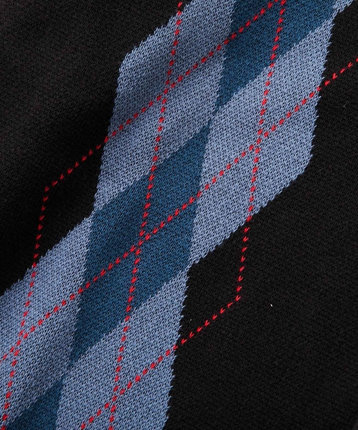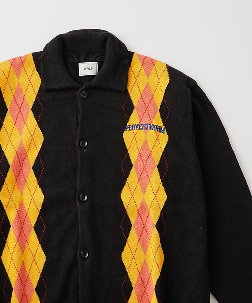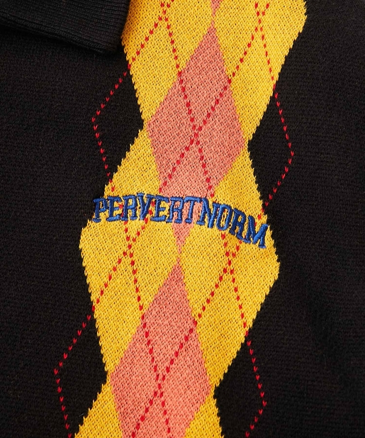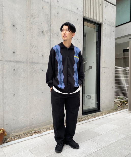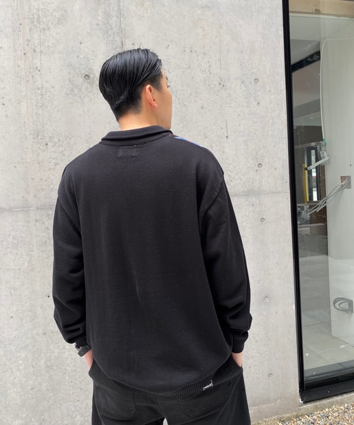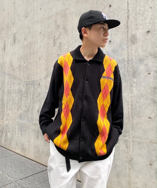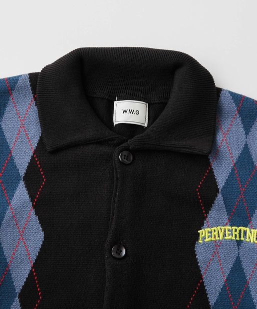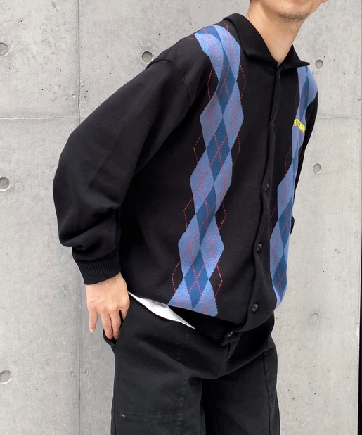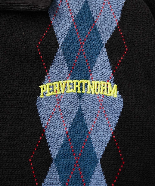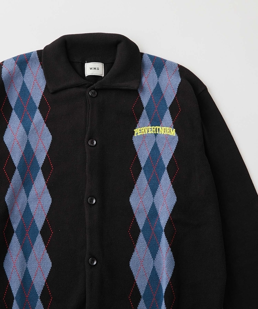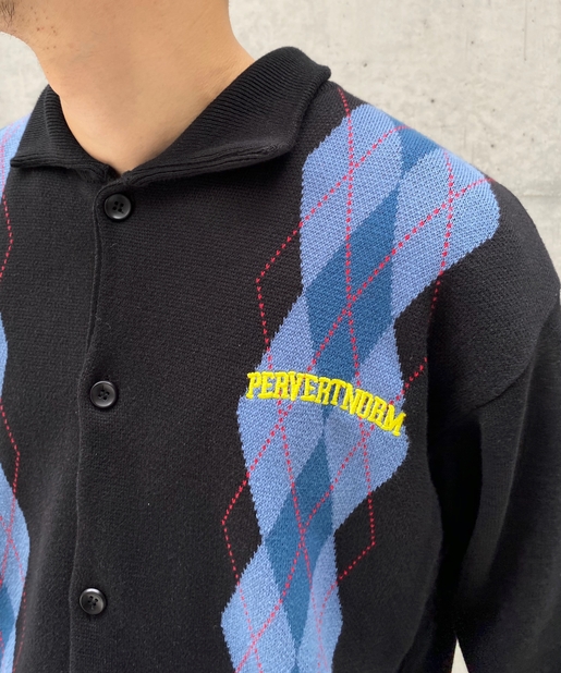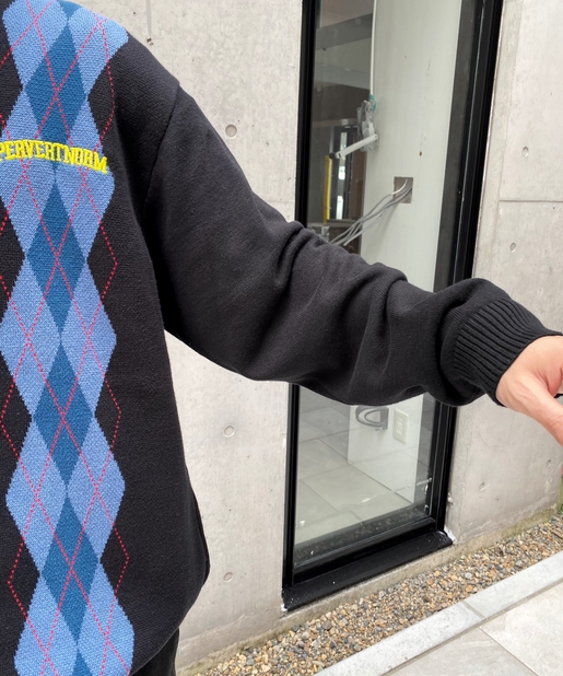 ・左胸のワンポイントに映える肉厚の刺繍ロゴ。アーガイル柄の配色にも負けない存在感。