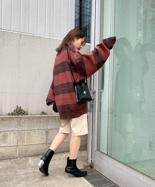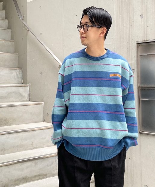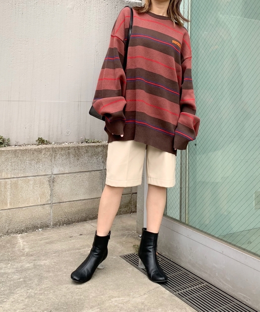 ・90年代のスケートテイストのボーダー配色がコーデのアクセントに。