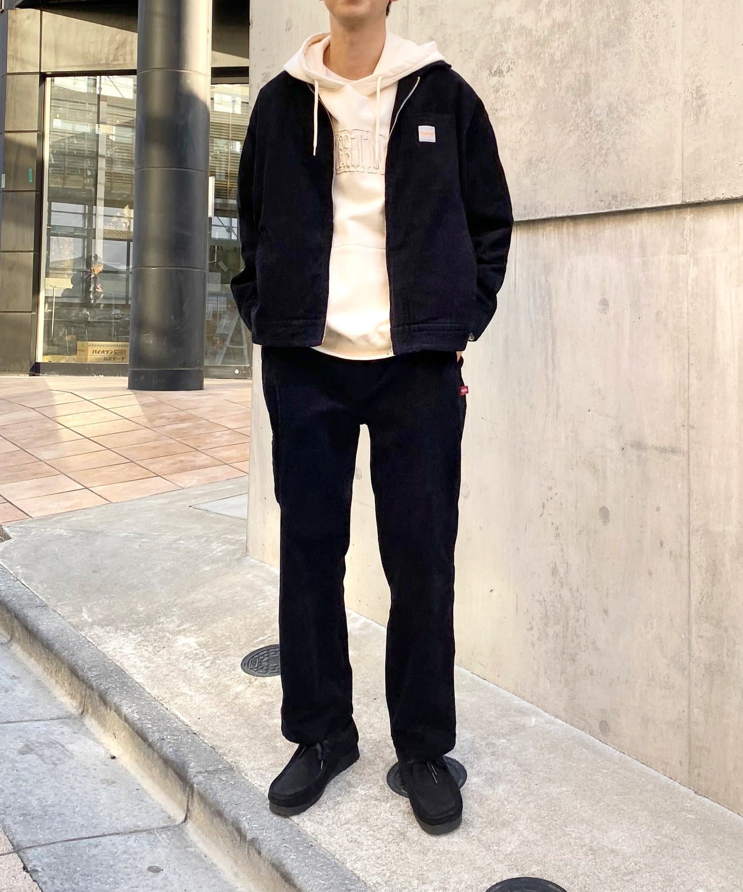 ・同素材のアウター(WWZ2011107A0006 ※別売り)とセットアップ風に着るのもまた一味違った雰囲気に。