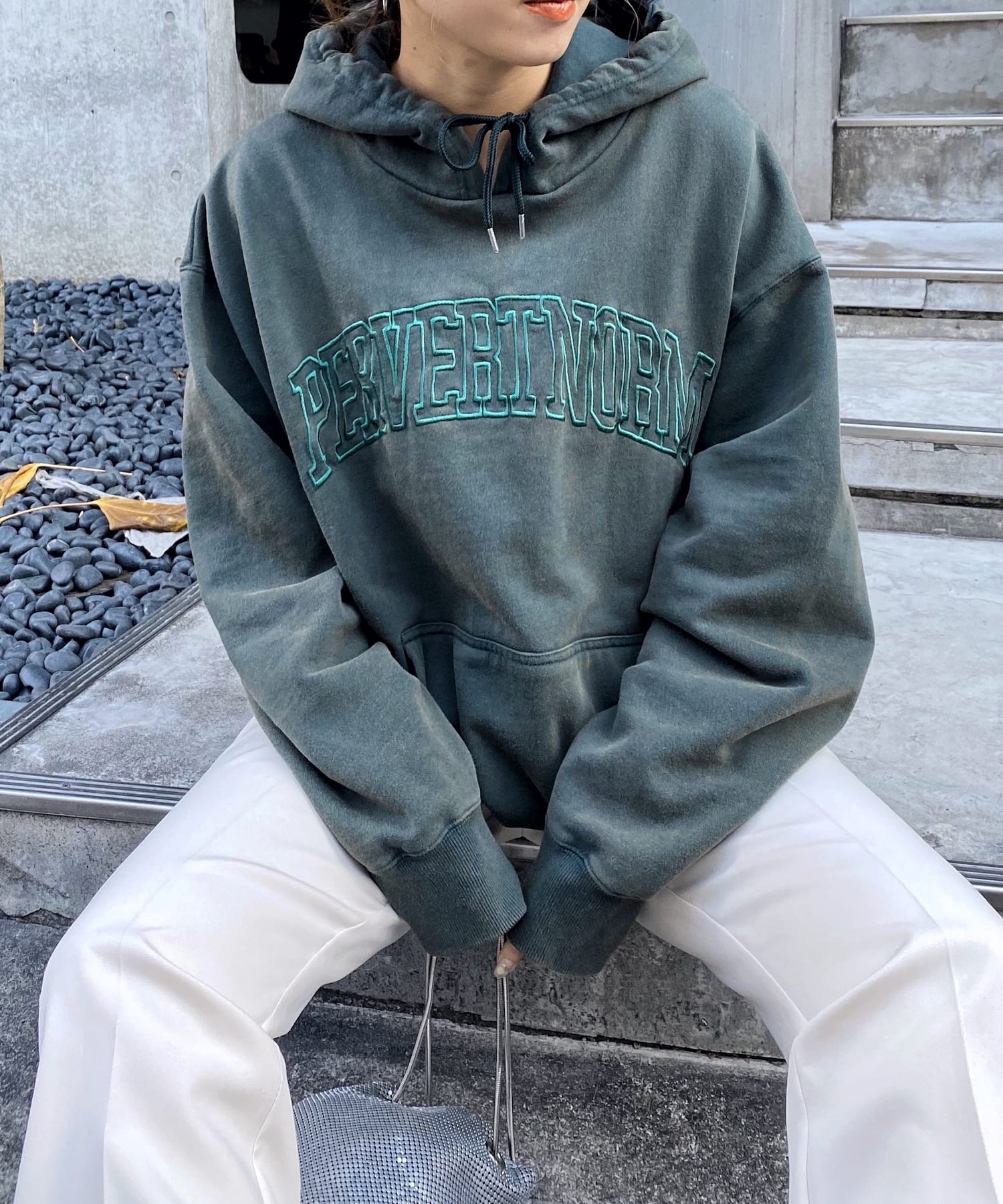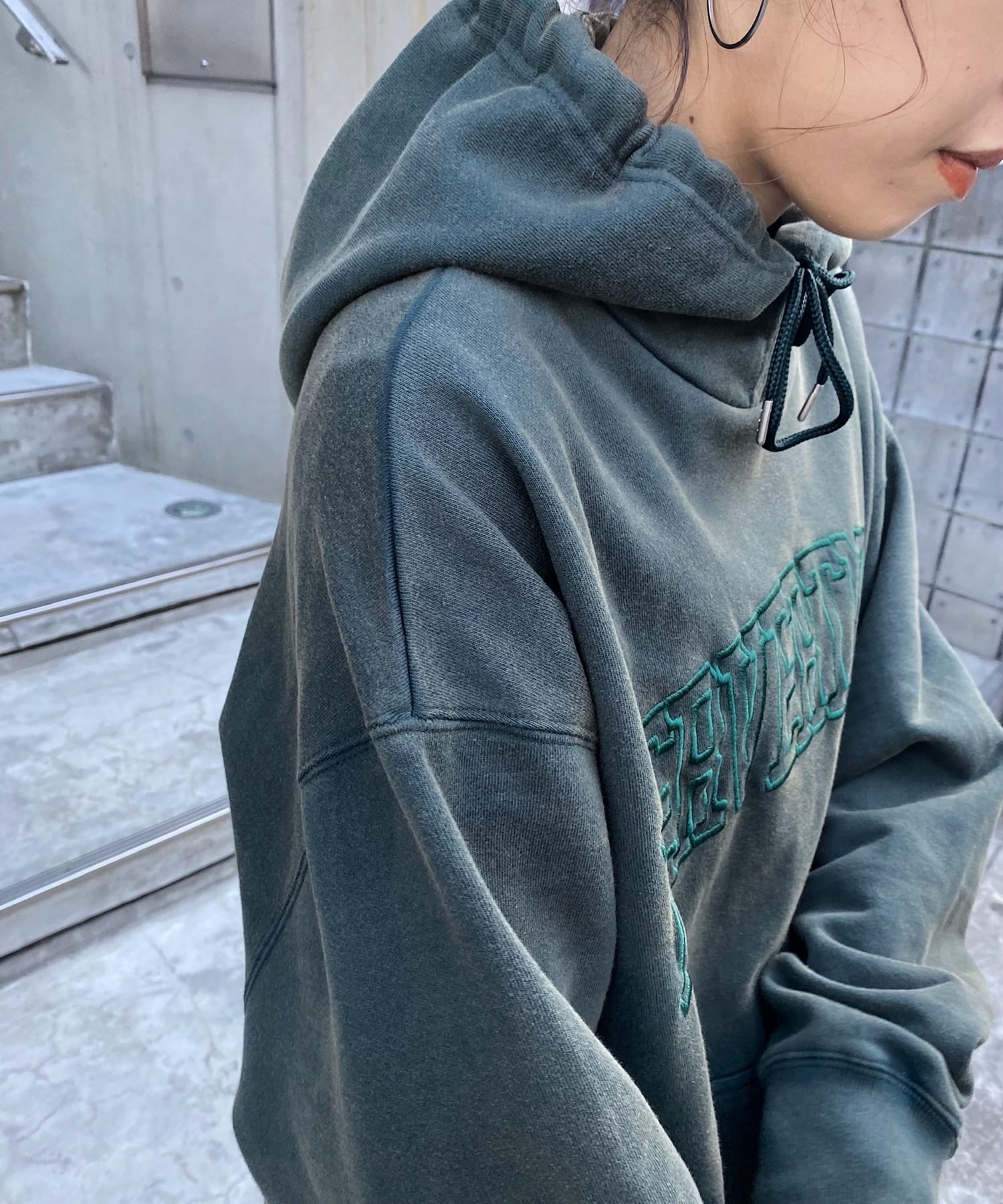 【KOOKY'N/クーキー】ピグメント刺繍カレッジフーディー
