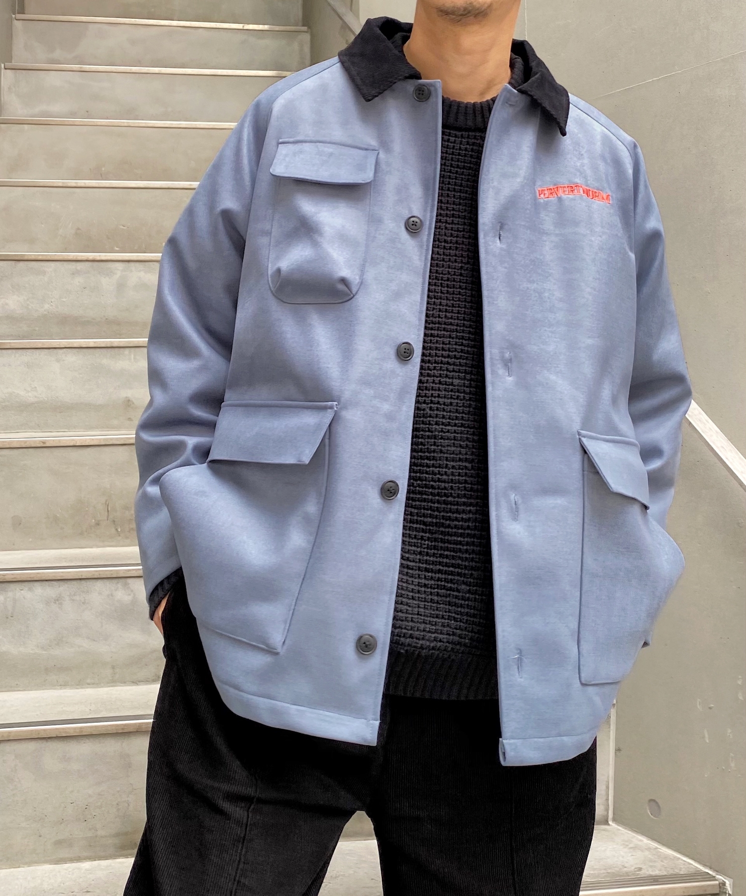 ・襟の切り替えは、秋冬のファッションにマストな“コーデュロイ”のクレリックデザイン。