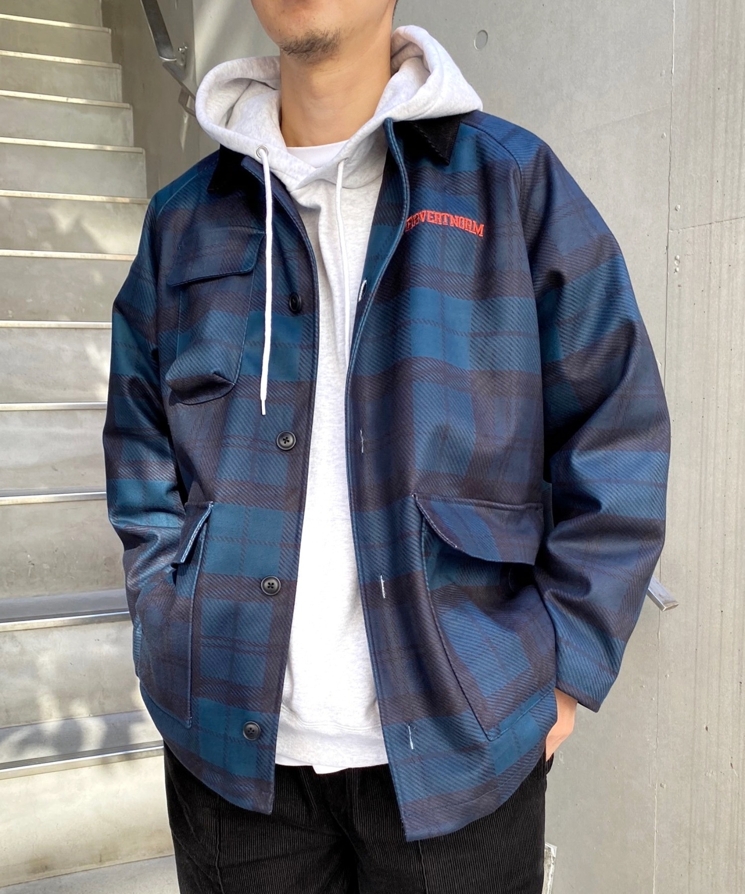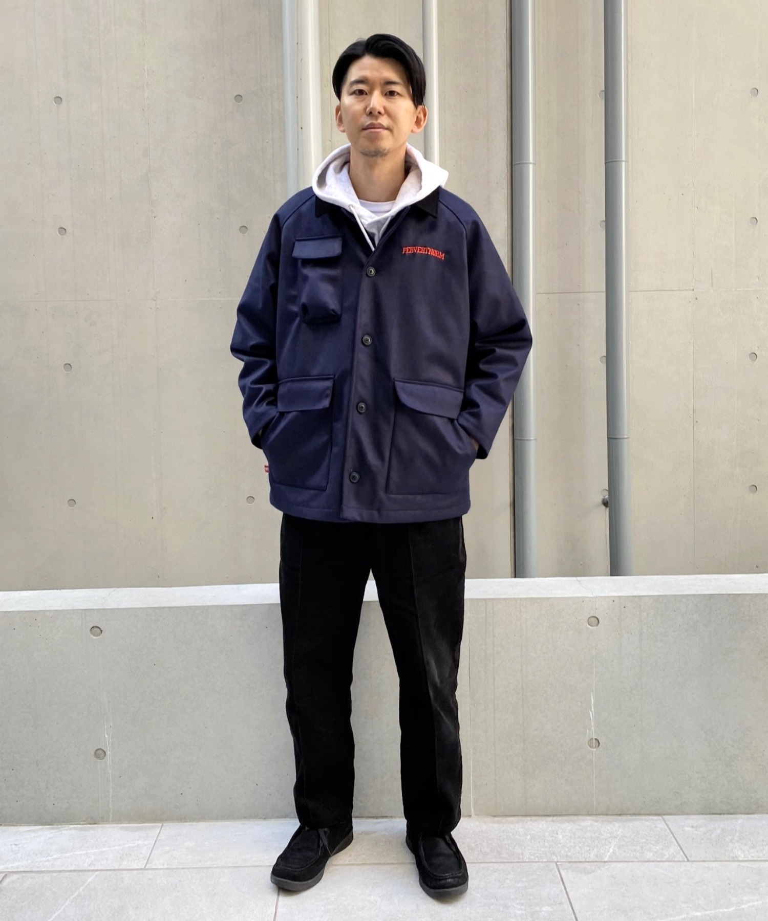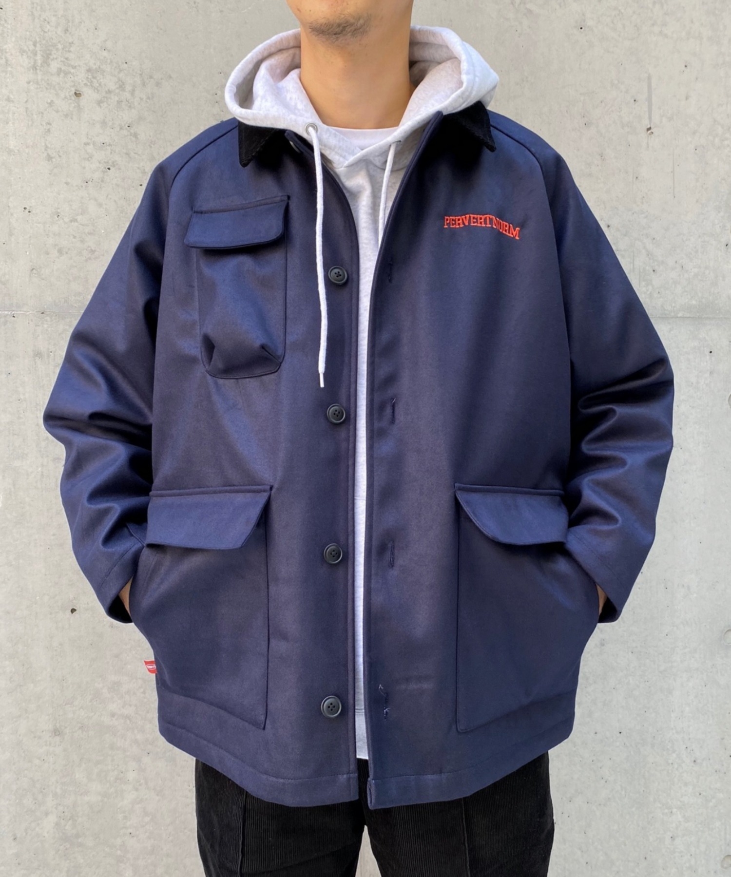 ・左胸ロゴもオレンジ刺繍で、程よくストリートデザインに。