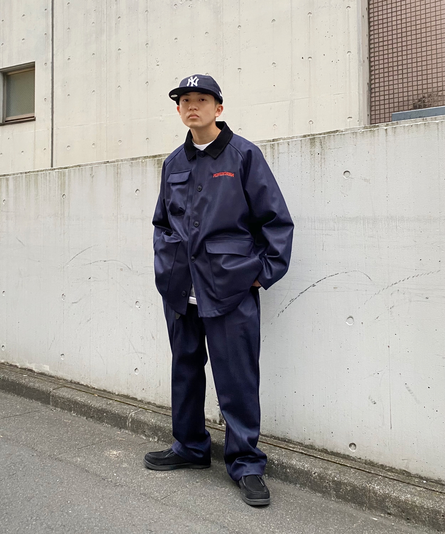 ・レーヨンが入っており、ツヤ感があります。スマートなキレイめストリートスタイルにピッタリ。