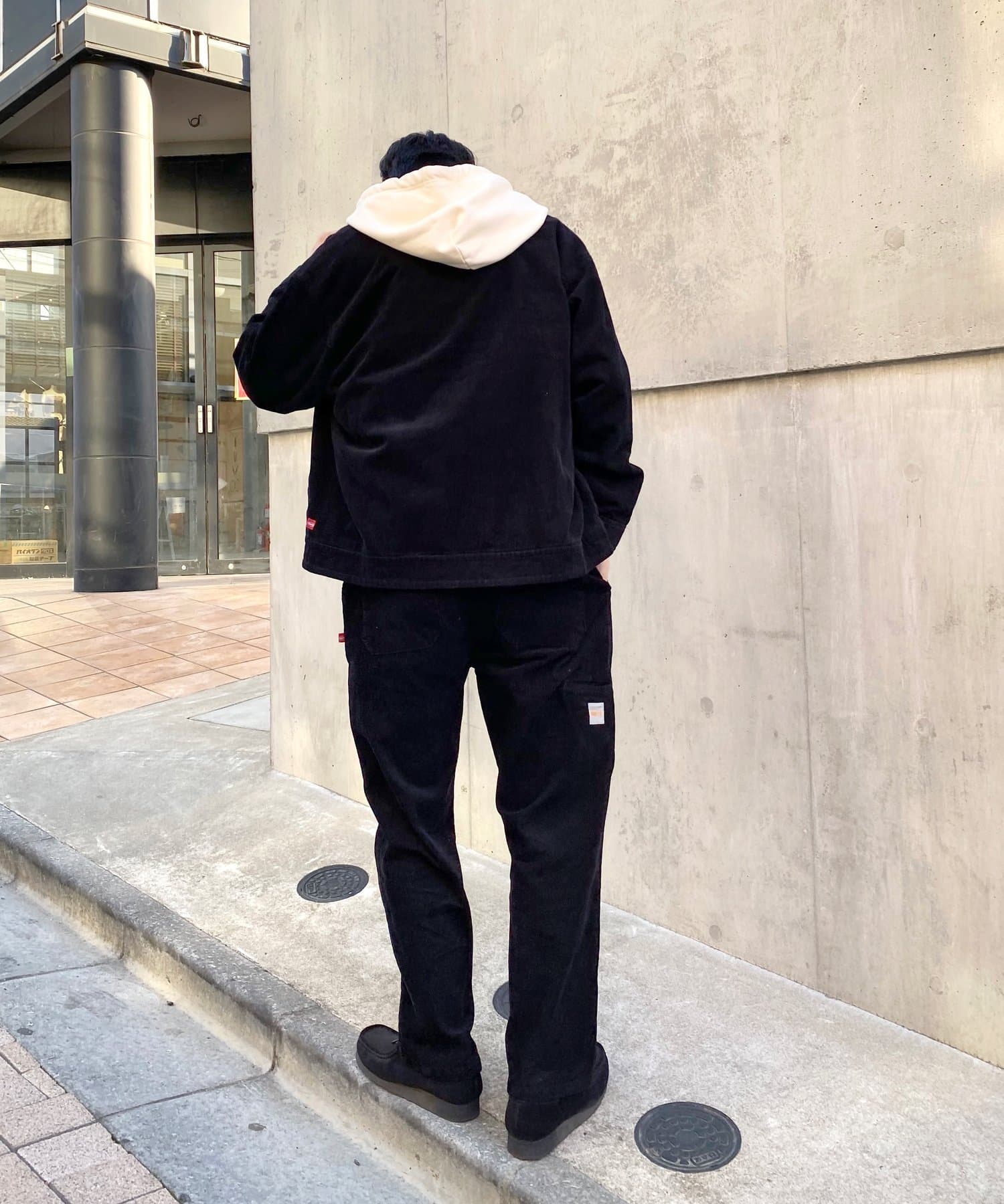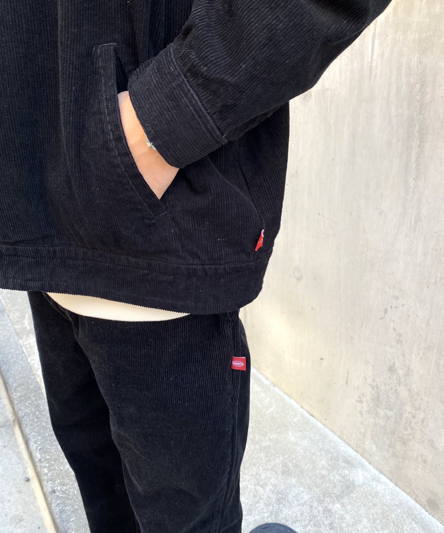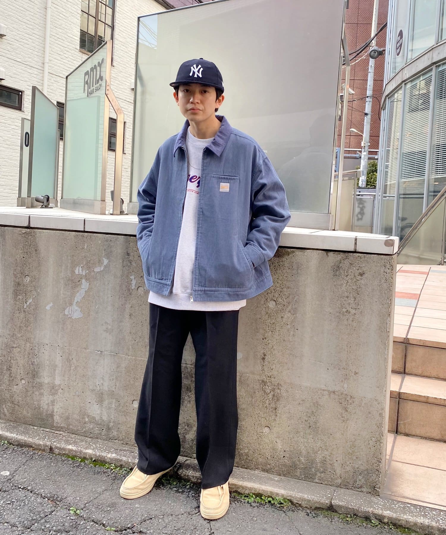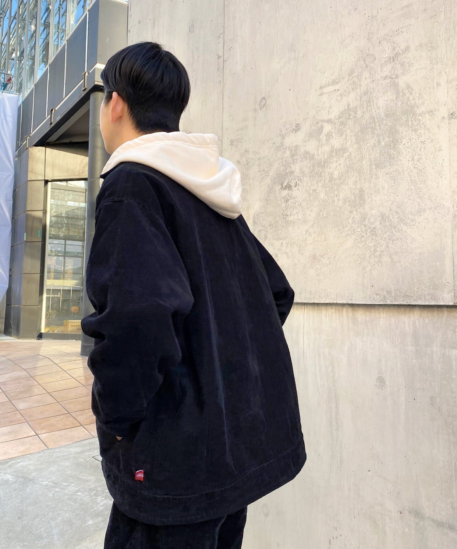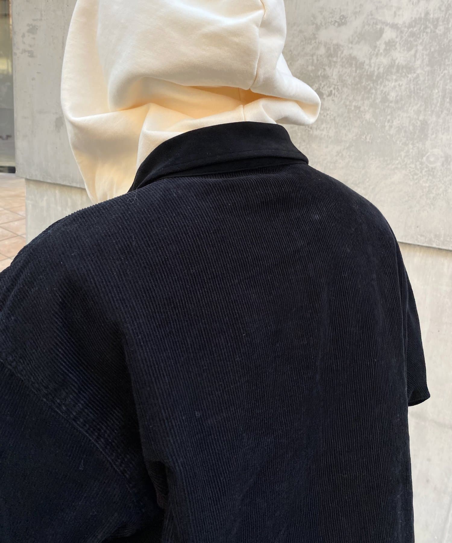 ・素材がコーデュロイなので、ワークウェア感を程よく抑え、スマートなスタイルにも。