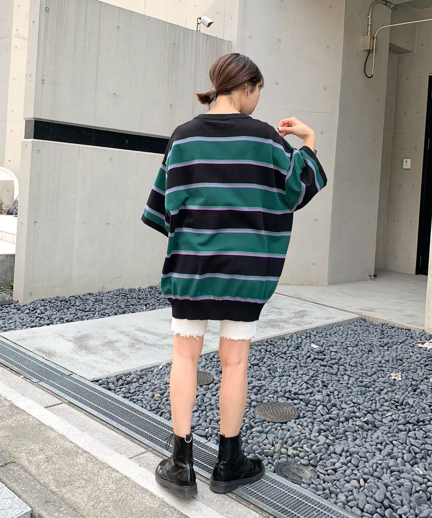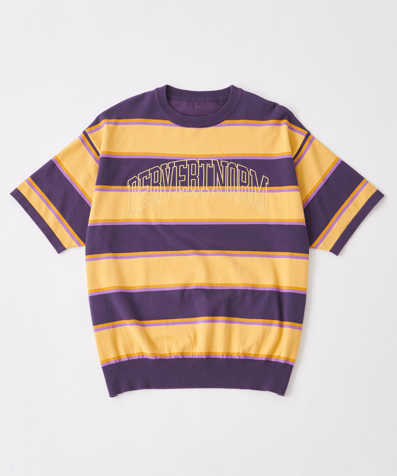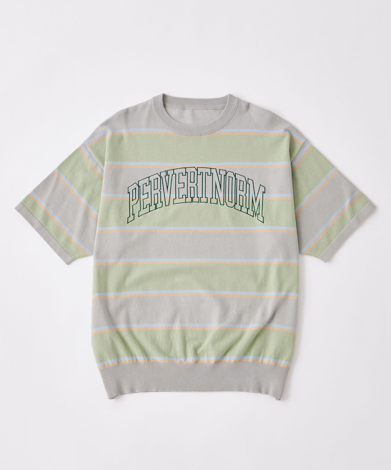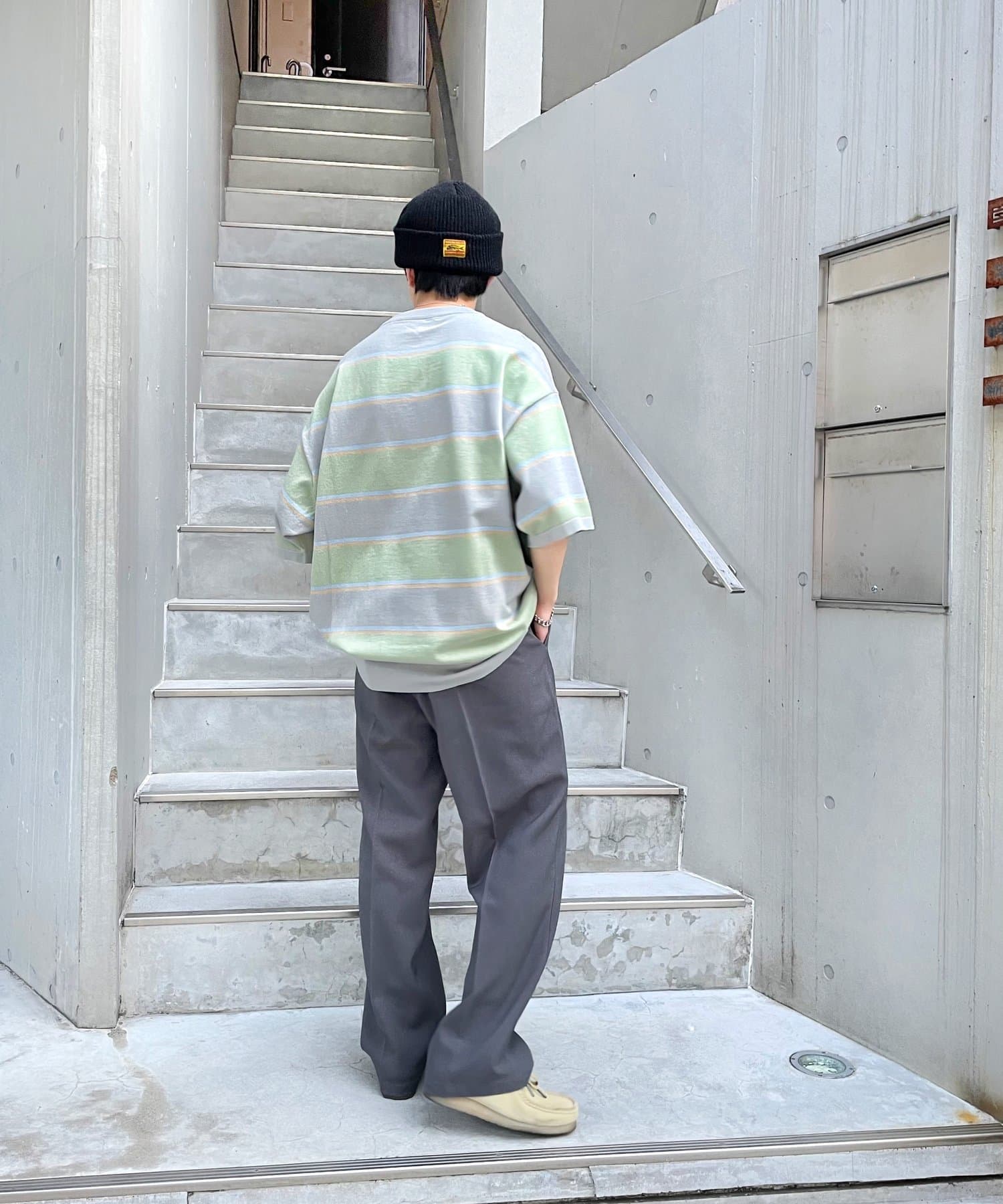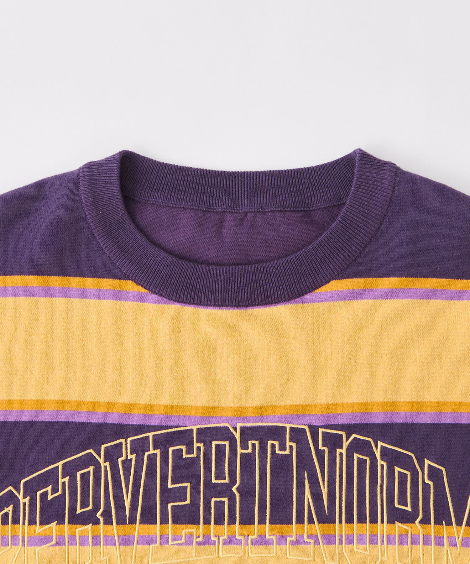 ・90年代彷彿させるレトロなボーダーとマッチする、刺繍ロゴの“PERVERTNORM”。目立ちすぎない存在感がコーデの雰囲気と相性もバツグン◎