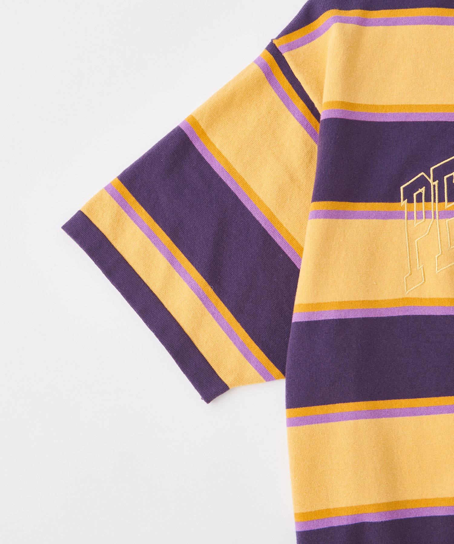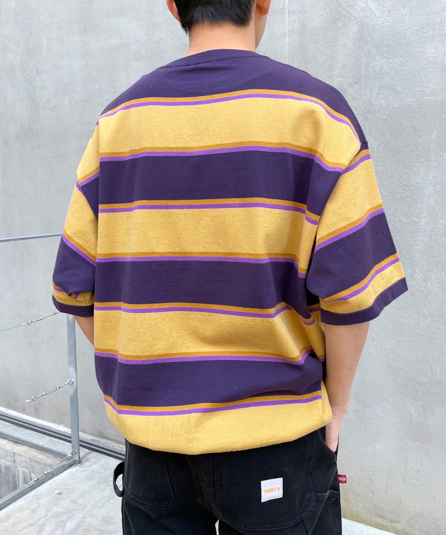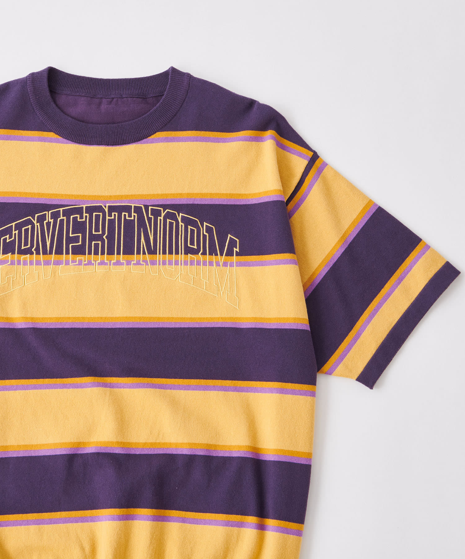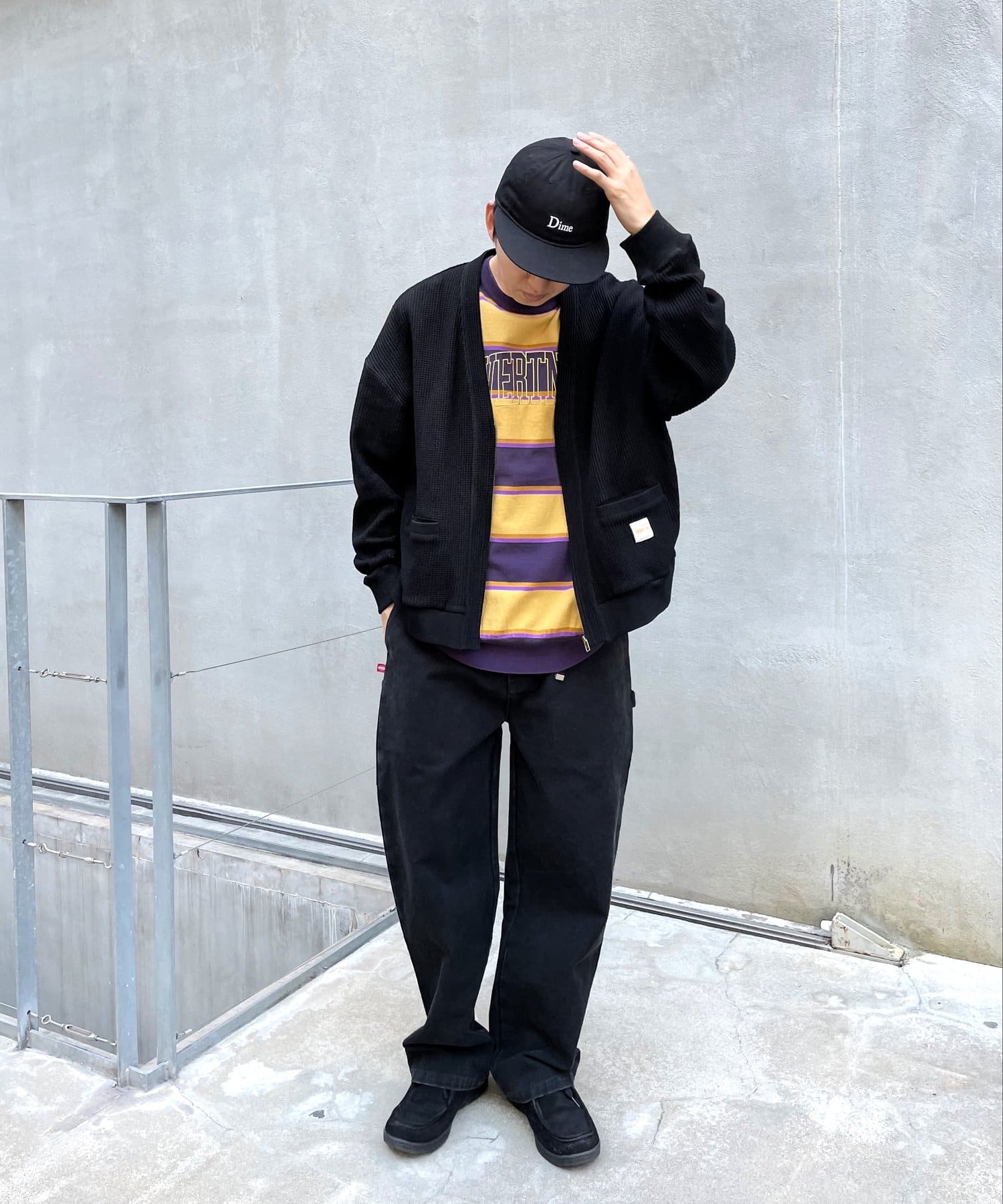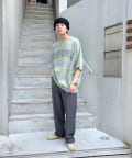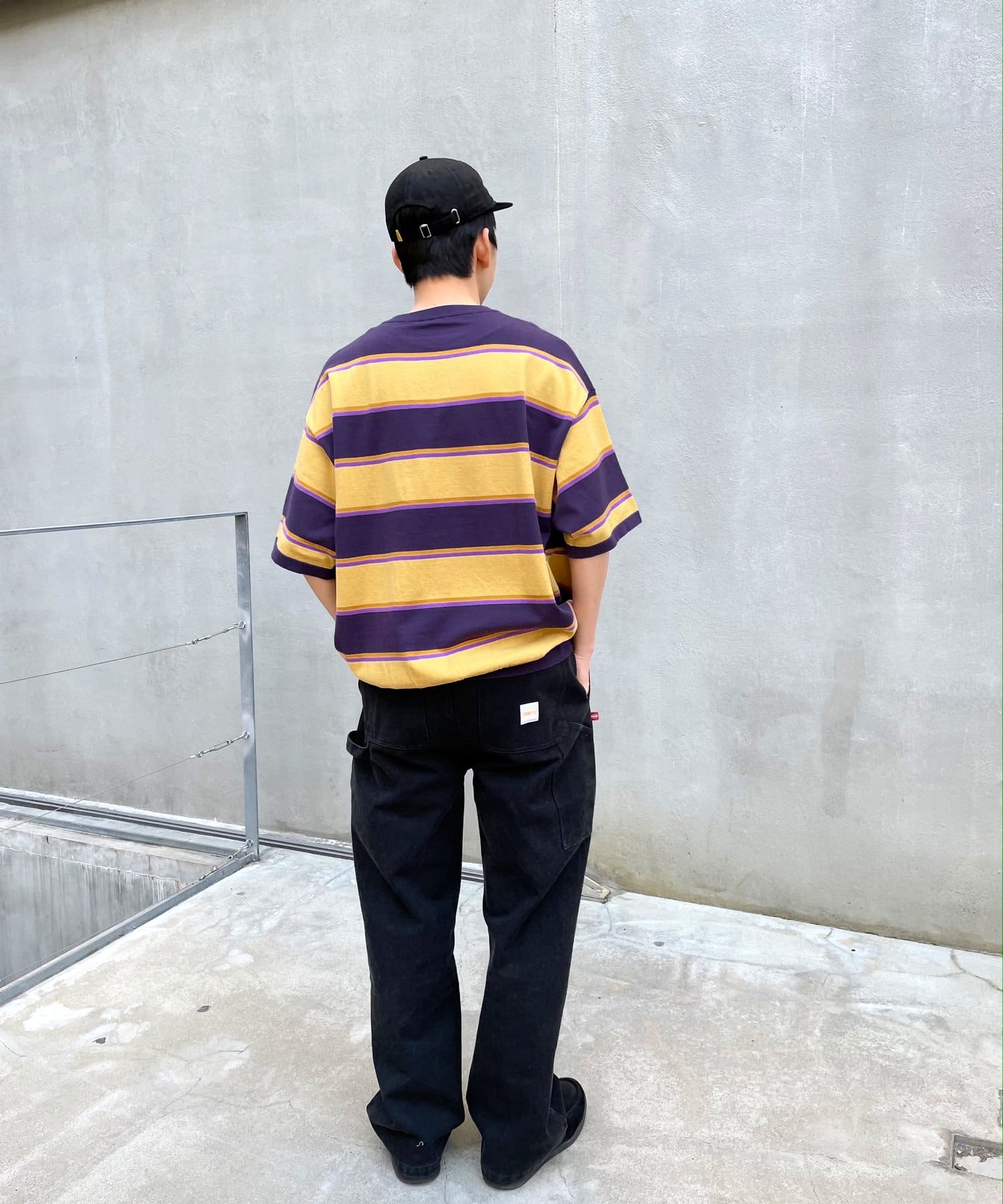 ・90年代彷彿させるレトロなボーダーとマッチする、刺繍ロゴの“PERVERTNORM”。目立ちすぎない存在感がコーデの雰囲気と相性もバツグン◎
