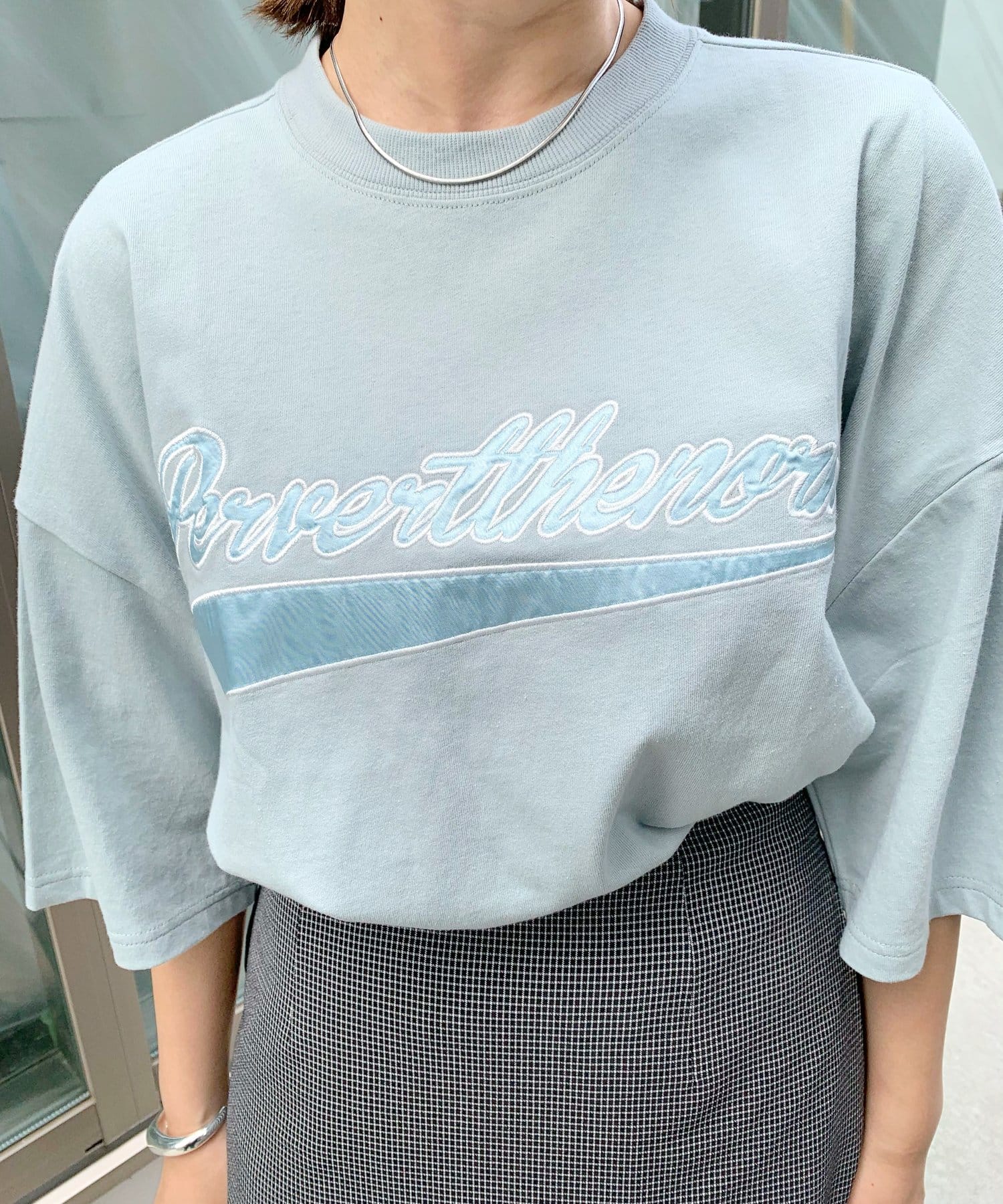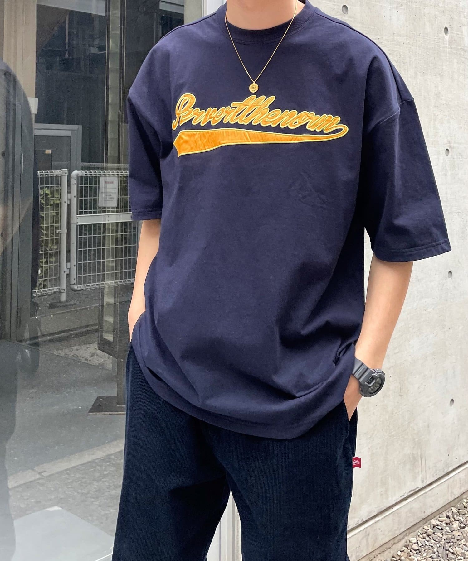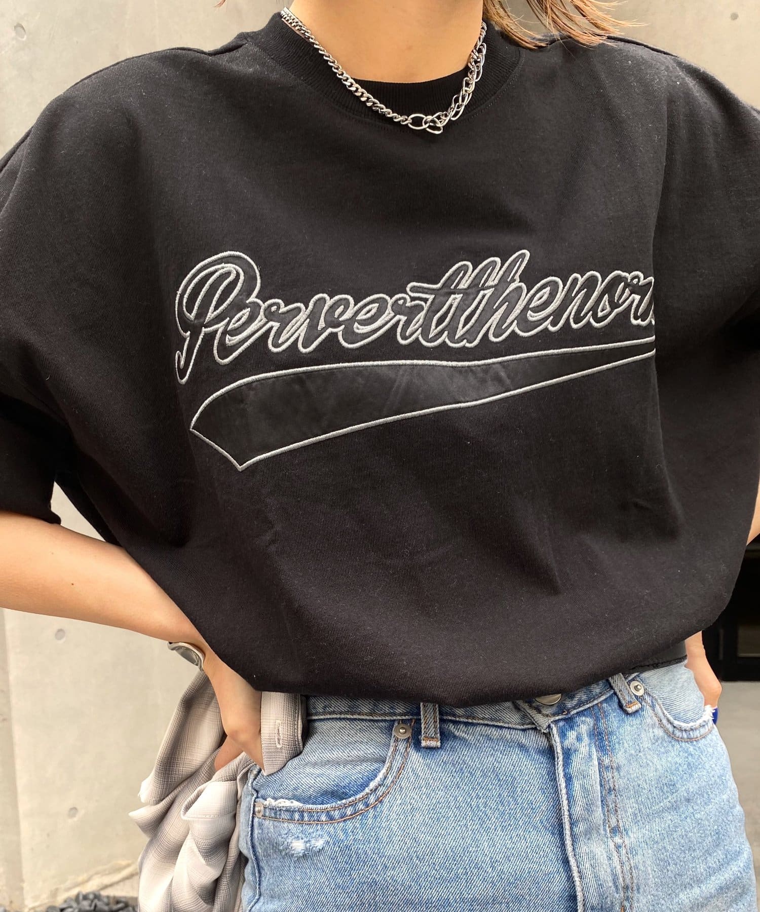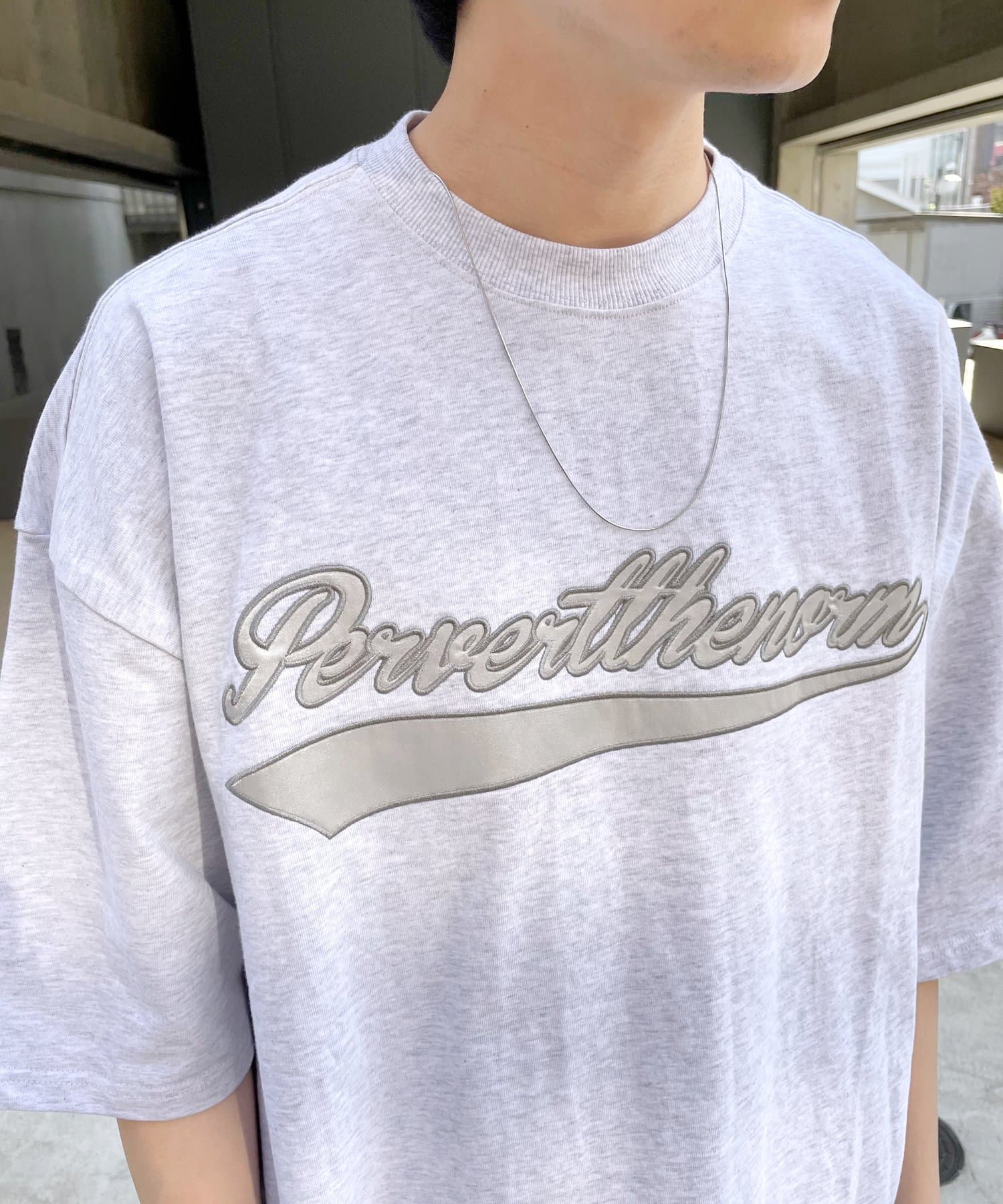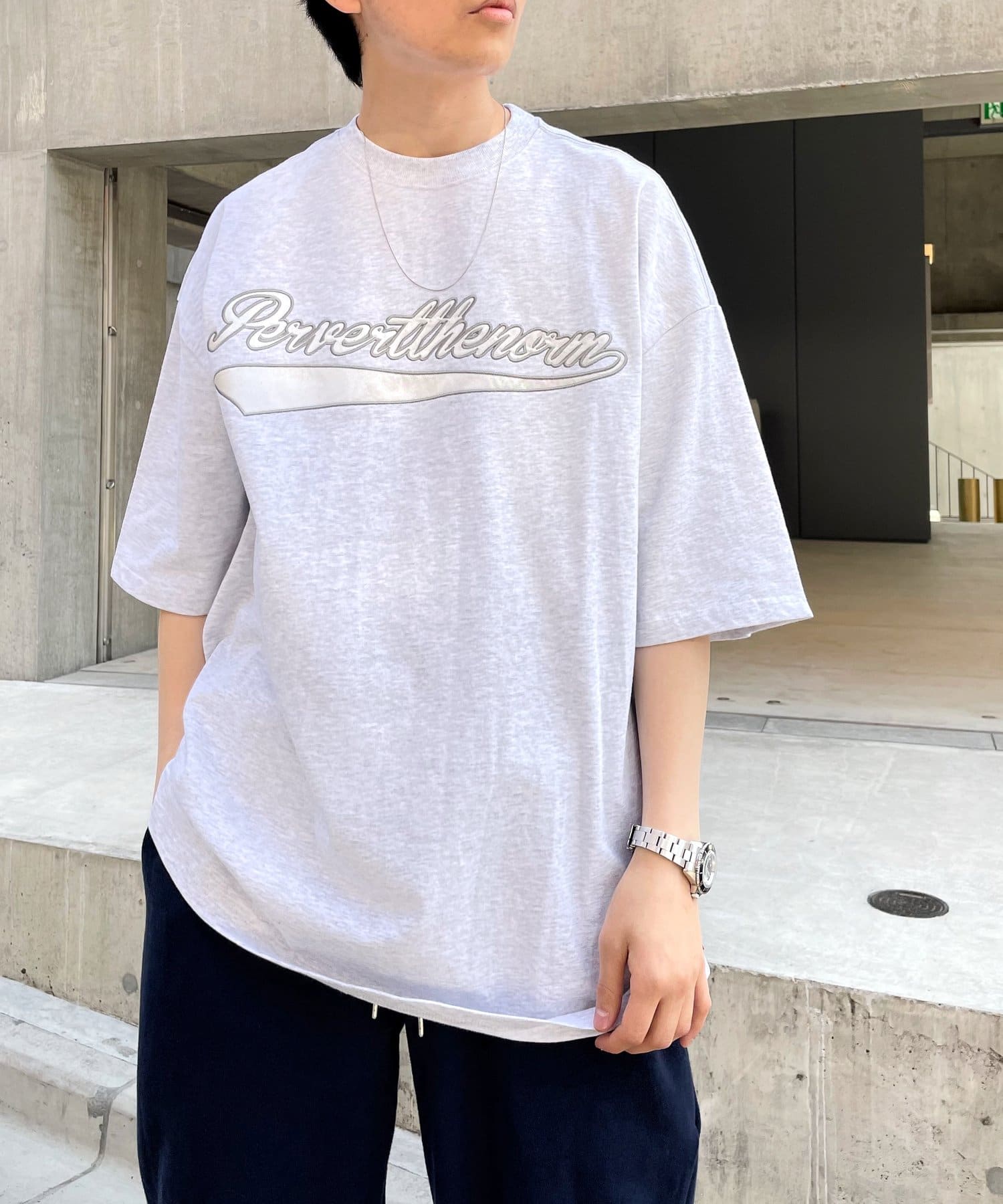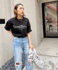 ・身頃に馴染むカラーのロゴは、一枚着でも存在感がありながら、柄物と合わせても程よいマッチ感。