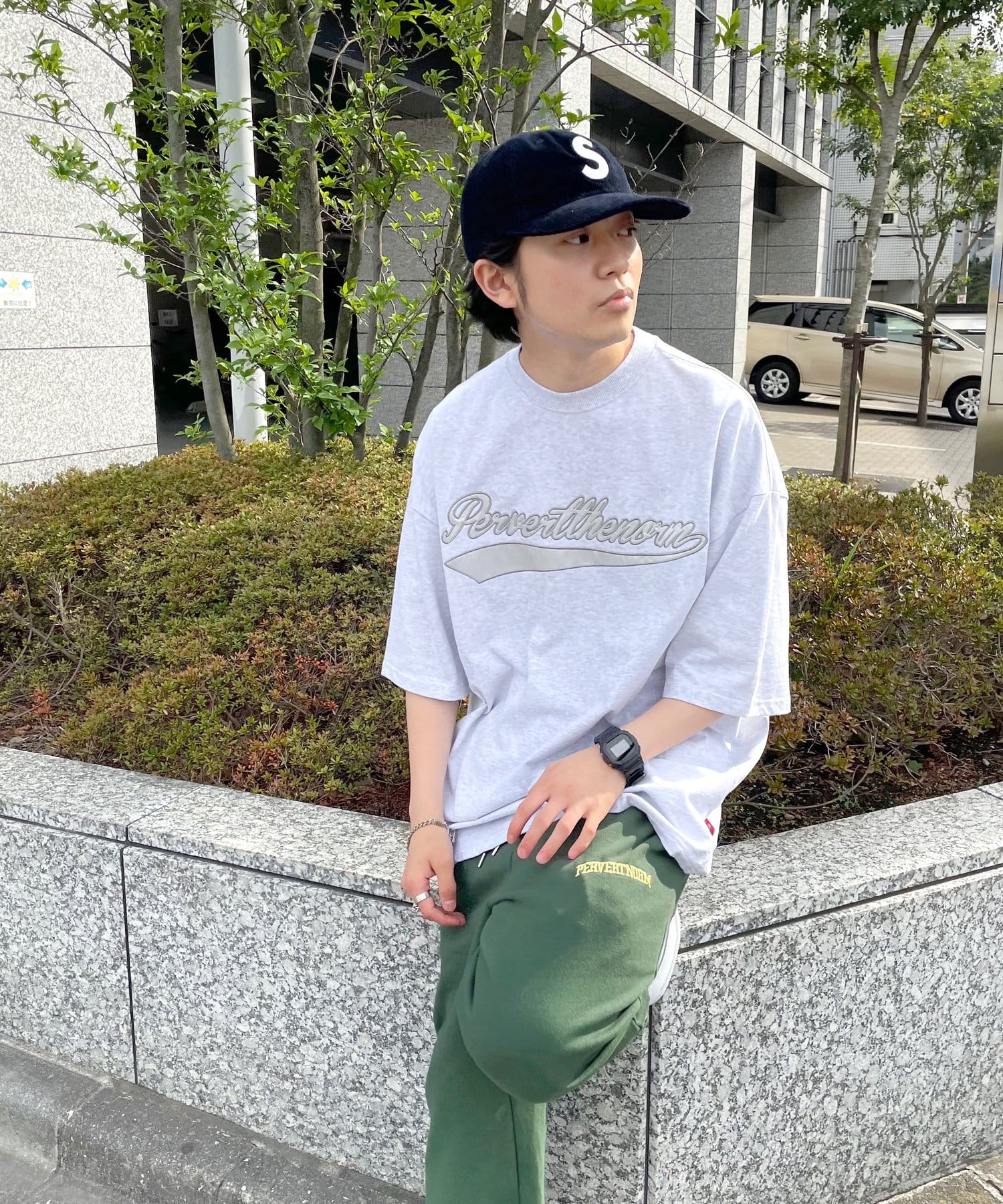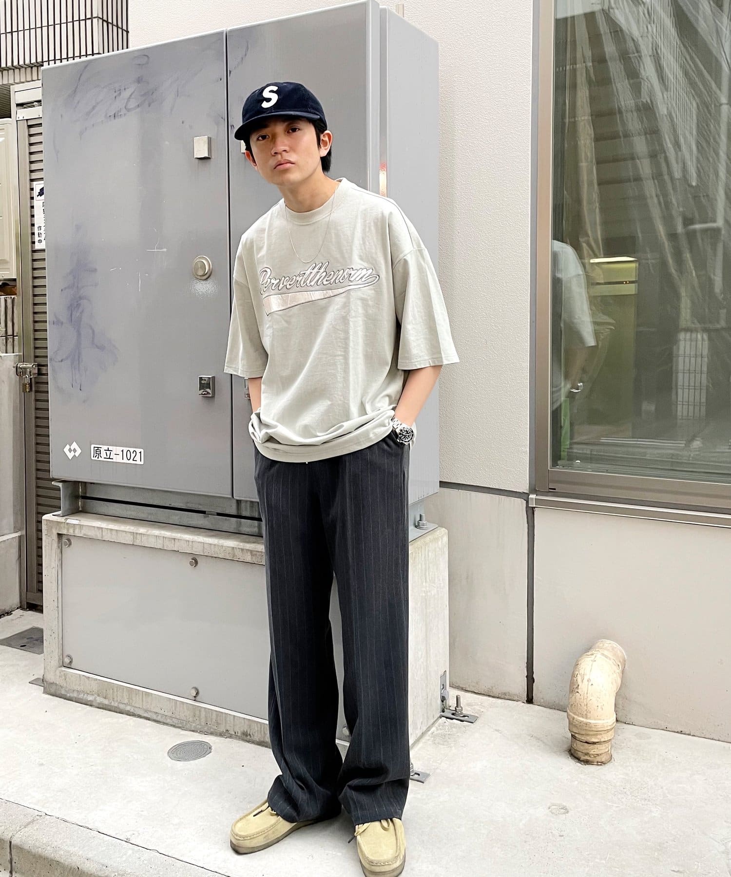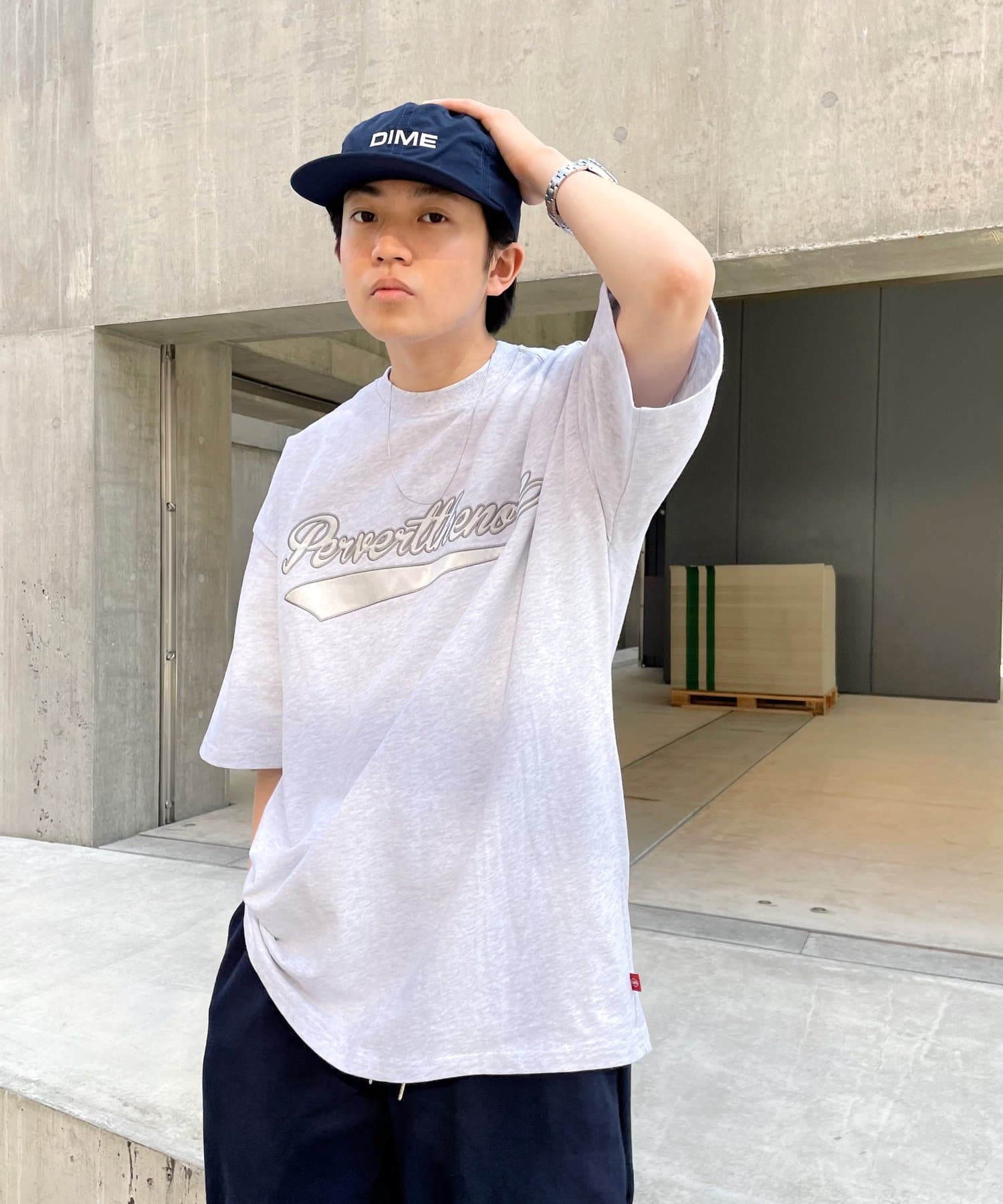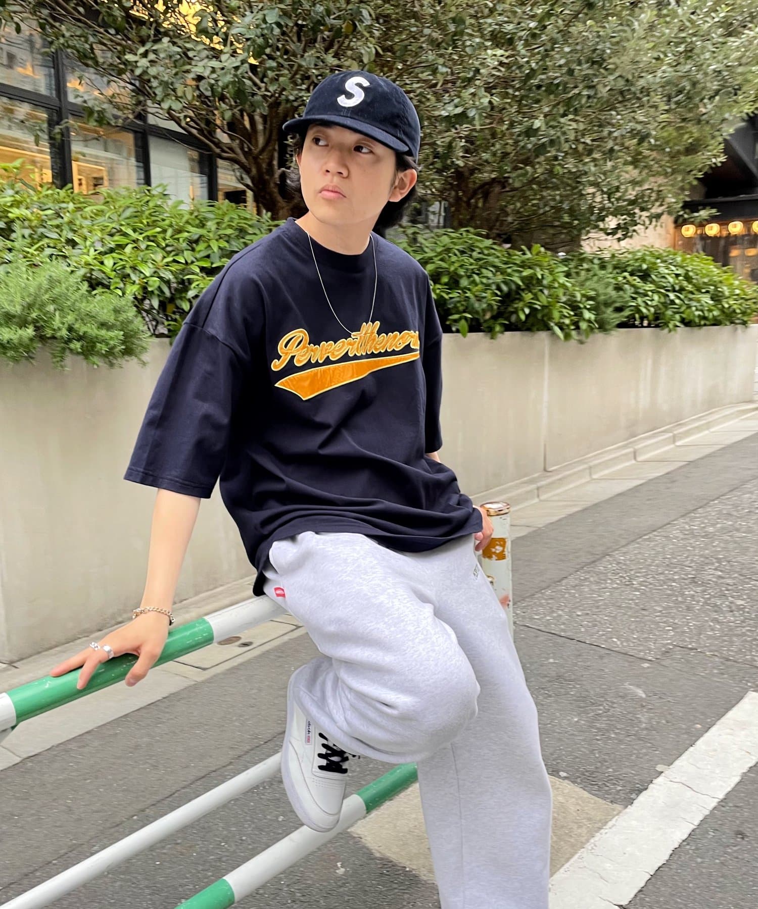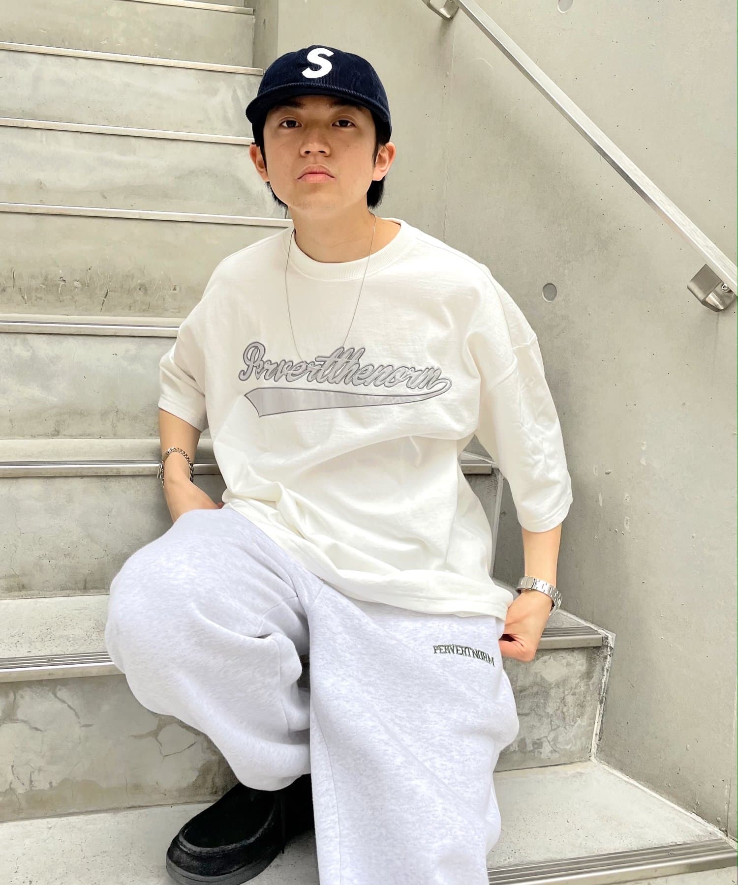・身頃に馴染むカラーのロゴは、一枚着でも存在感がありながら、柄物と合わせても程よいマッチ感。