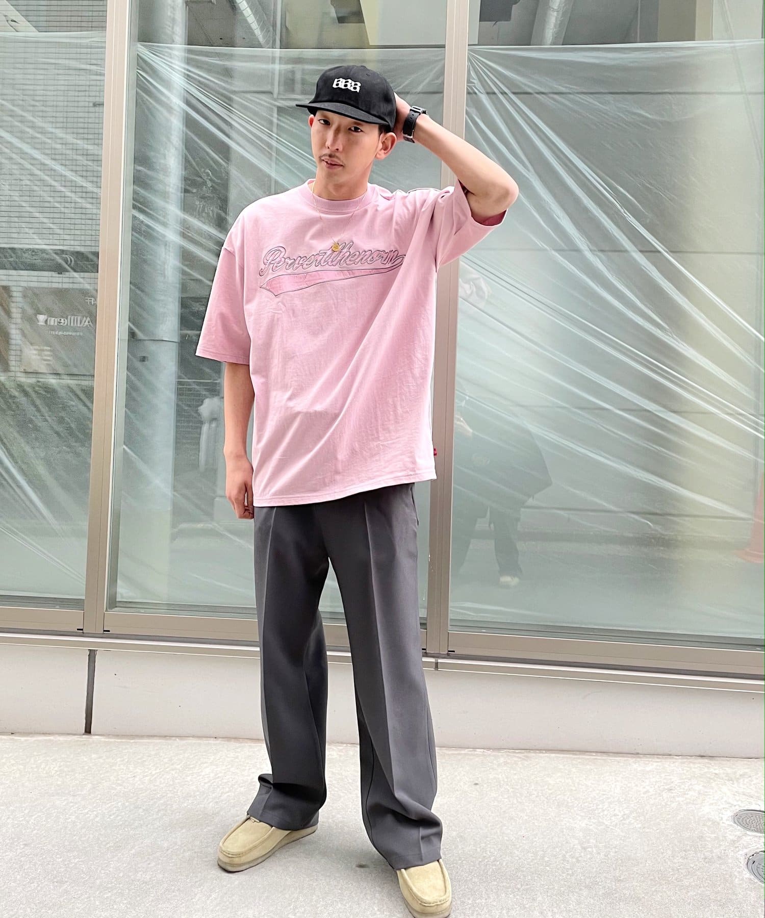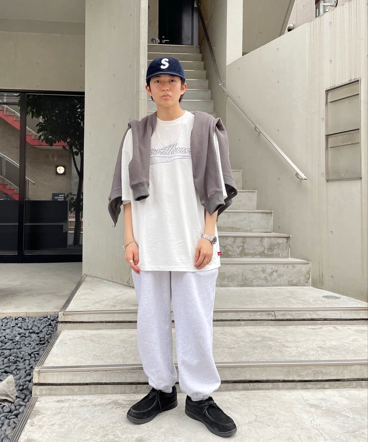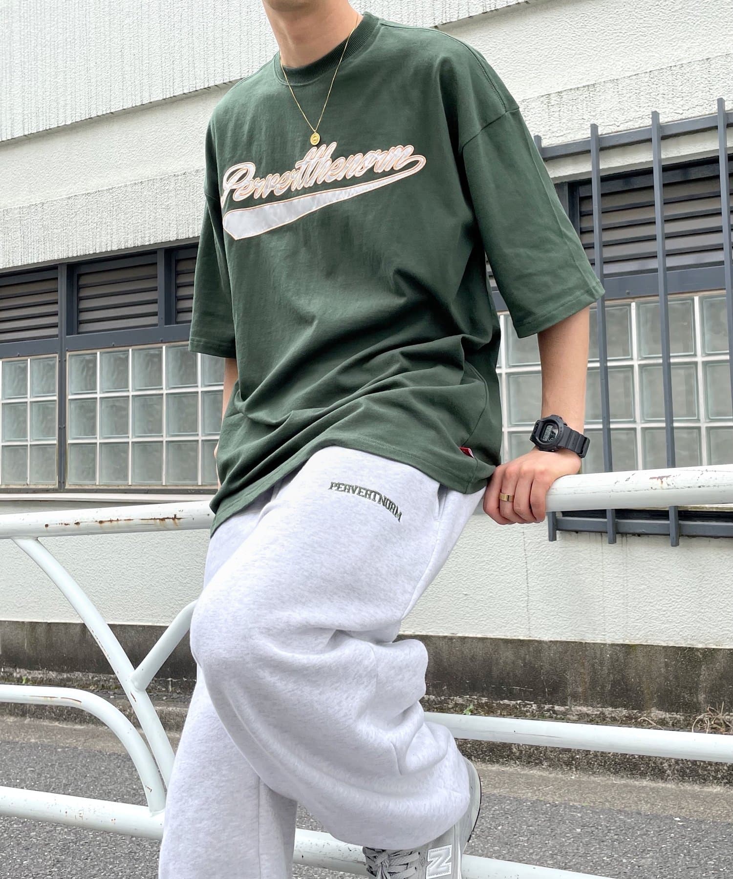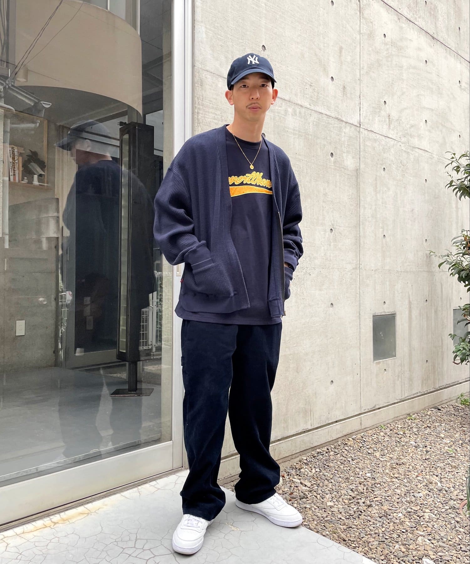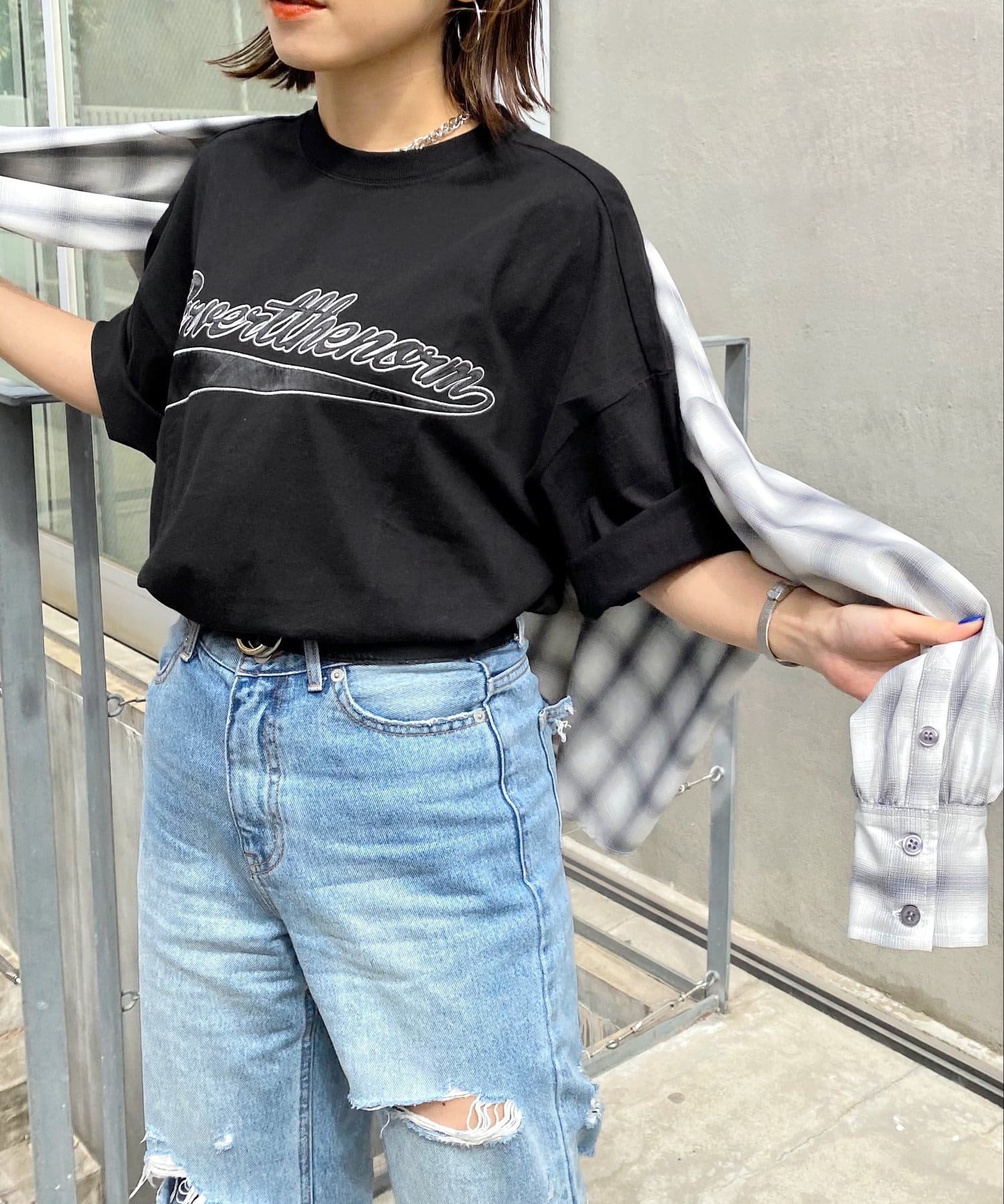 ・身頃に馴染むカラーのロゴは、一枚着でも存在感がありながら、柄物と合わせても程よいマッチ感。