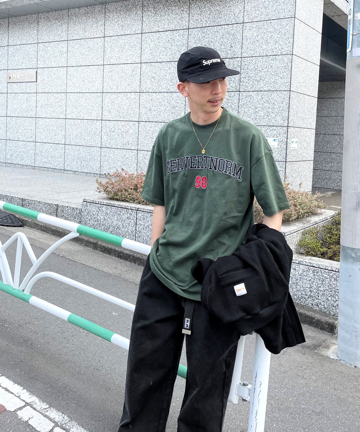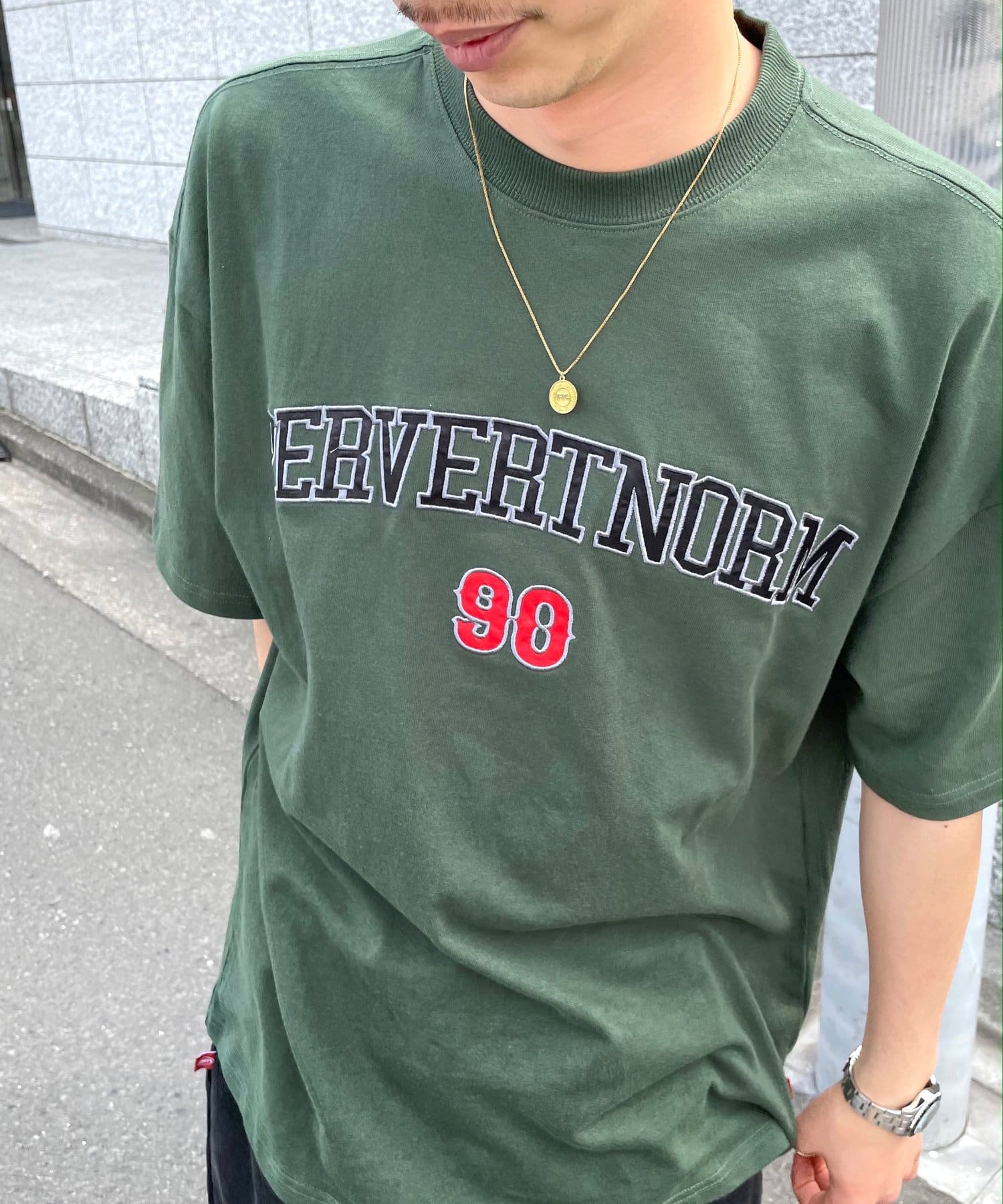 ・シンプルなカラー使いでありながら、刺繍の縁取りにより立体感のある“PERVERTNORM”ロゴ。チラッと見えるサテン地がコーデを華やかに。