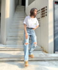 ・ロゴのPOPな配色がシンプルなコーデとも相性良し。スタイリングのアクセントになります。
