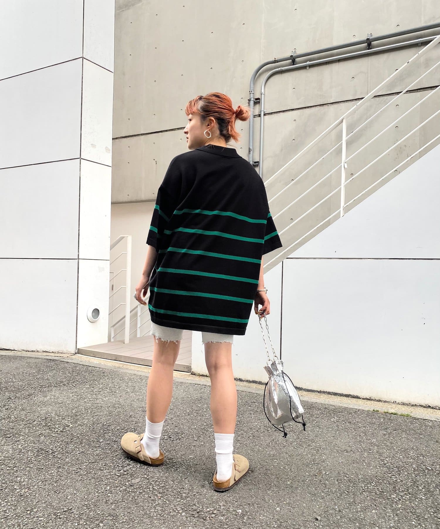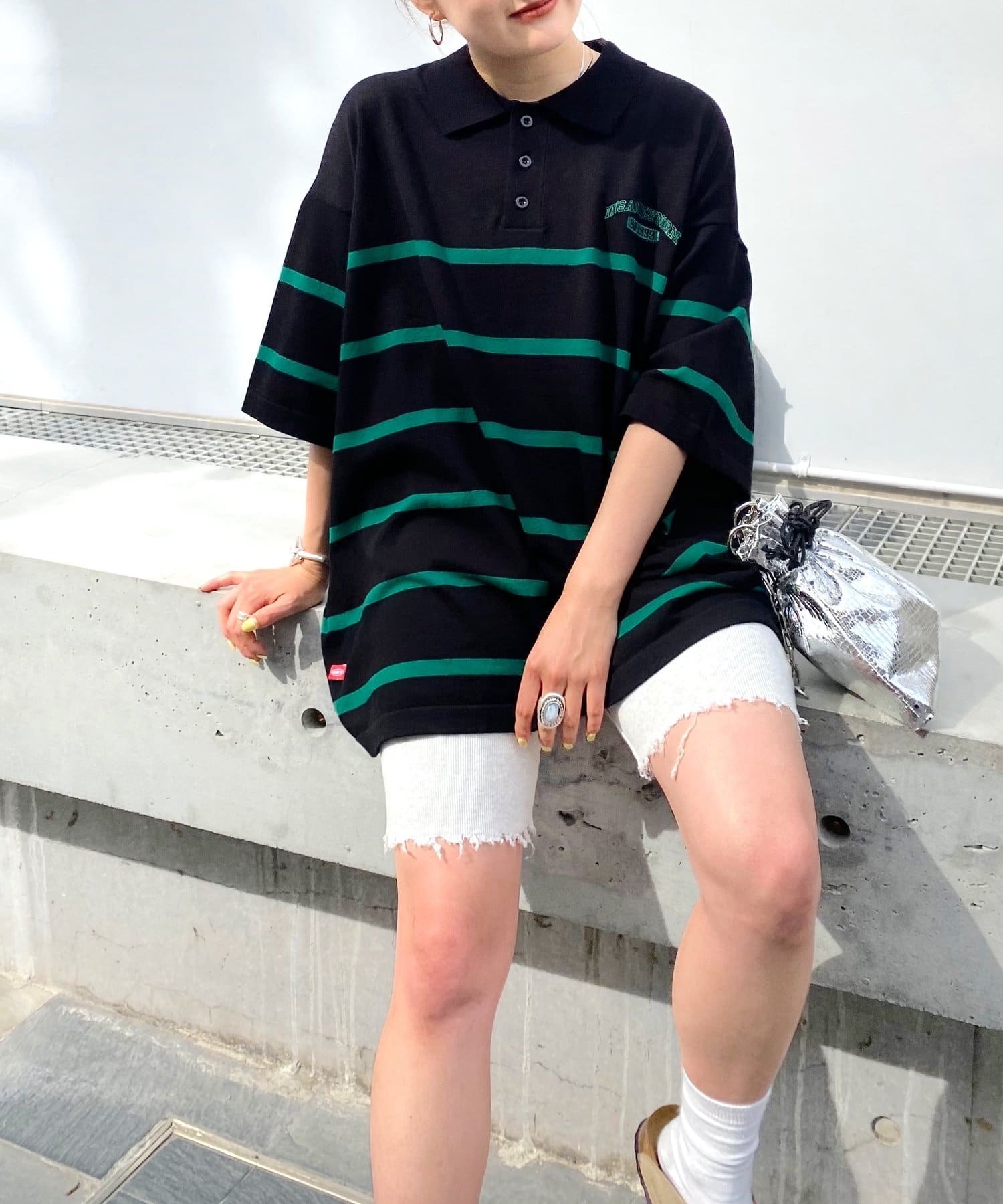 このKOOK'YNのボーダーニットポロは、写真のようなビッグシルエットのつくりで、