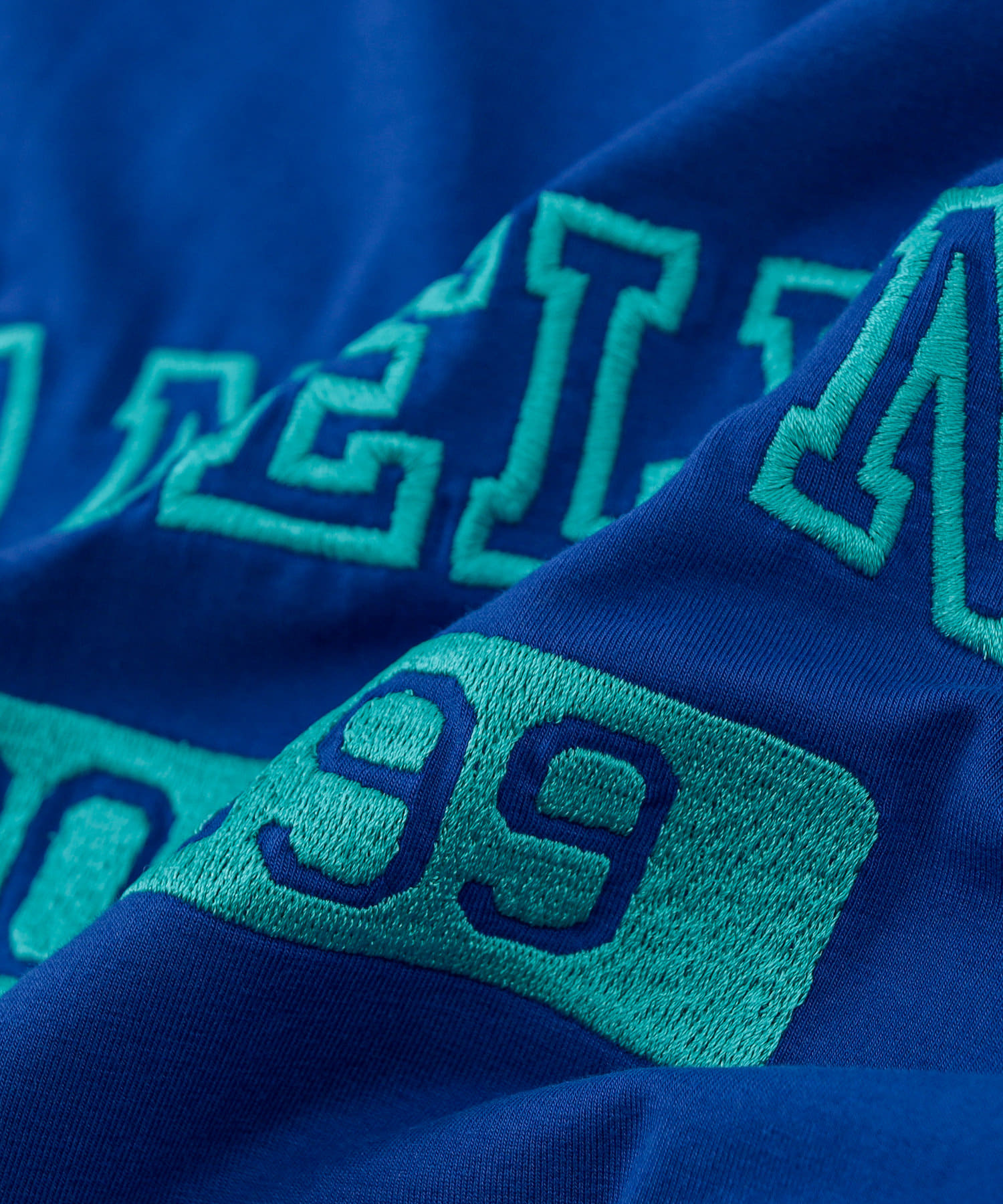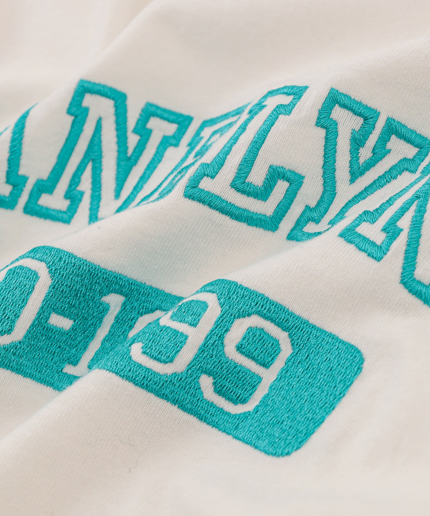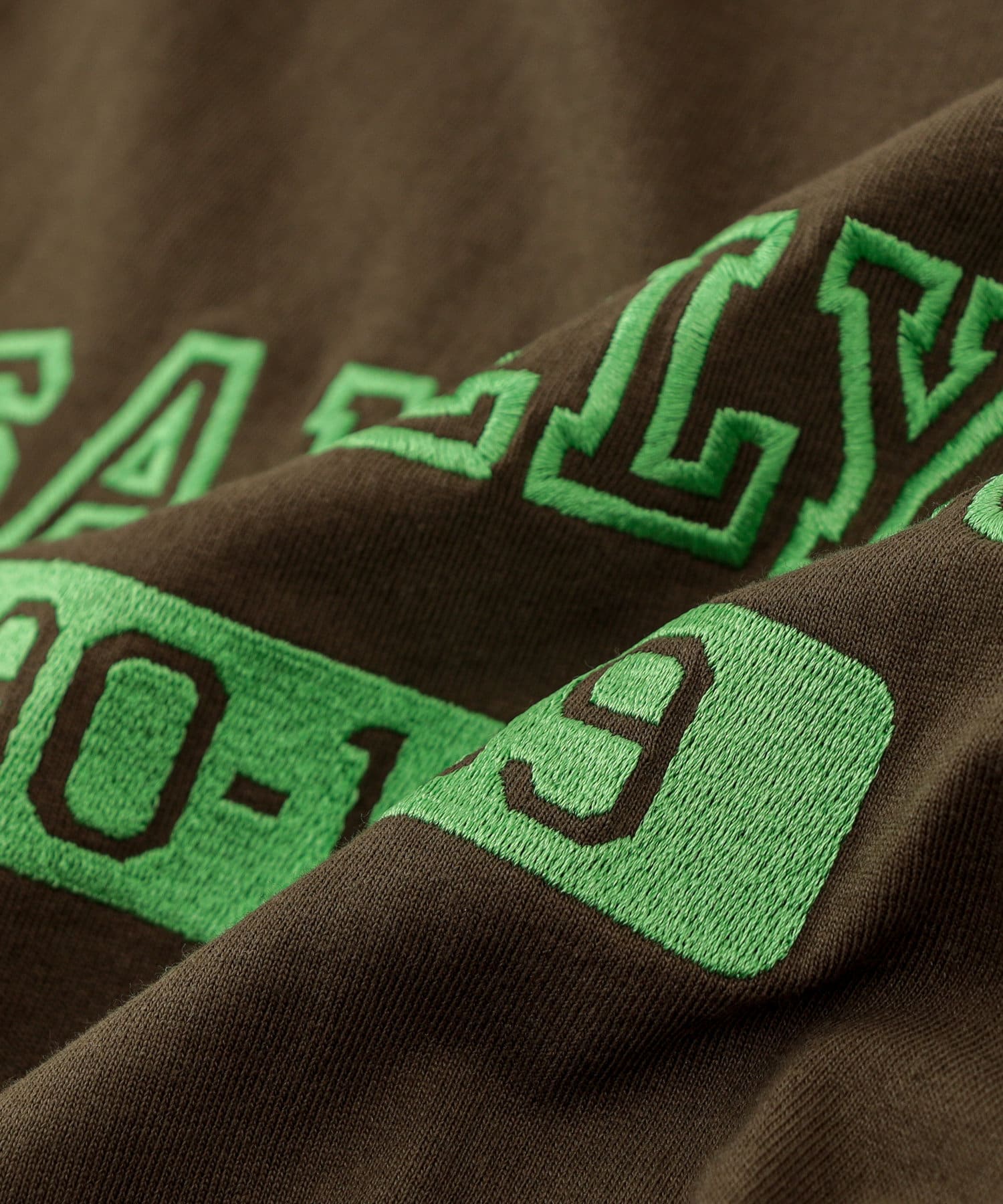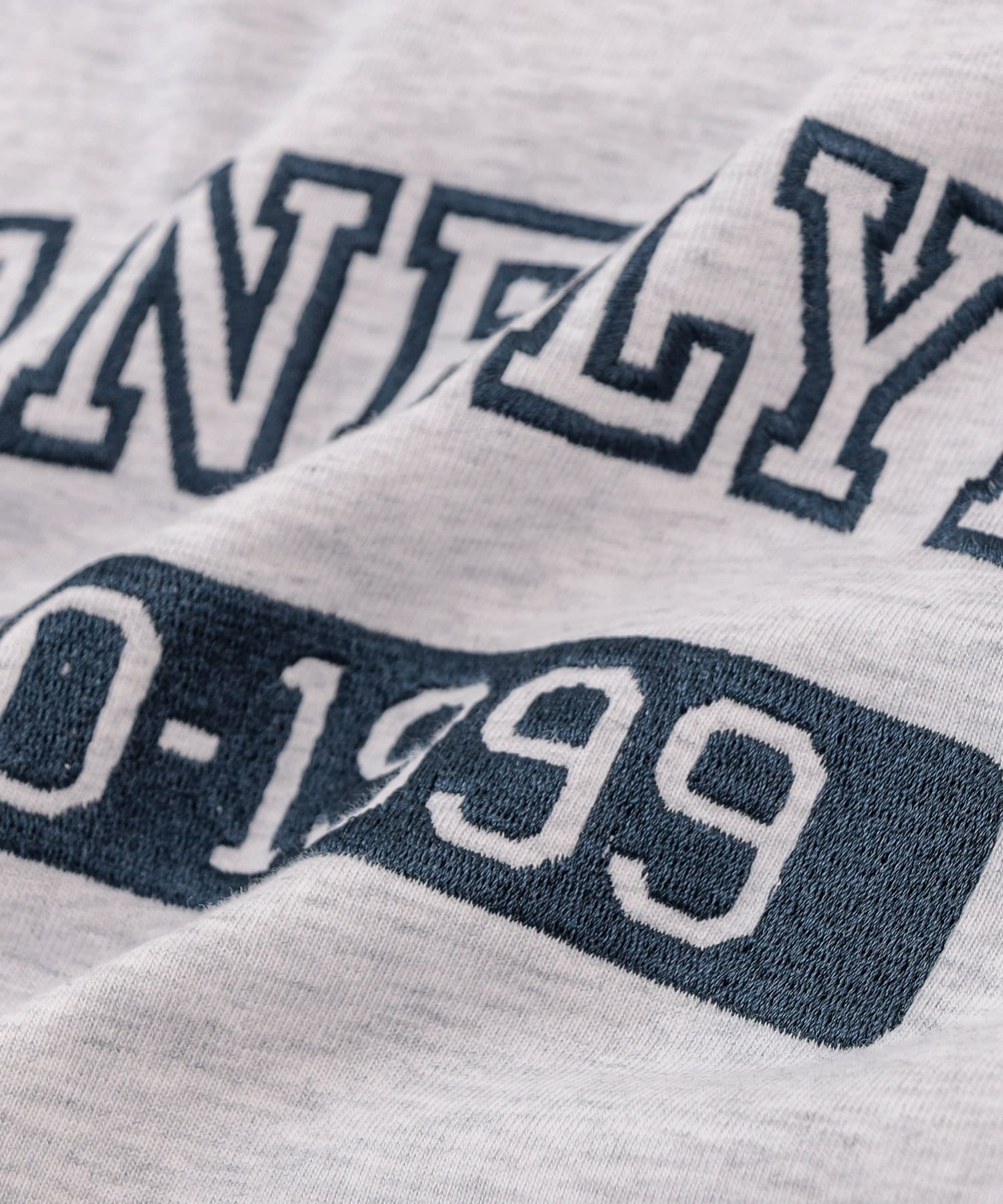 ・カラーによって、ボディーに馴染んだり映えたりする刺繍ロゴ。肉厚なので、一枚着でもしっかりとした見栄えに。