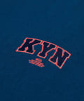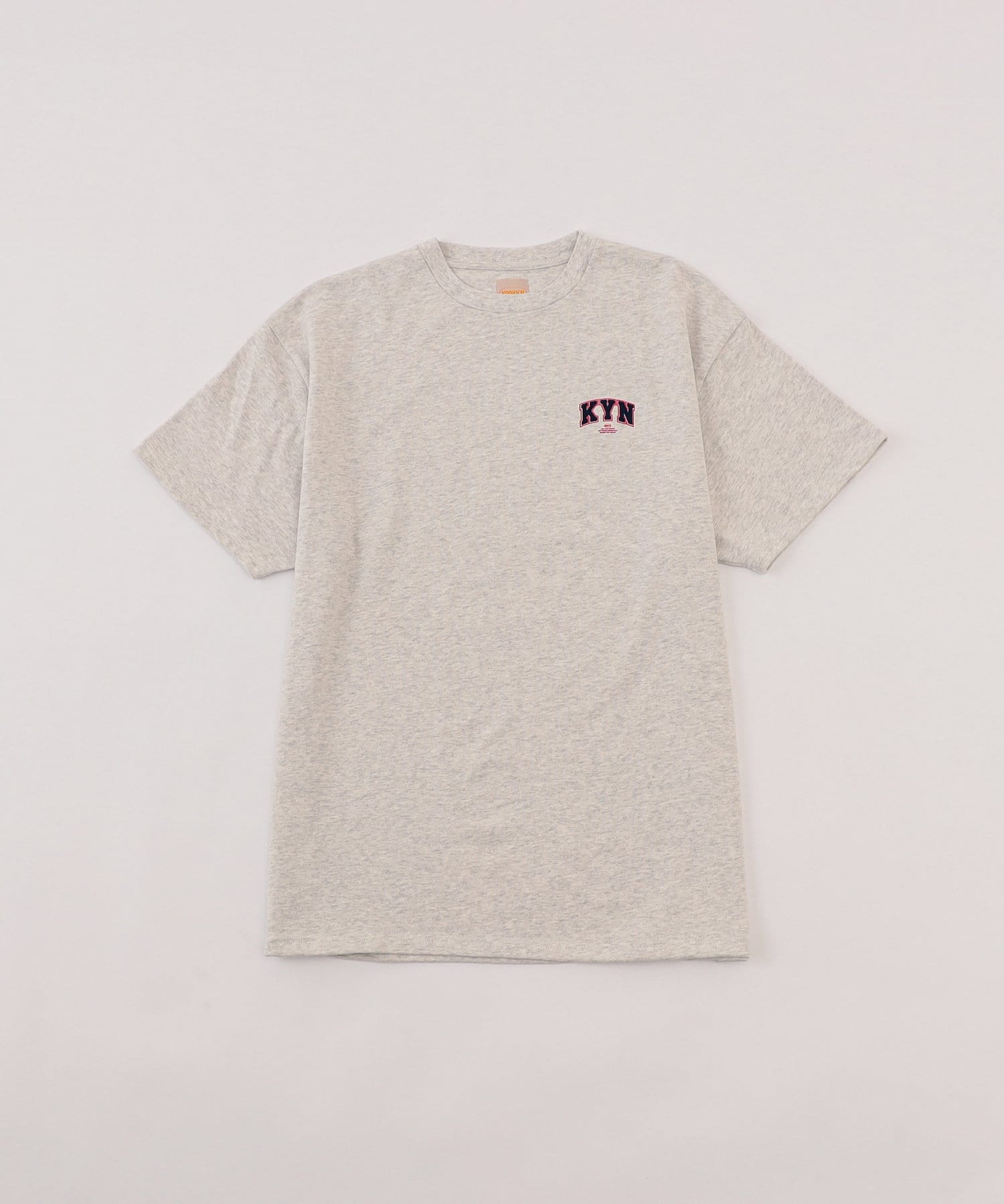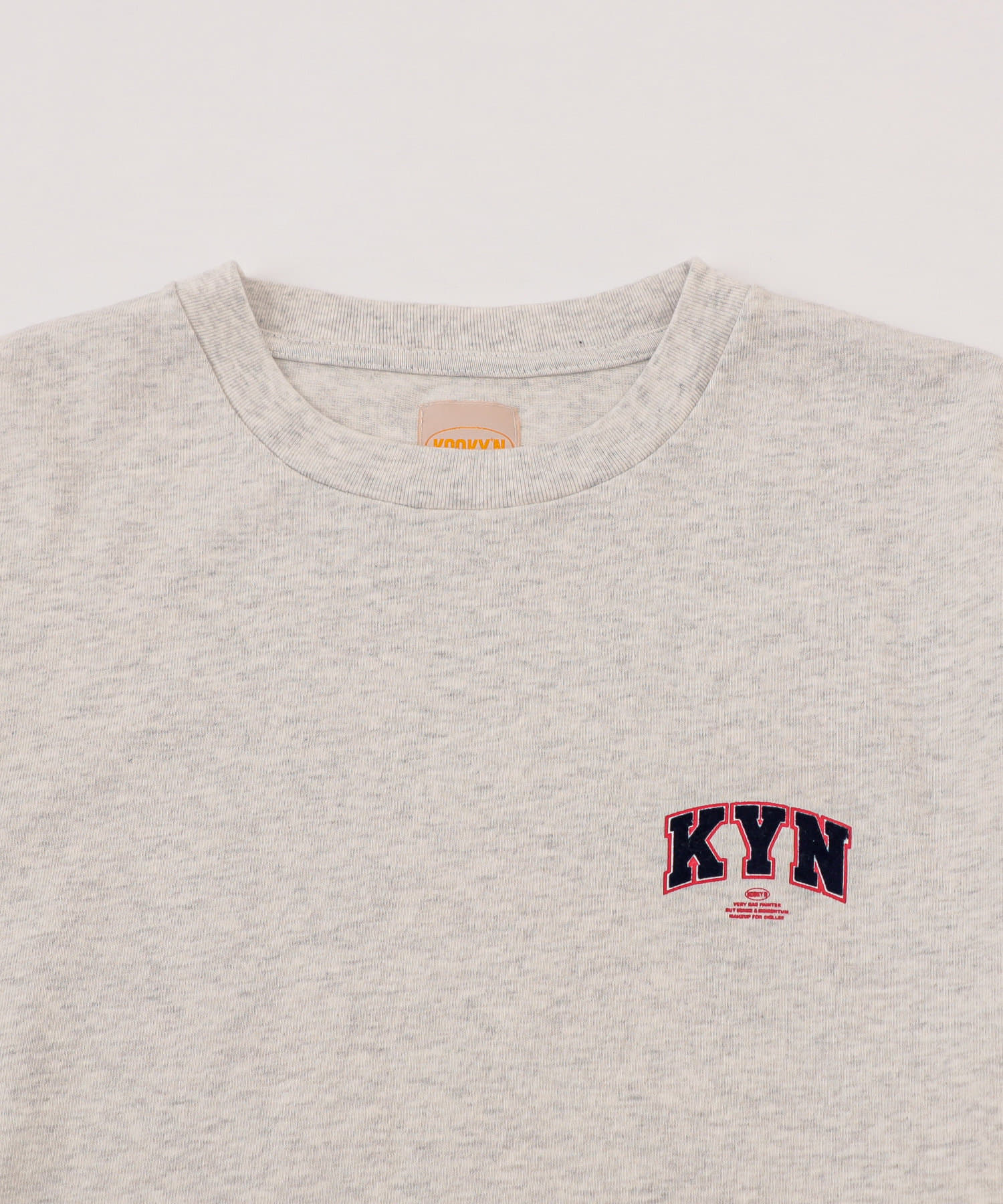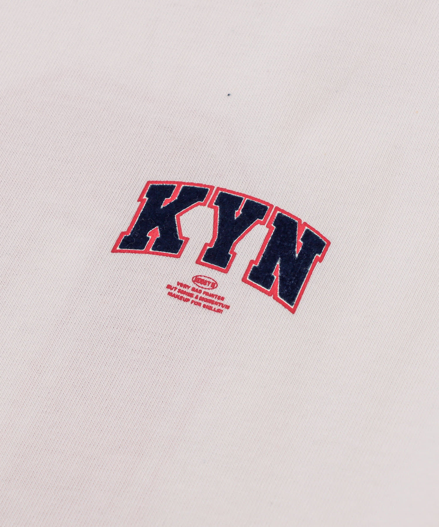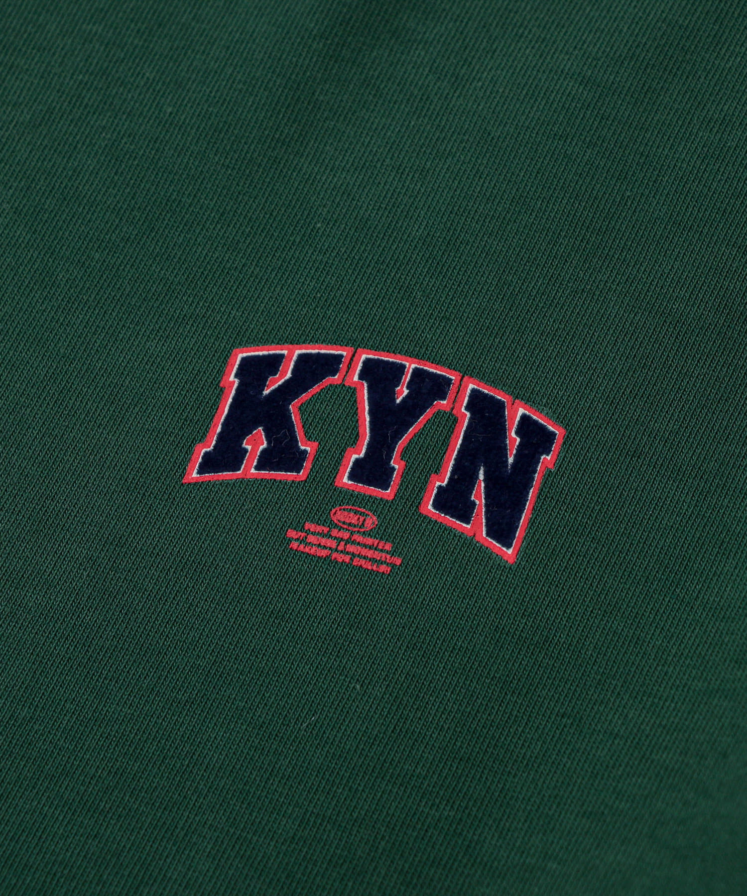 ・胸元の“KYN”ロゴはフロッキープリントで表現。少し立体的で、ボディーとは異なる触り心地なので、一枚着でもしっかり見えます。