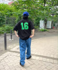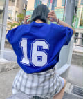 ・ボディーのカラーに映える、胸元の刺繍ロゴや背番号。コーディネートの主役になる一枚です。