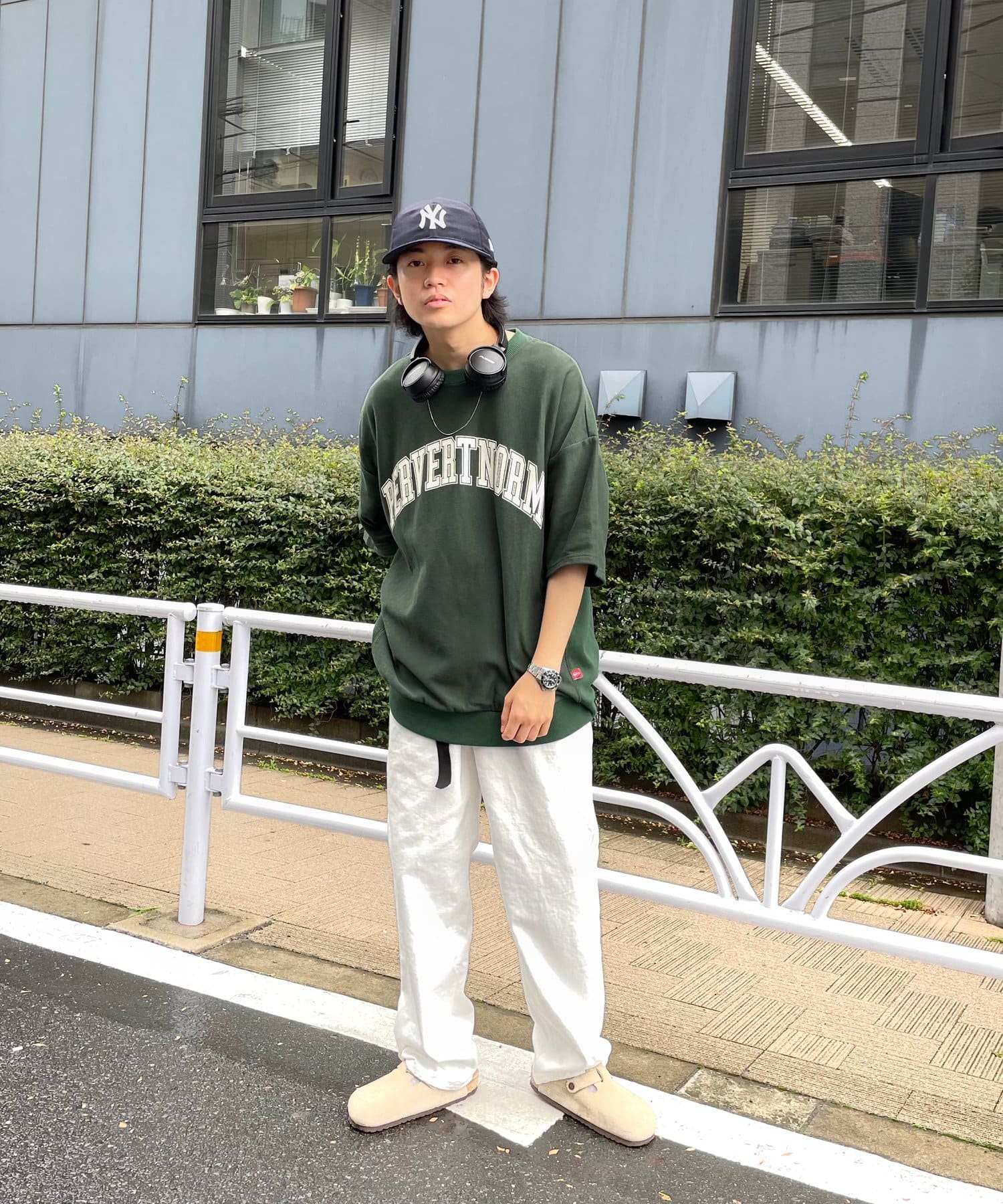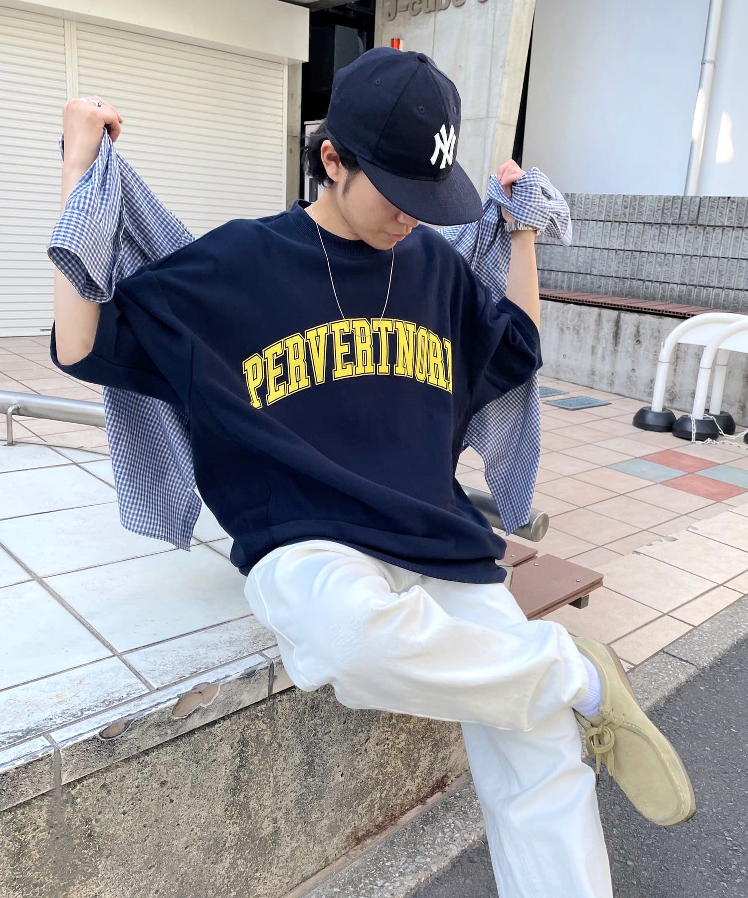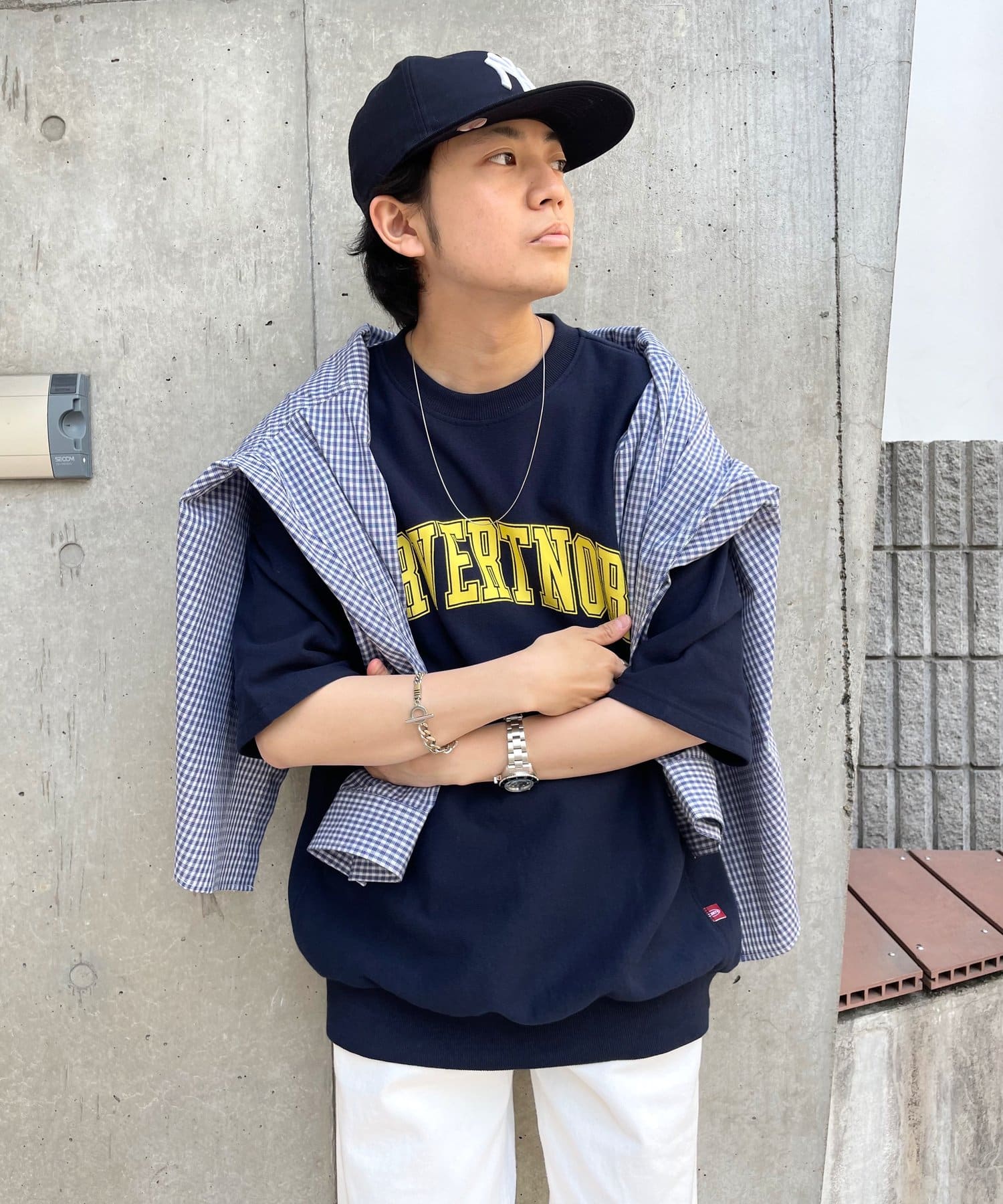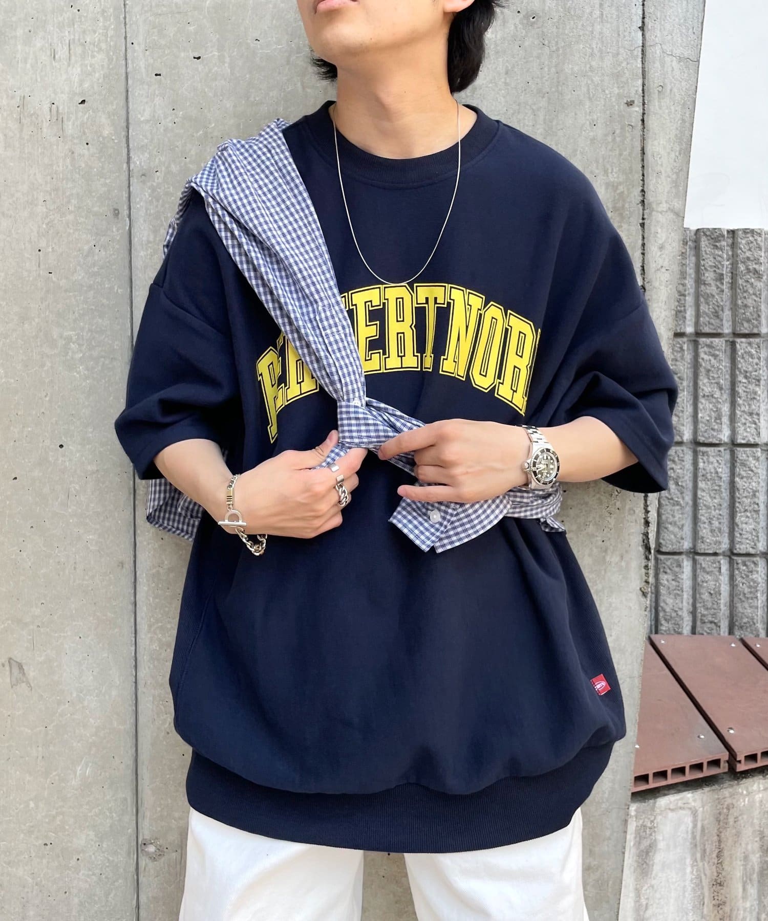 いわゆるアメカジ王道のカレッジプリントに、サイドにリブデザイン。