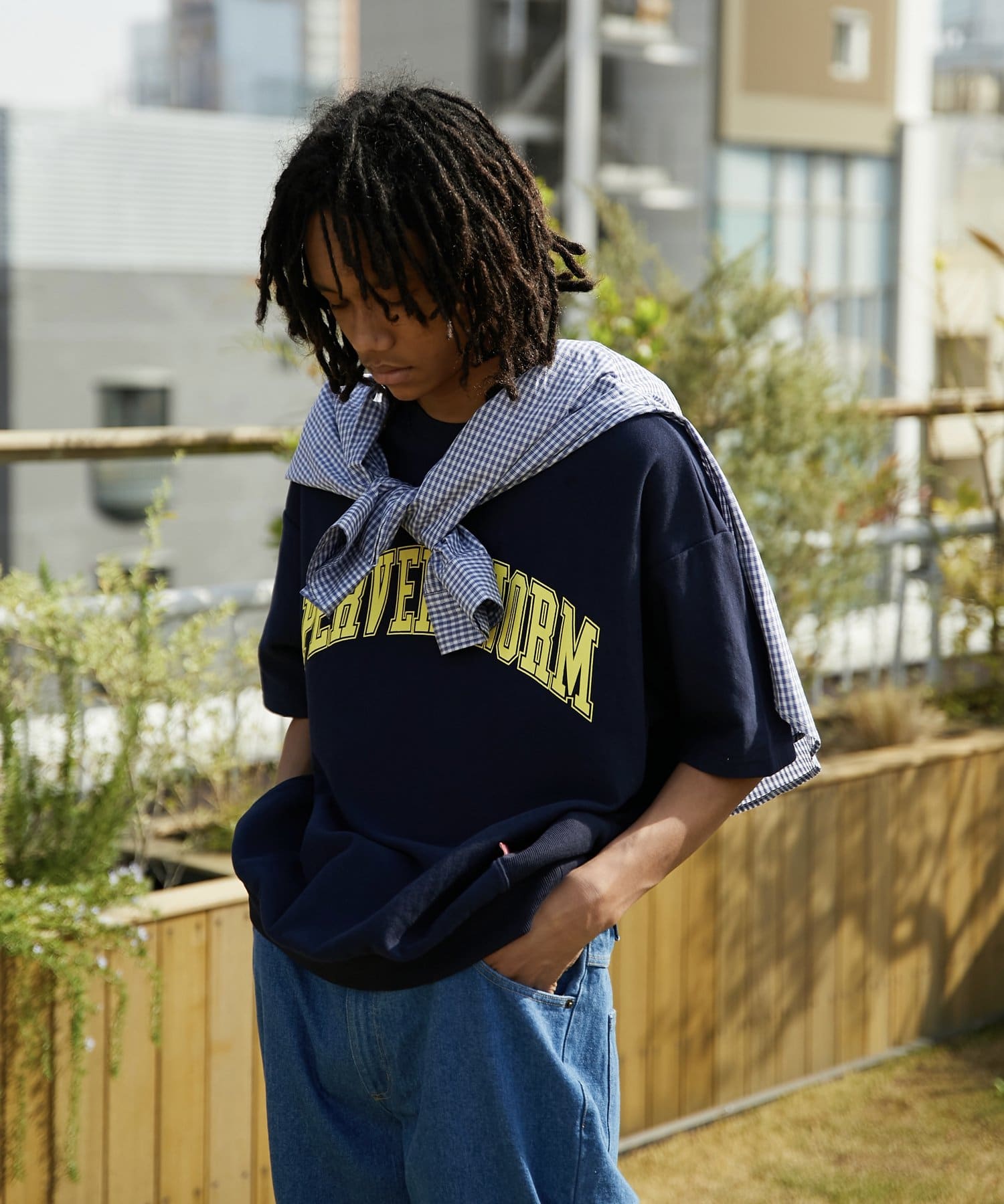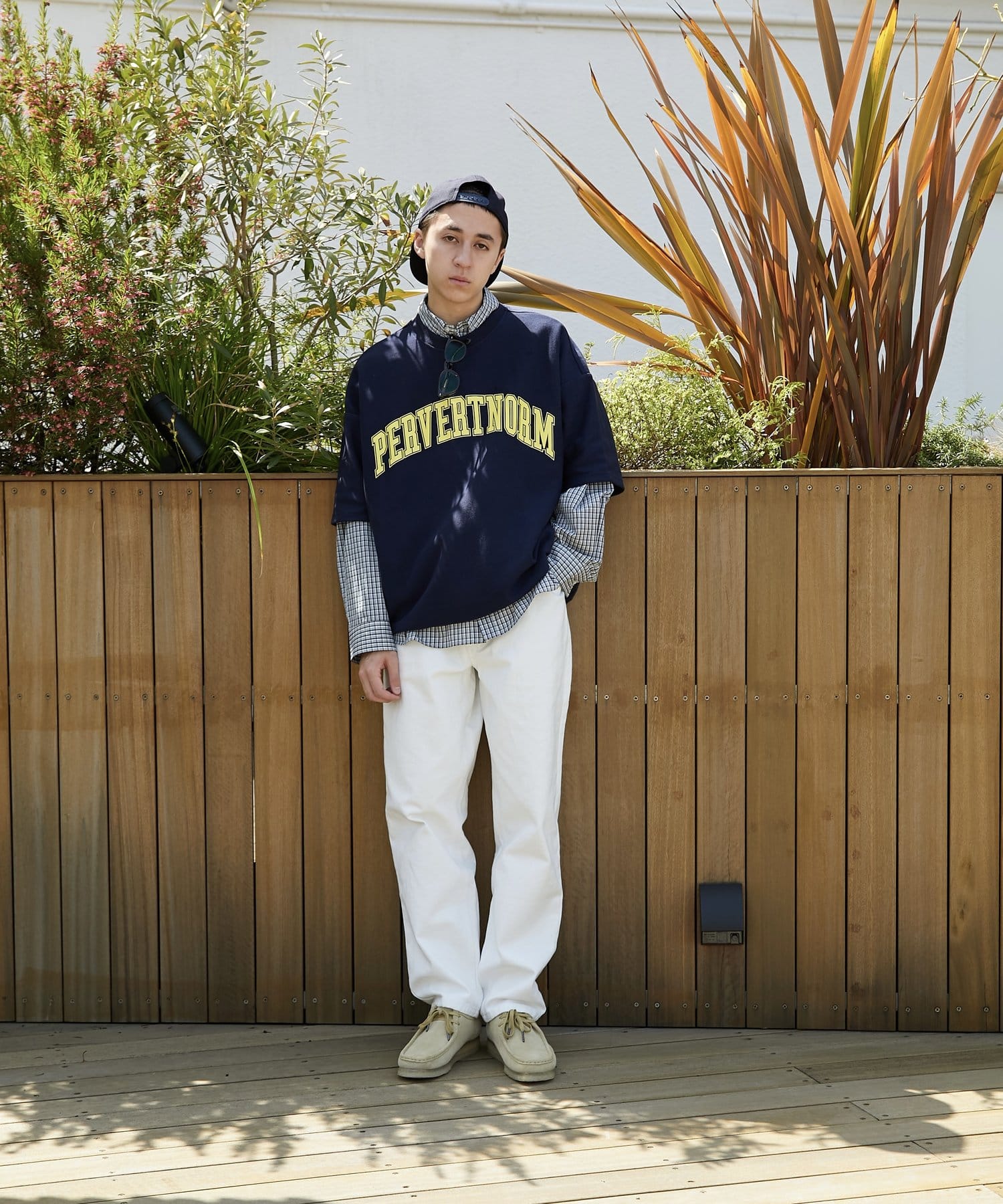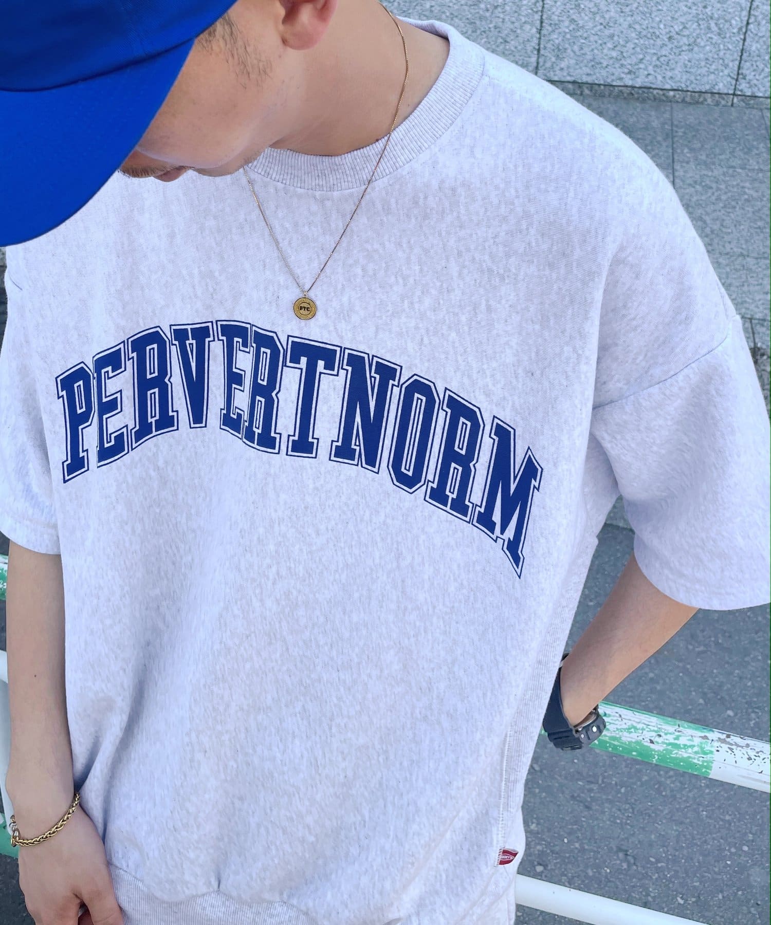 いわゆるアメカジ王道のカレッジプリントに、サイドにリブデザイン。