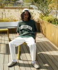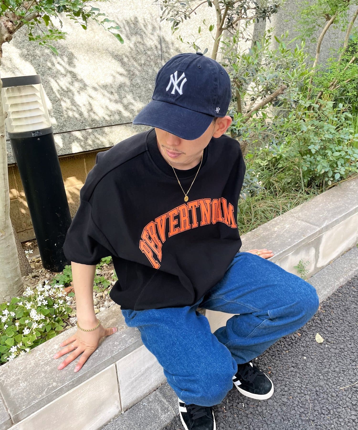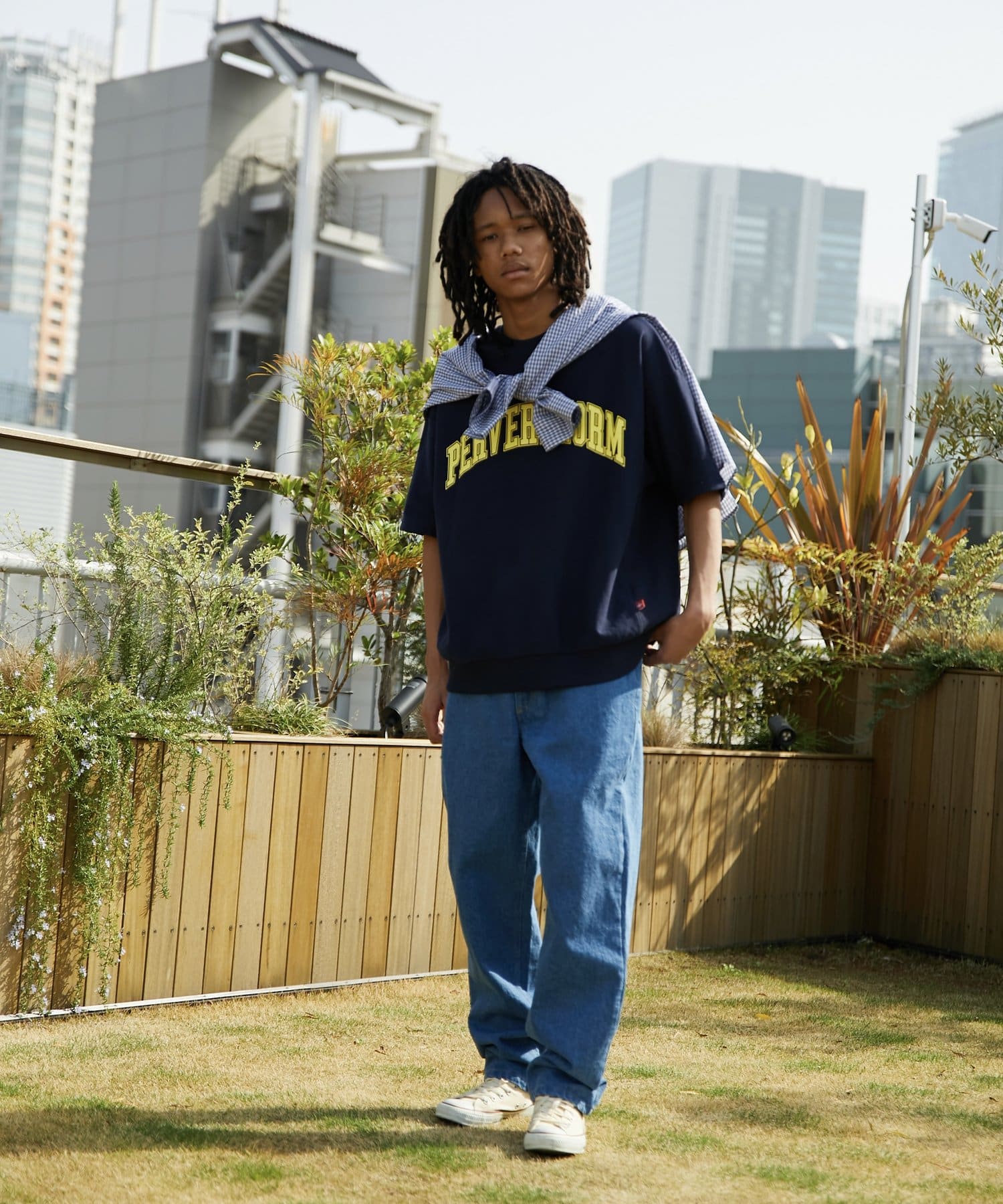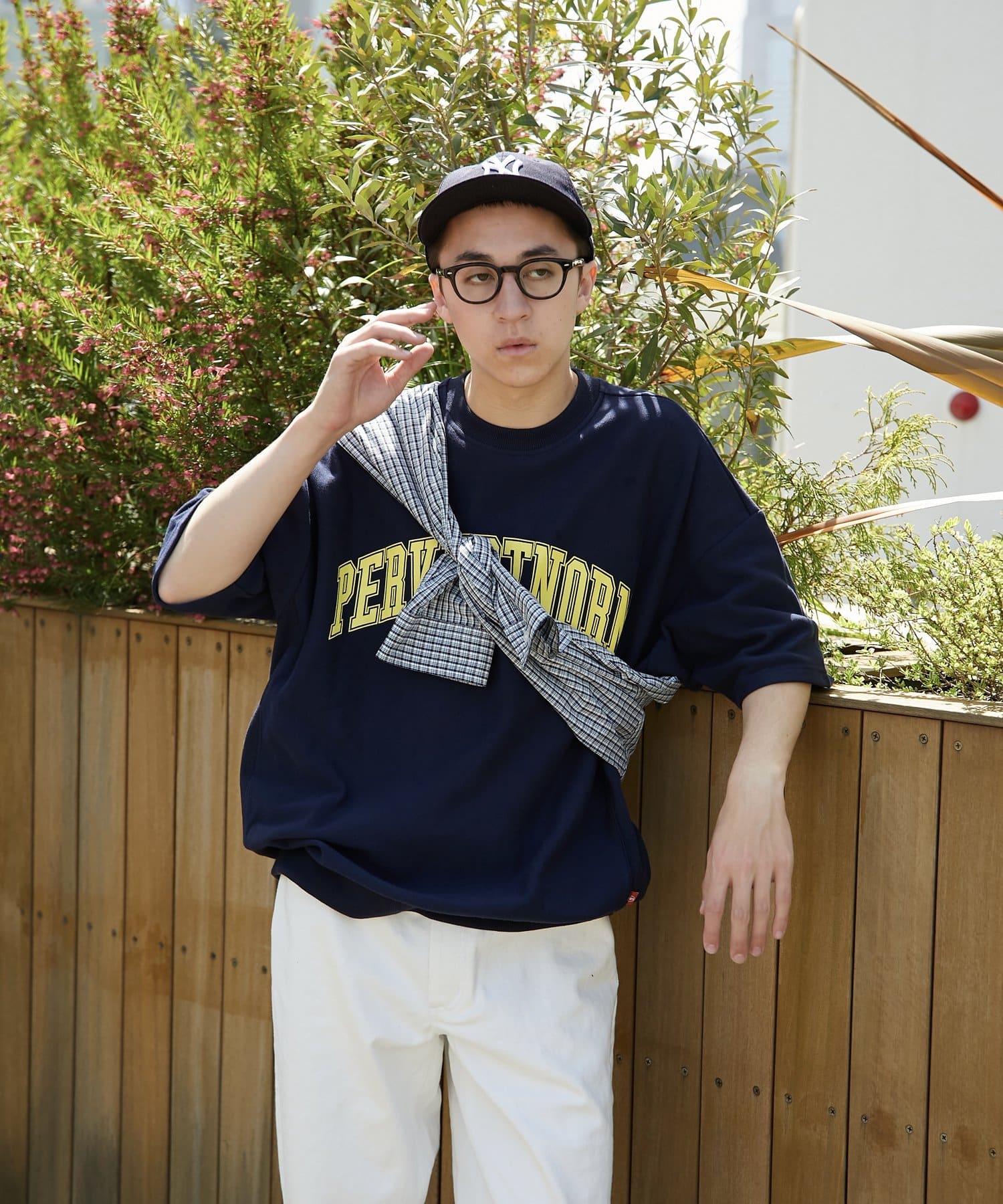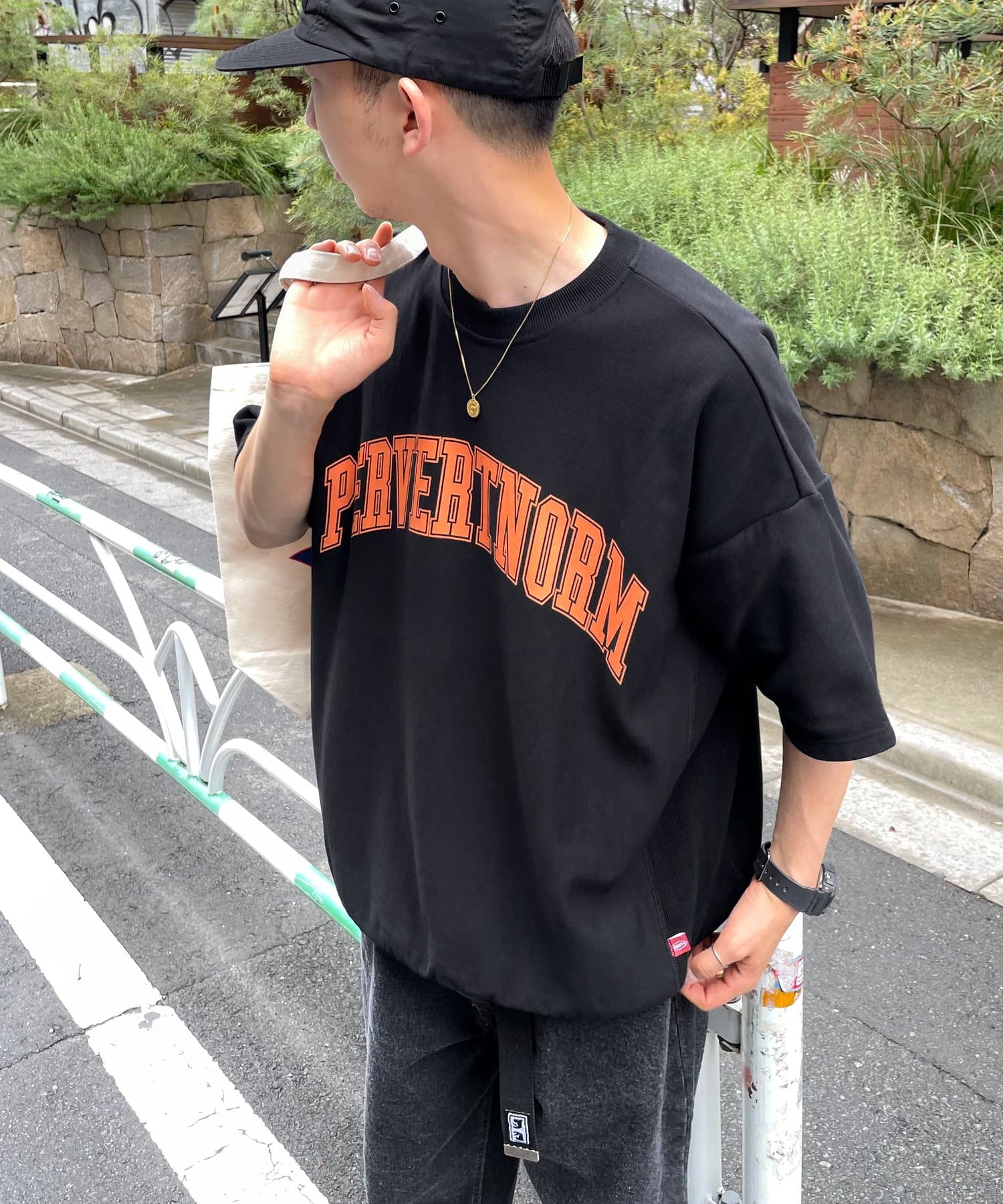 いわゆるアメカジ王道のカレッジプリントに、サイドにリブデザイン。