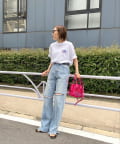 バックプリントのTシャツが欲しくて購入しました。カラーパンツを合わせるととても可愛いです!