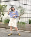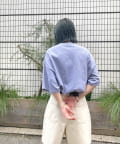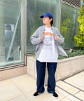 ・首もとの“BLESS YOU”タグは水色で、目を引くポップなカラー。目立ちにくい場所まで抜かりなくオシャレを。