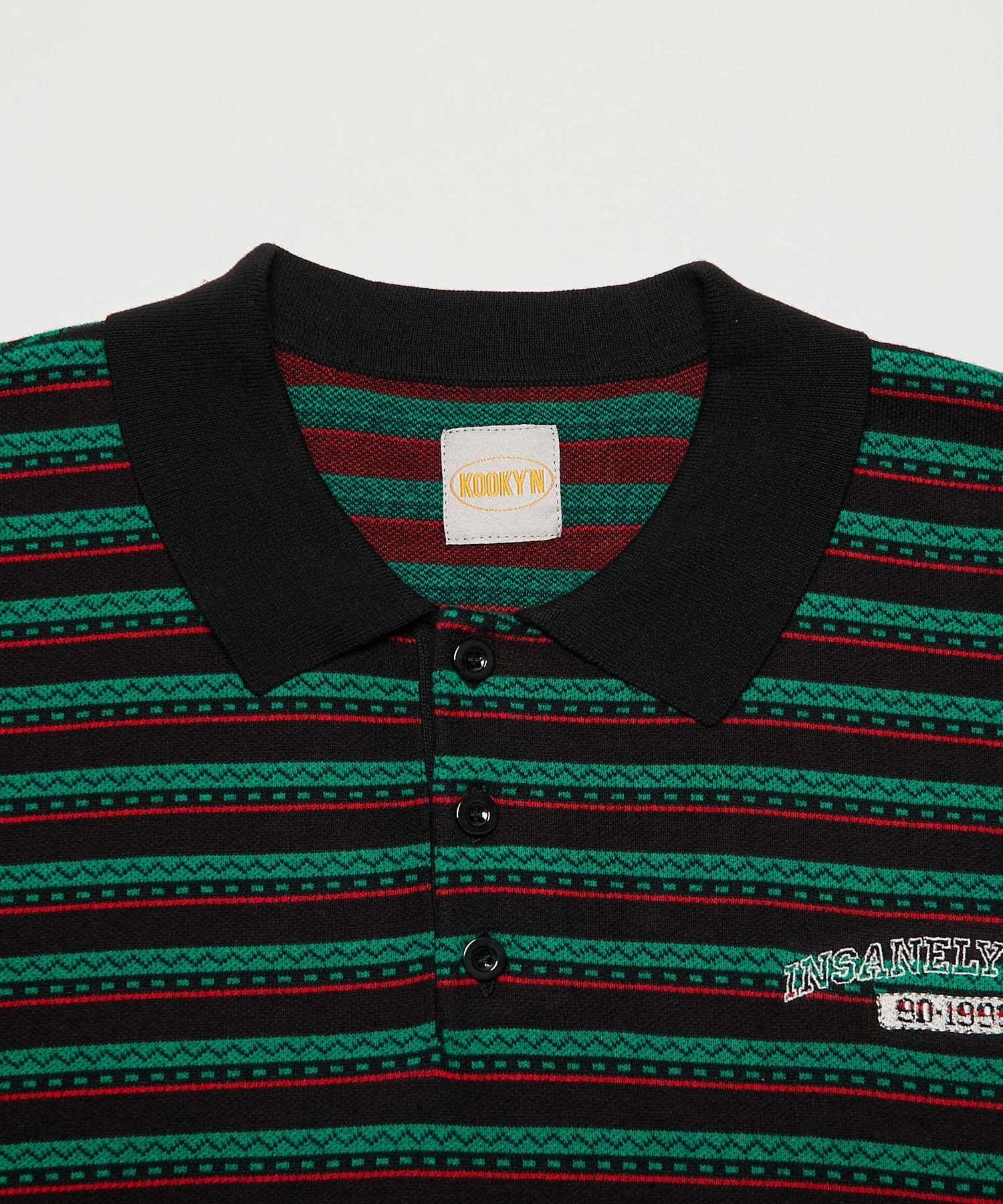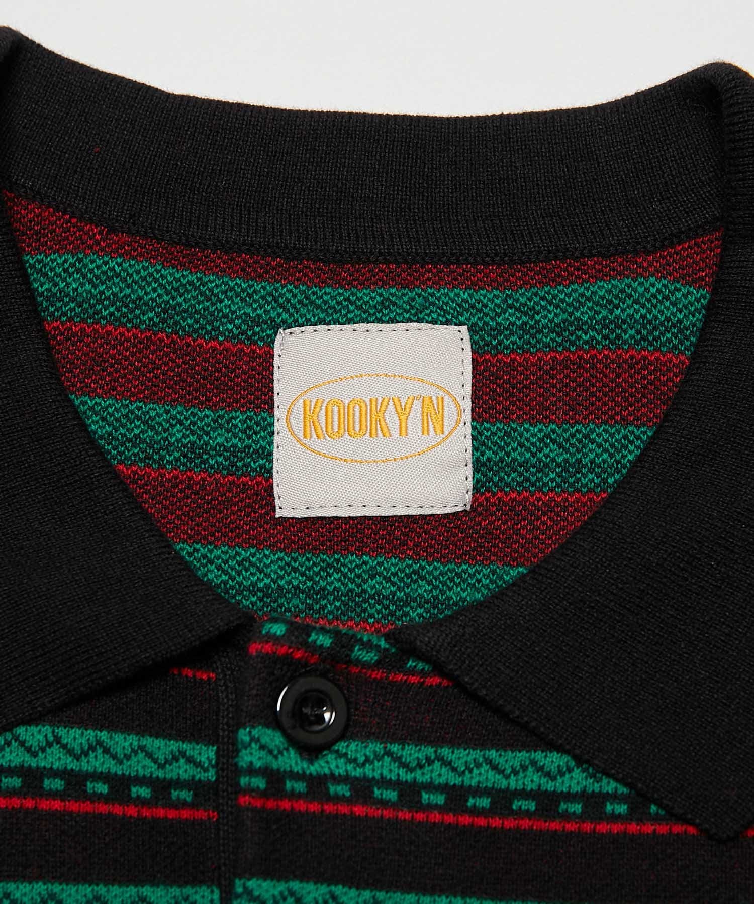 【KOOKY'N/クーキー】ジャガードボーダーニットポロ
