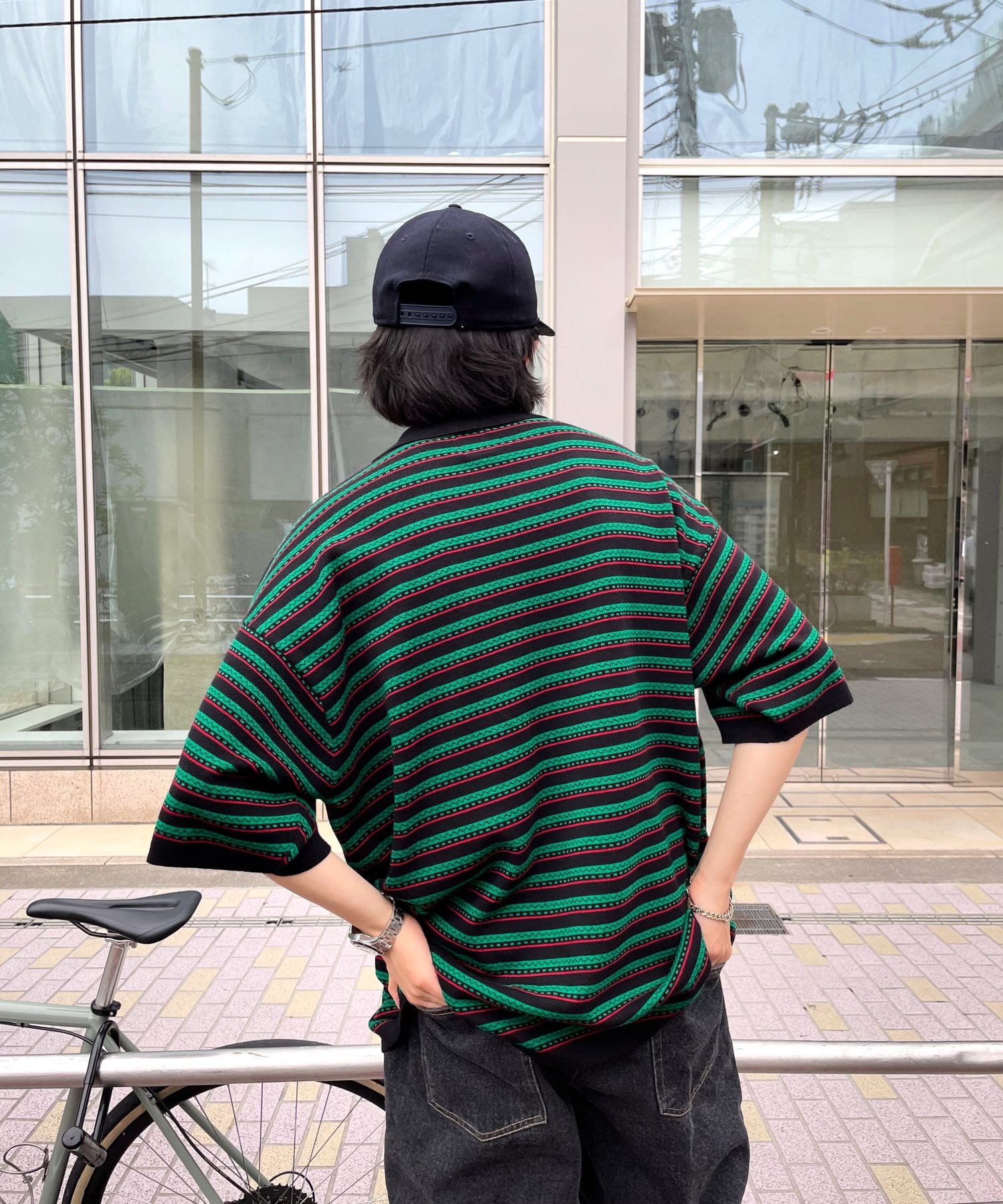 ボーダーポロと同時発売する、ジャガードボーダー。
