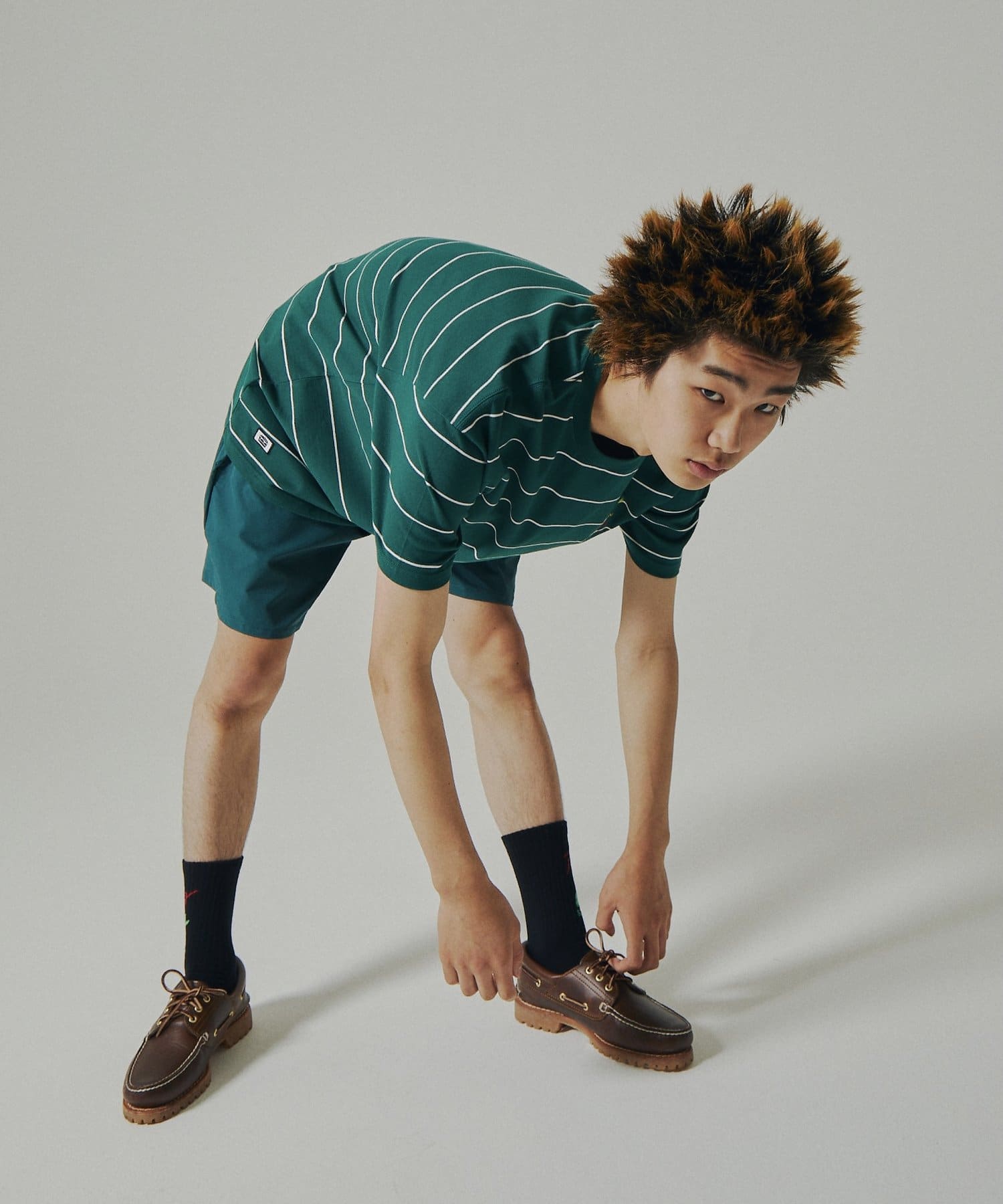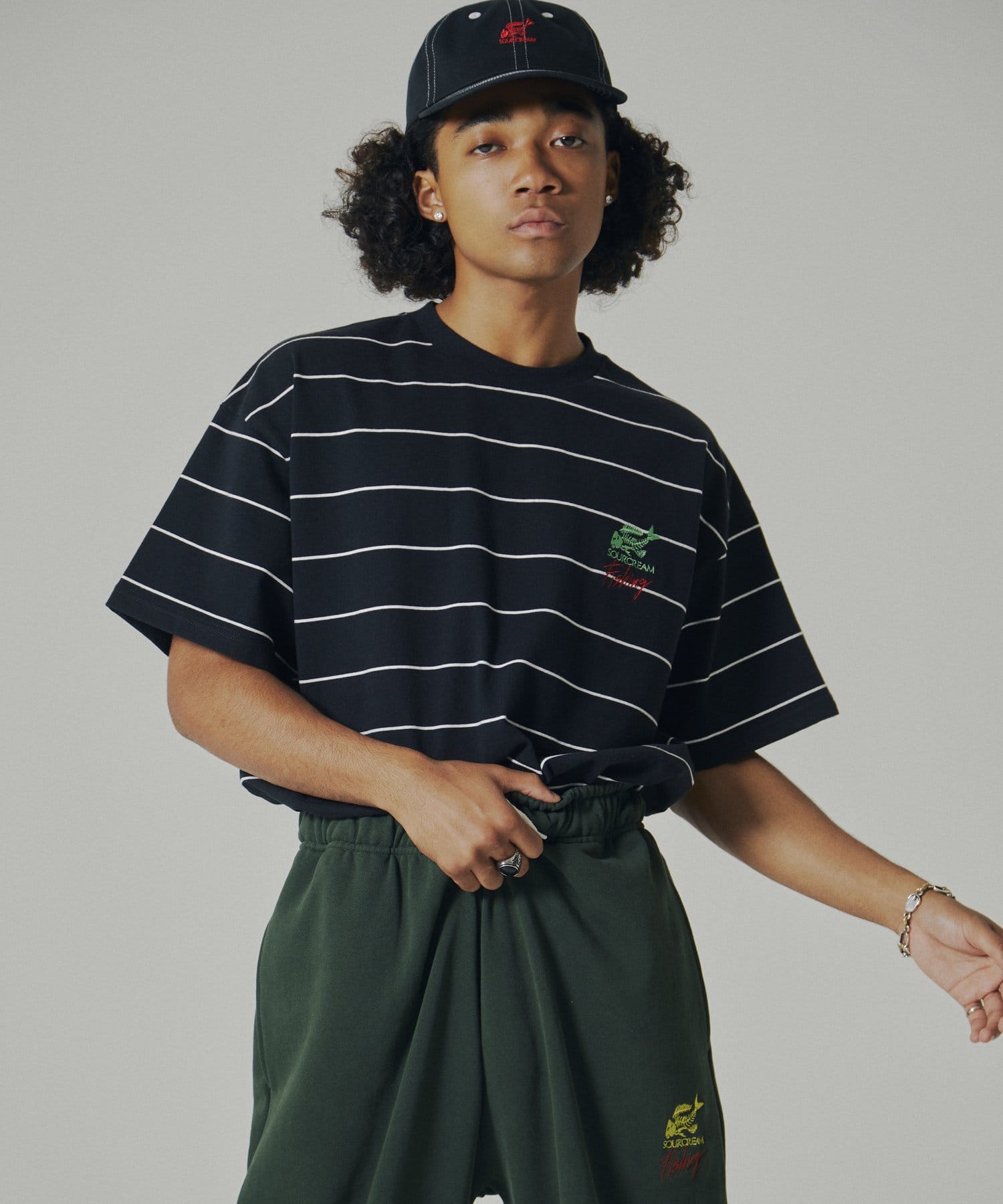 ・さりげないボーダーに重なる刺繍ロゴのワンポイント。互いに強調しすぎず、コーデに良いスパイスを与えます。
