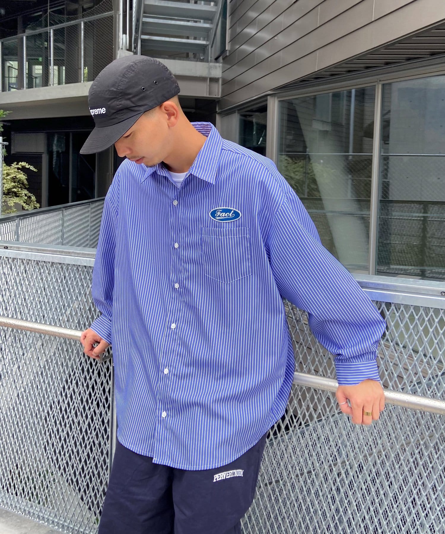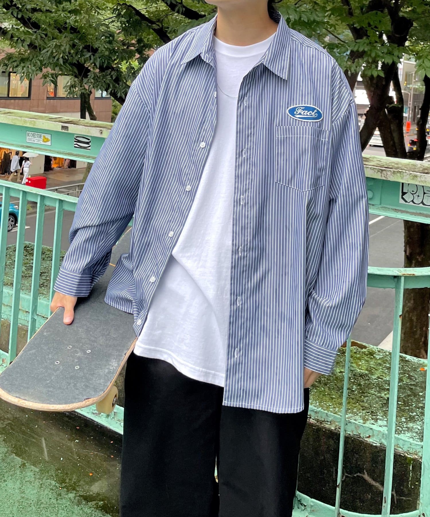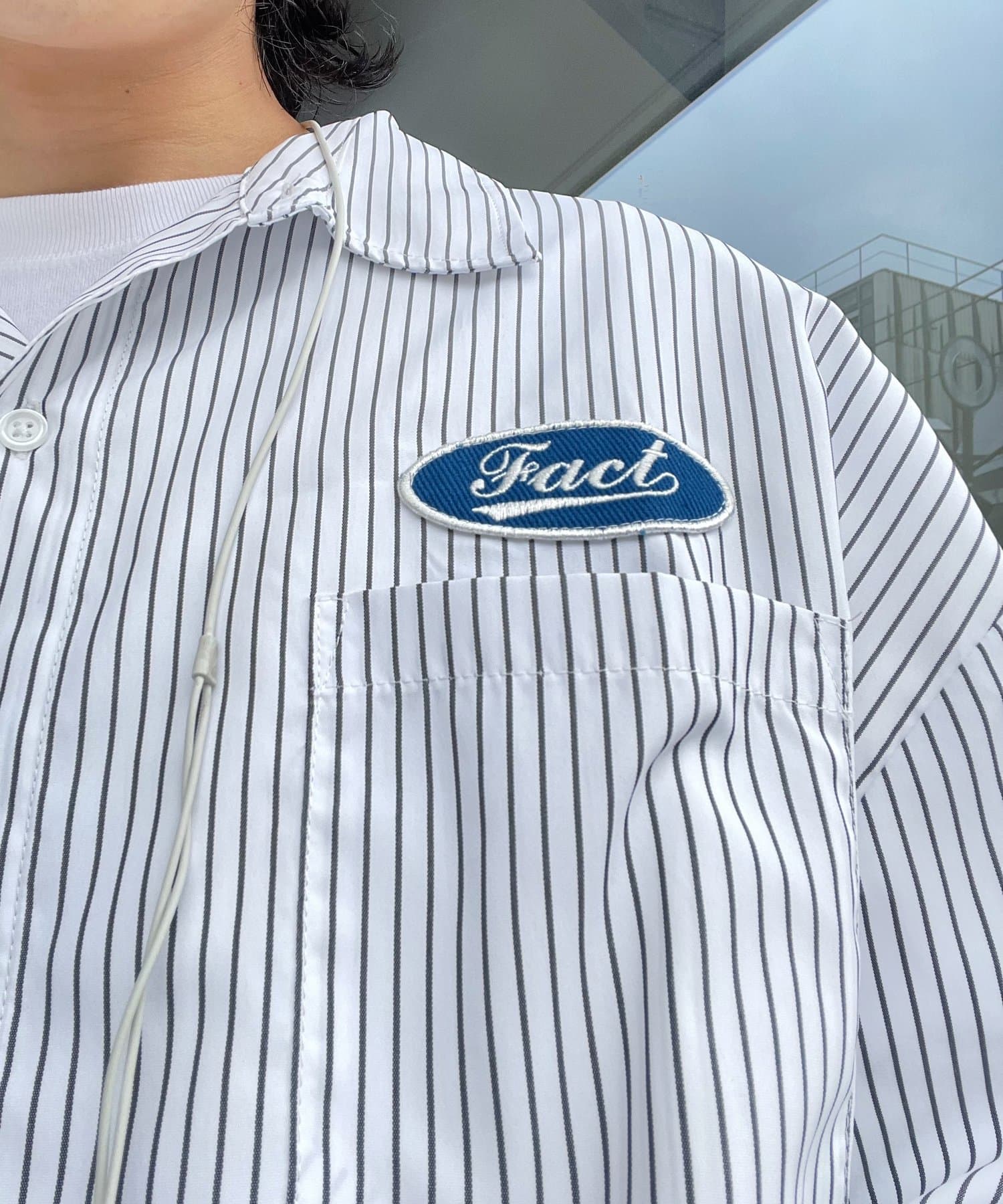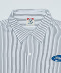 左側にあるロゴがアクセントになっていて、一味違ったストライプシャツを探している人にはおすすめです。