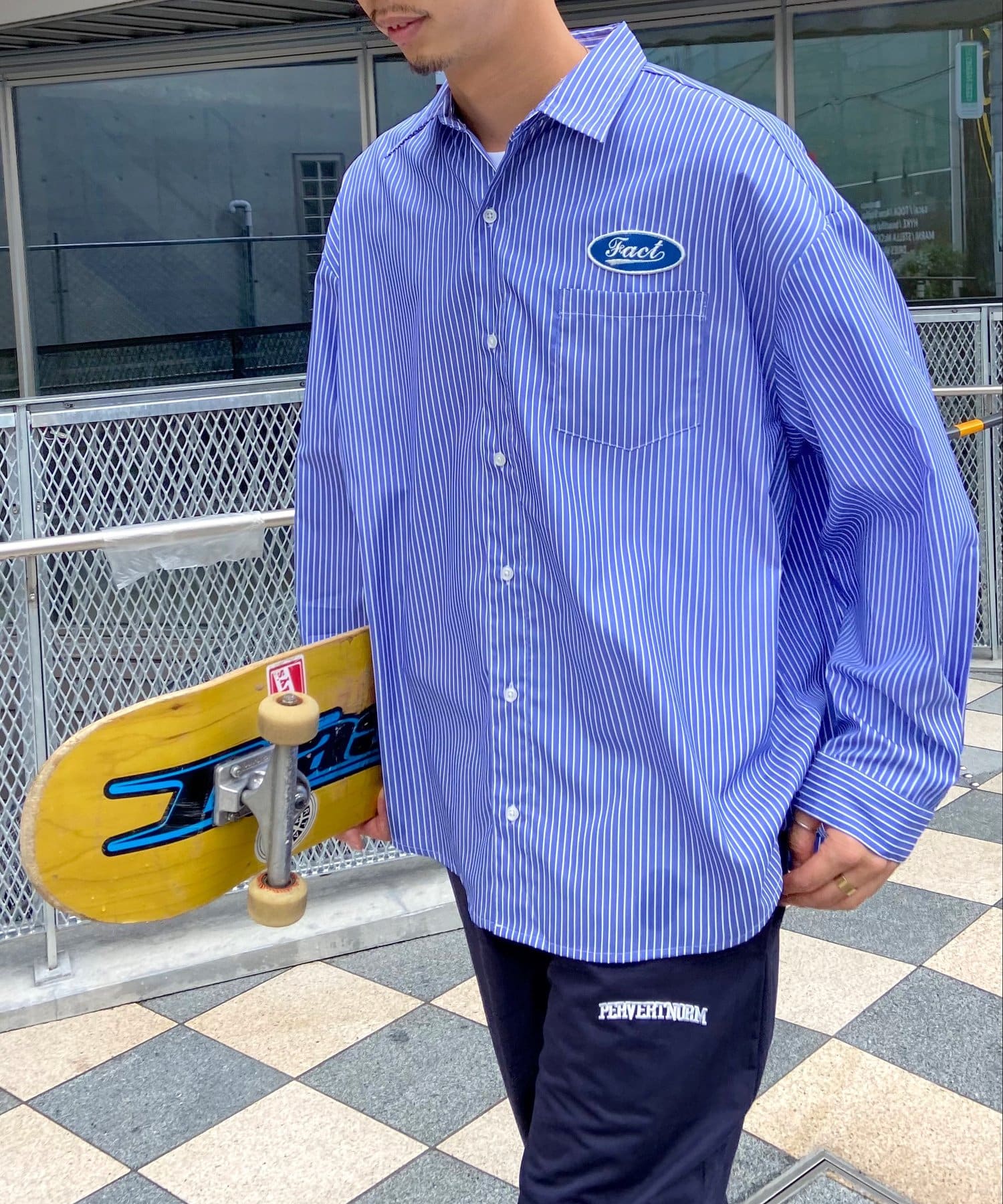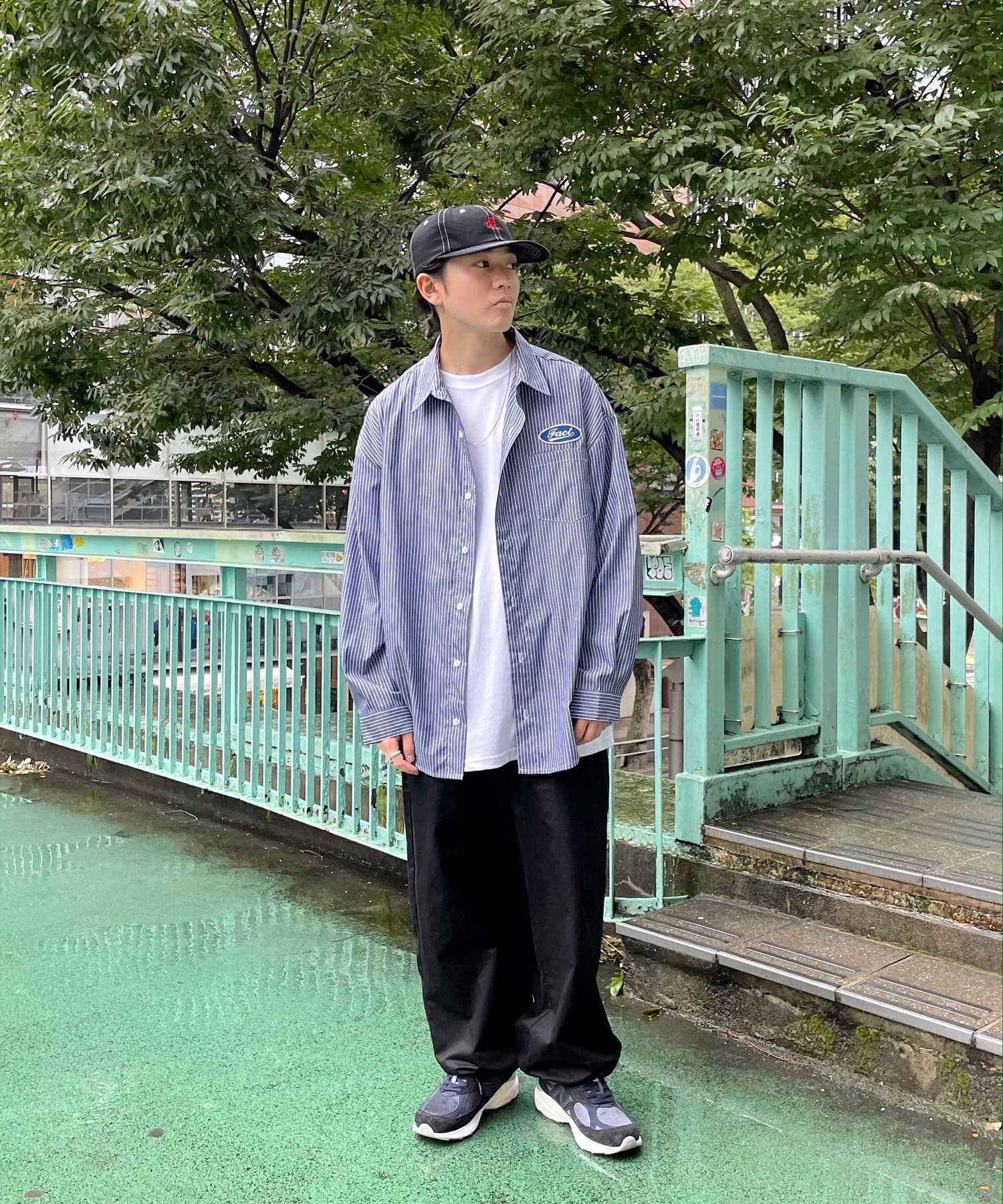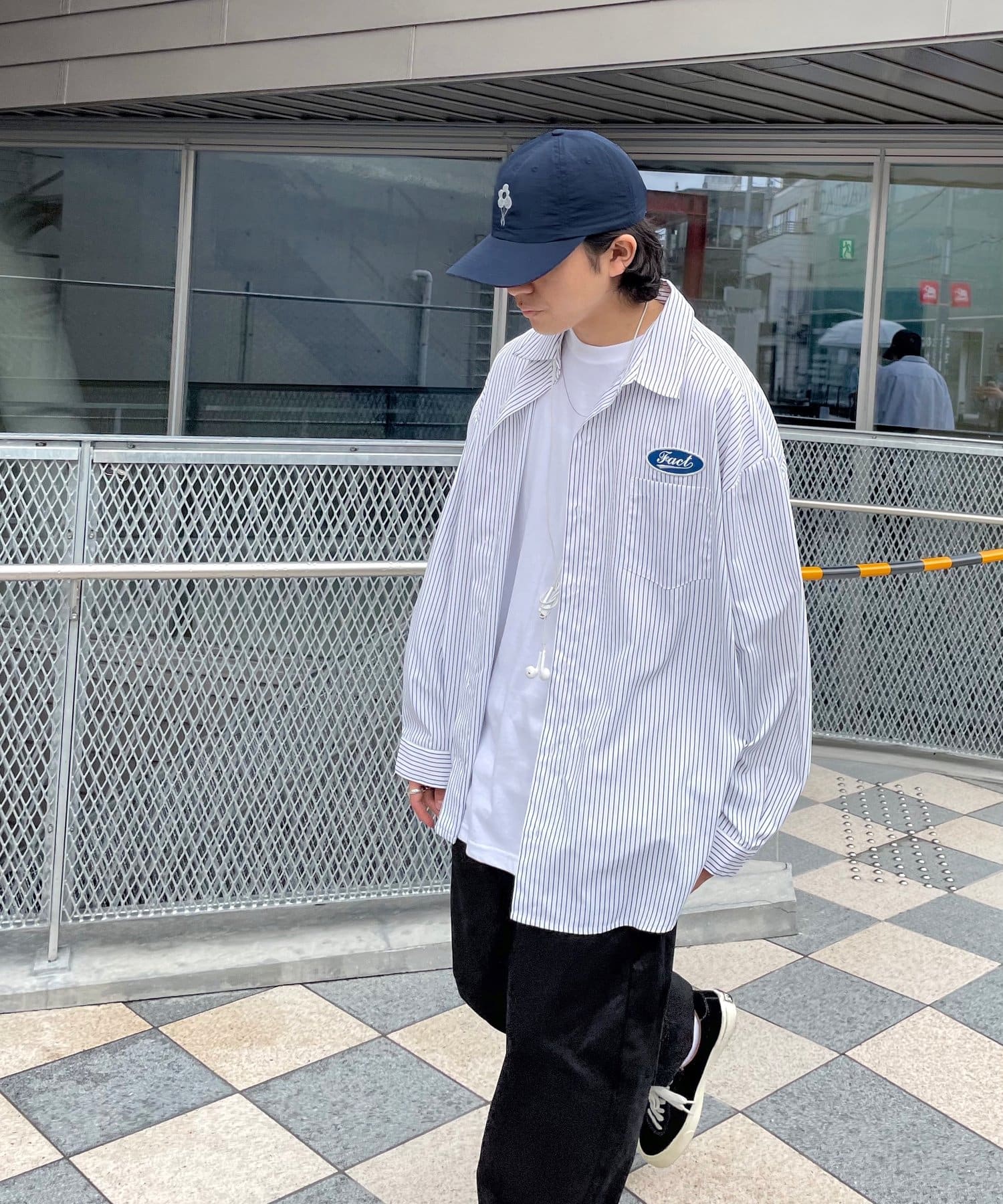 左側にあるロゴがアクセントになっていて、一味違ったストライプシャツを探している人にはおすすめです。