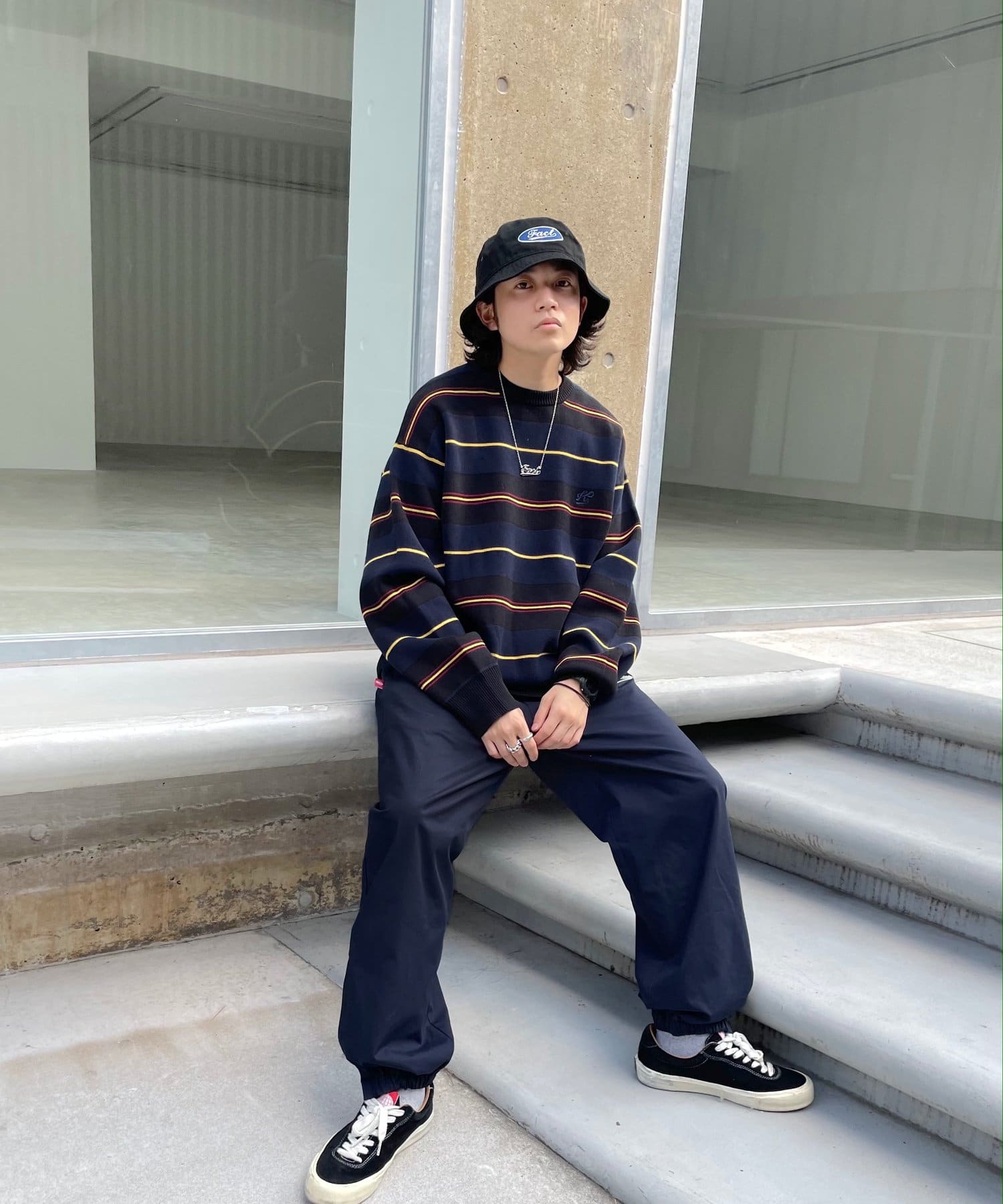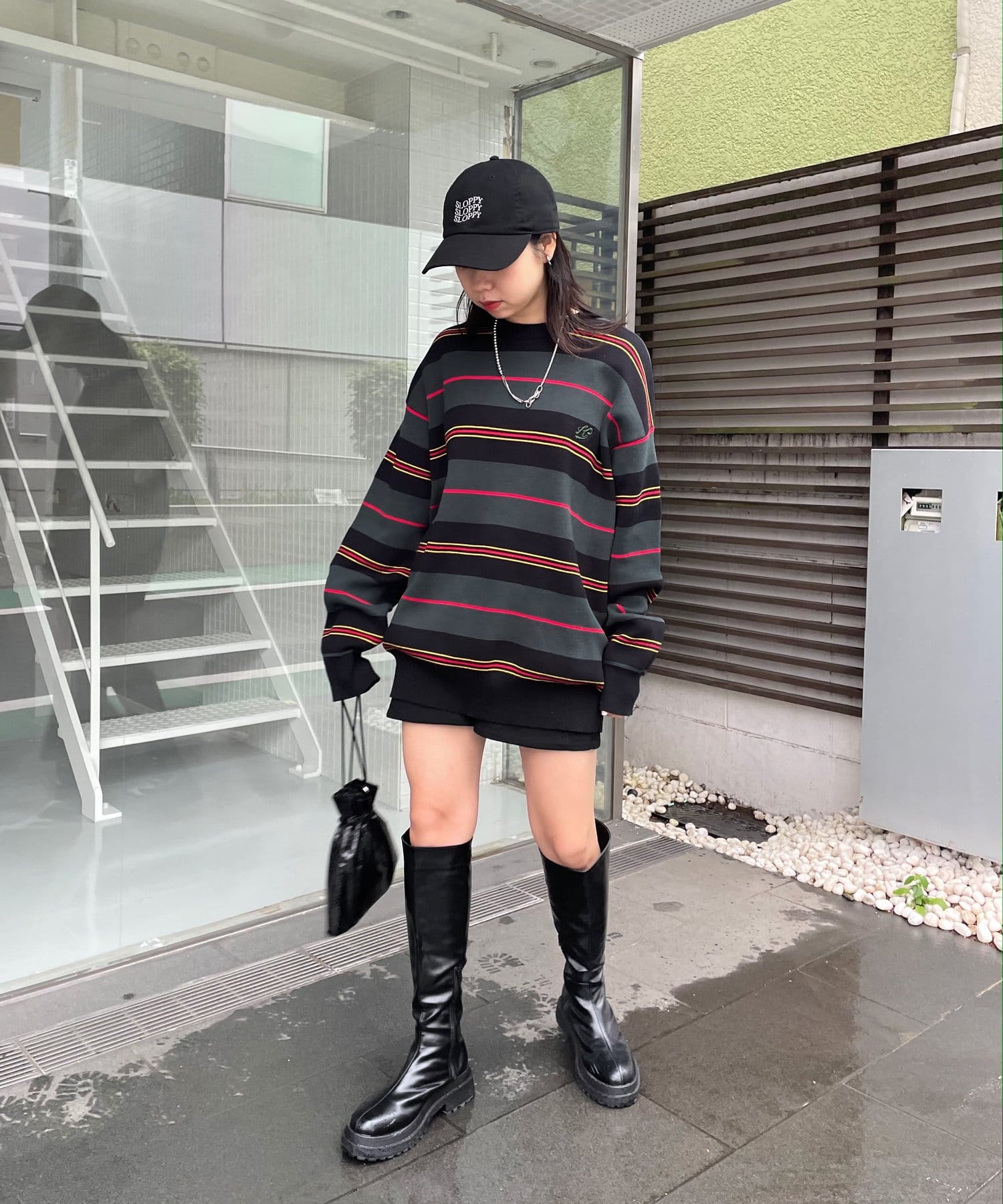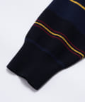 ・異なる太さのボーダーラインが鮮やかに並ぶニット。