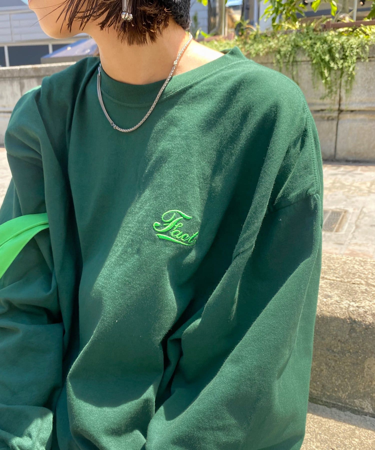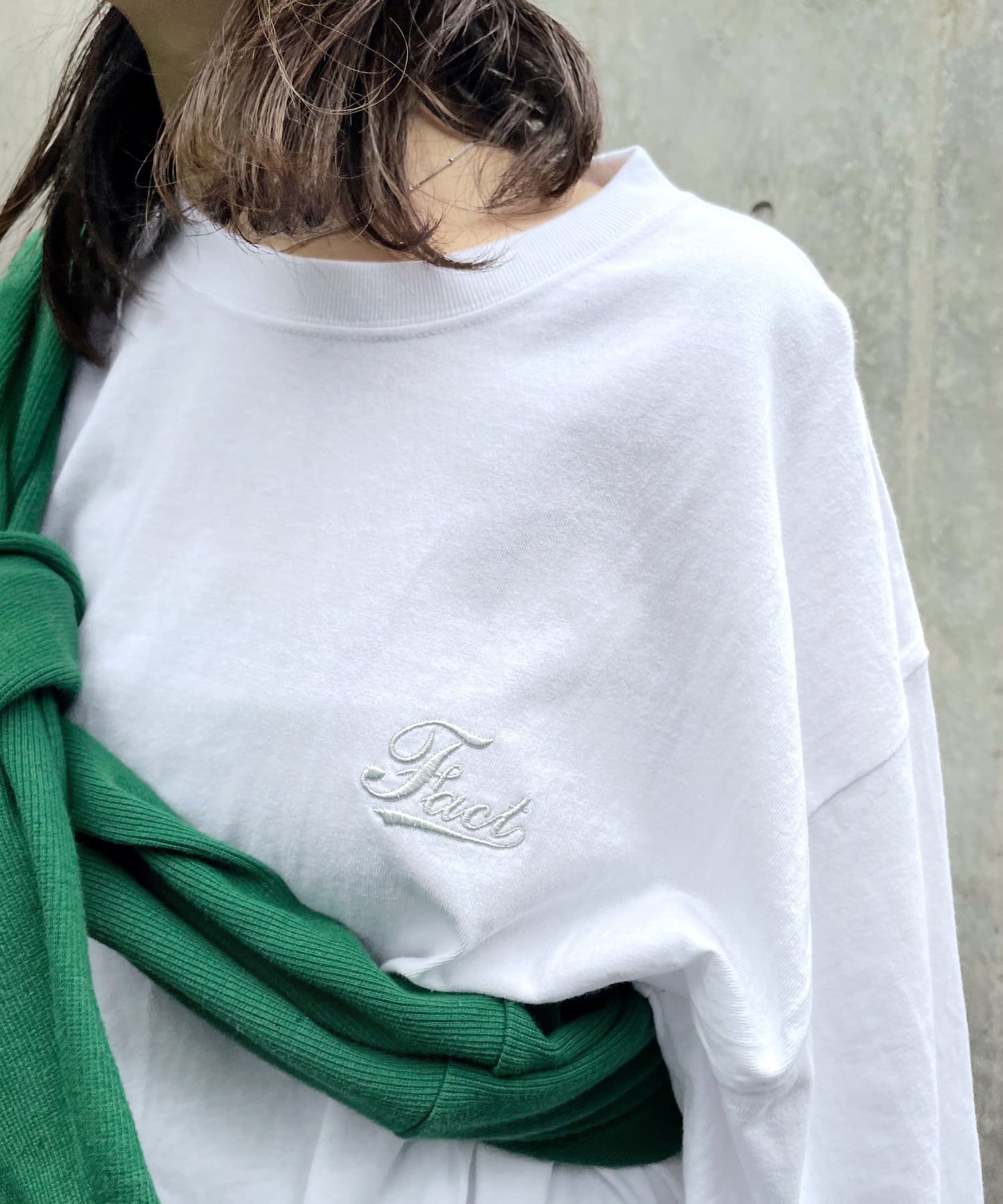 ・胸元のワンポイント刺繍は主張が激しくなく、様々なコーディネートへの馴染みやすさ◎。