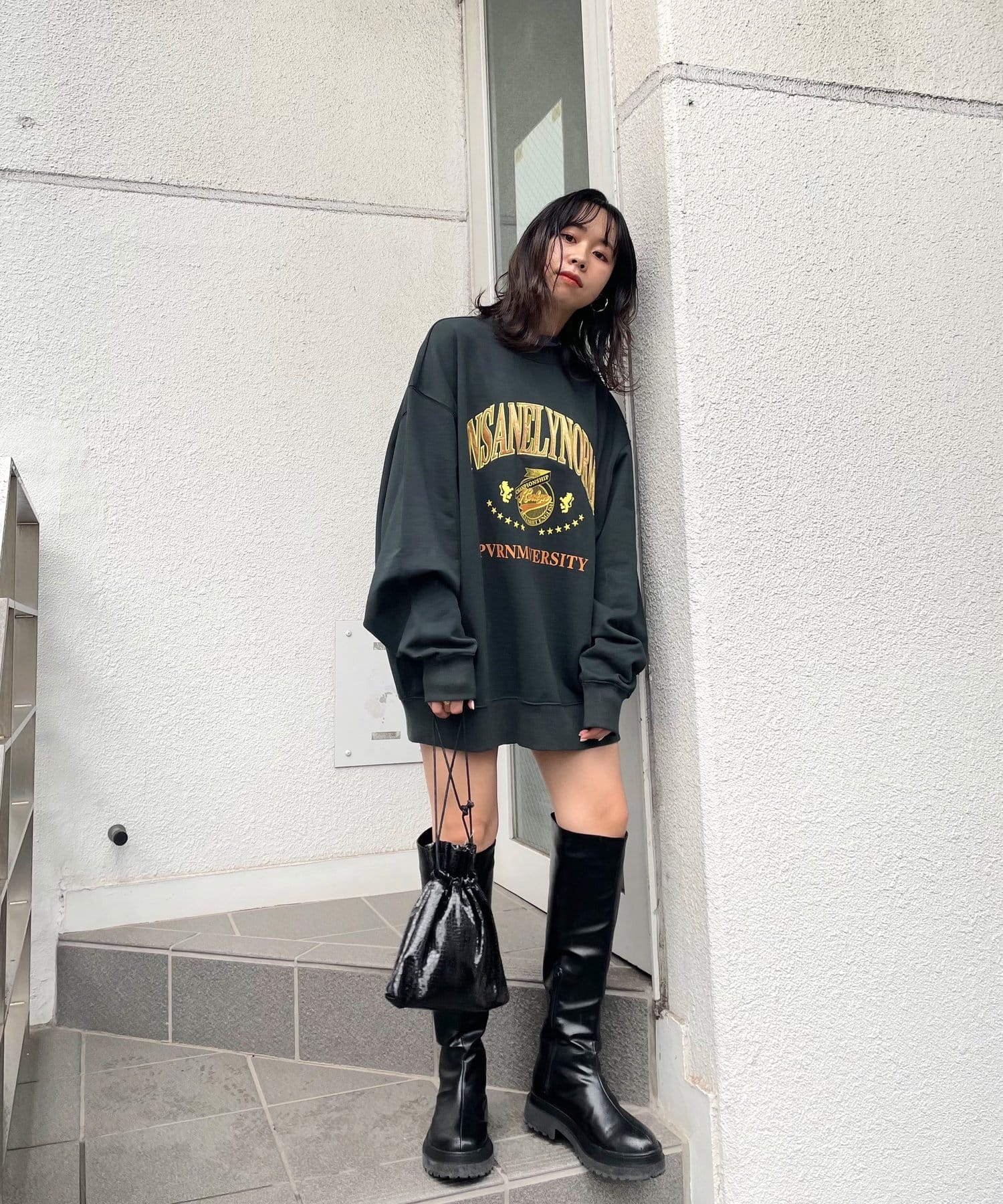 全体的にダボッとしていますが、袖がたぽっとしていて特に可愛いです。首がすこし詰まっている印象を受けました。グリーンがとても可愛い!