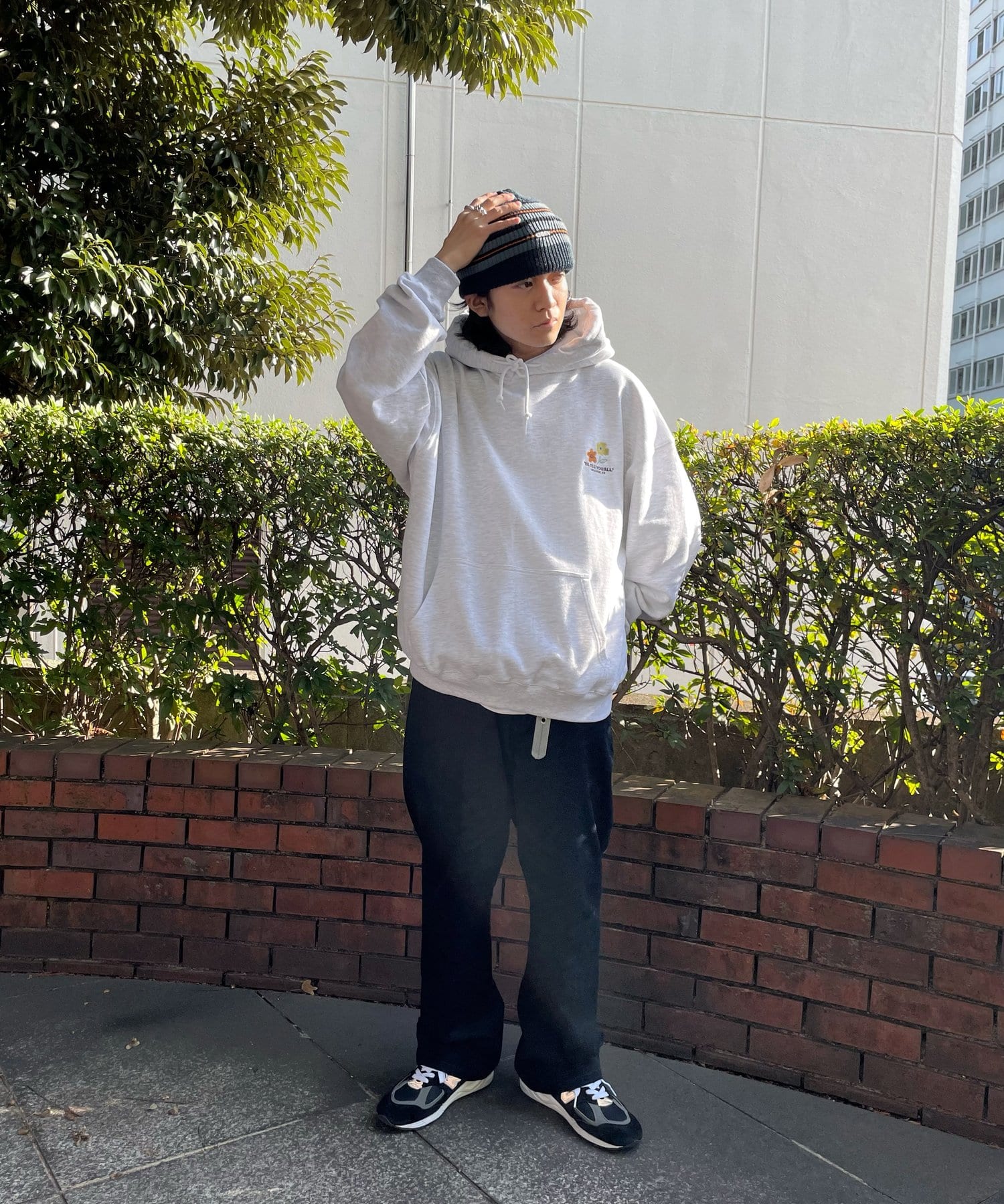 可愛らしいユルいお花の絵がポイントになるパーカーが登場。