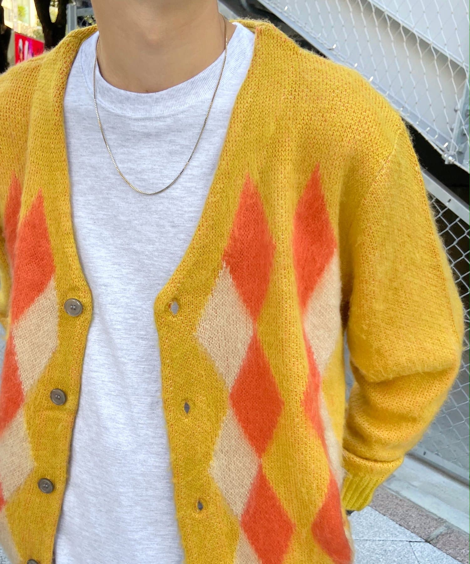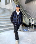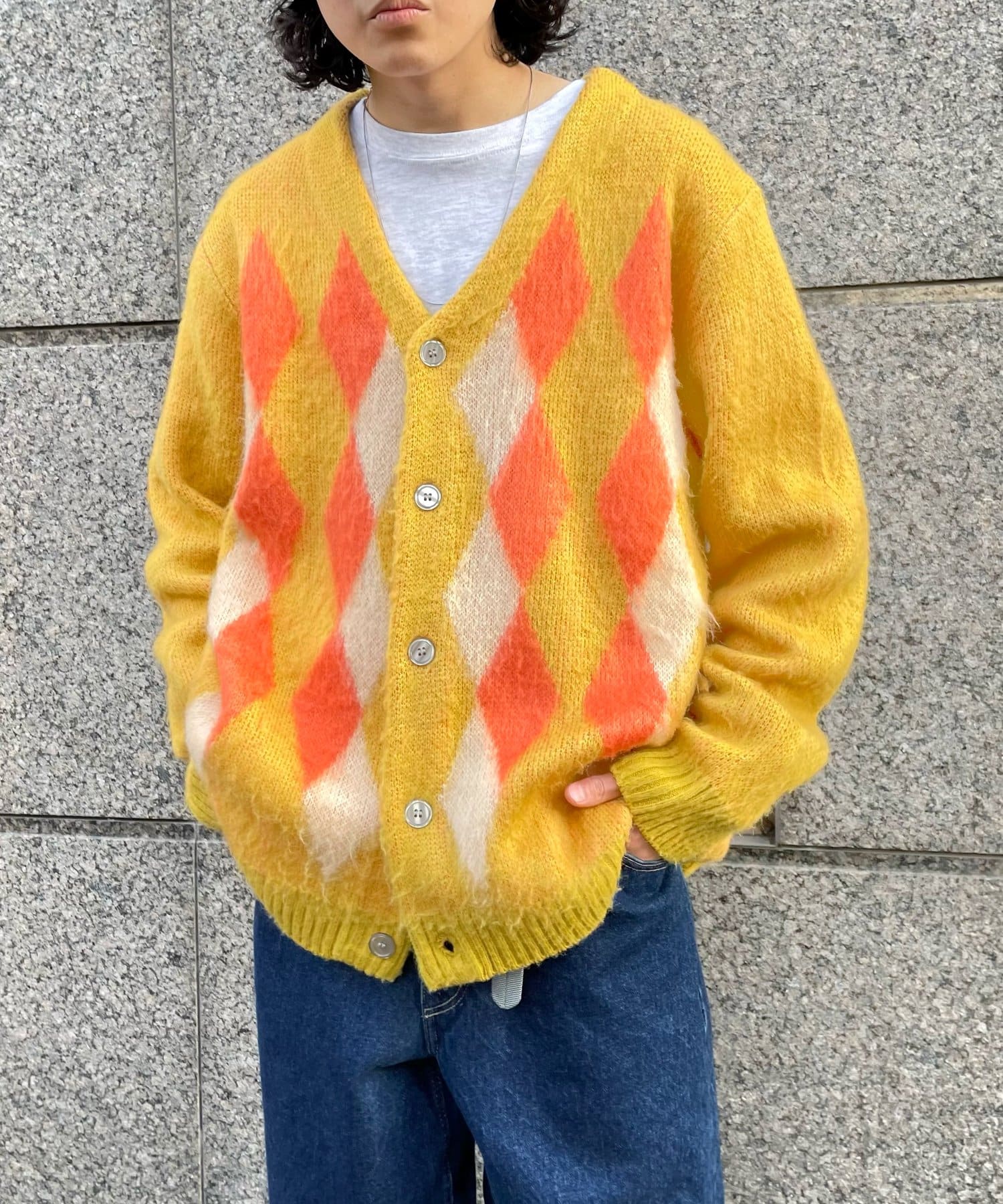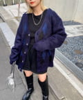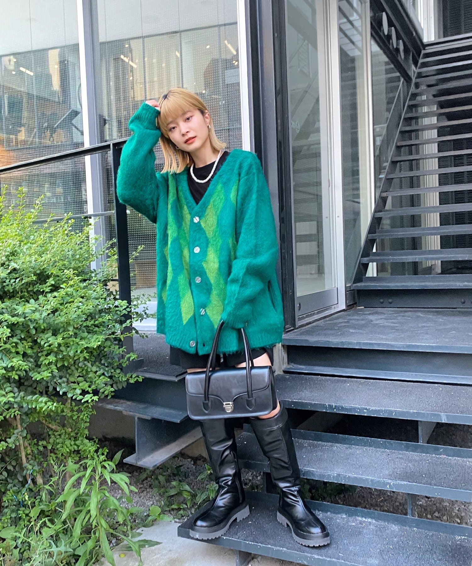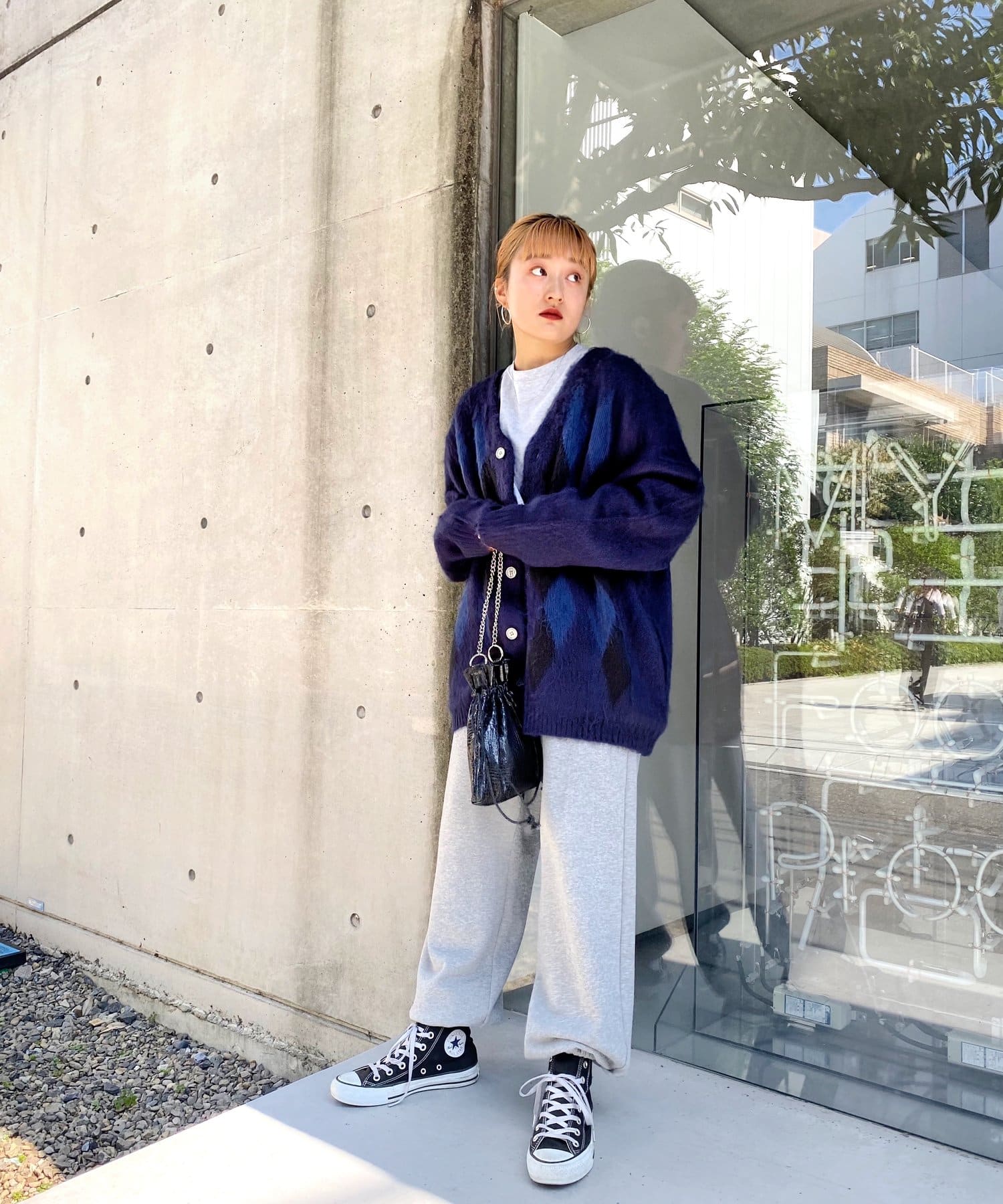 ・上品で知的に見えるアーガイル柄をビッグシルエットのカーディガンに施し、カジュアル感をプラス。