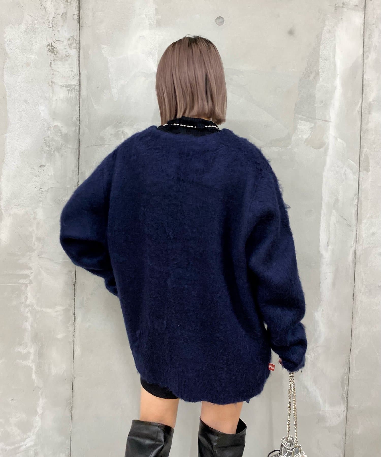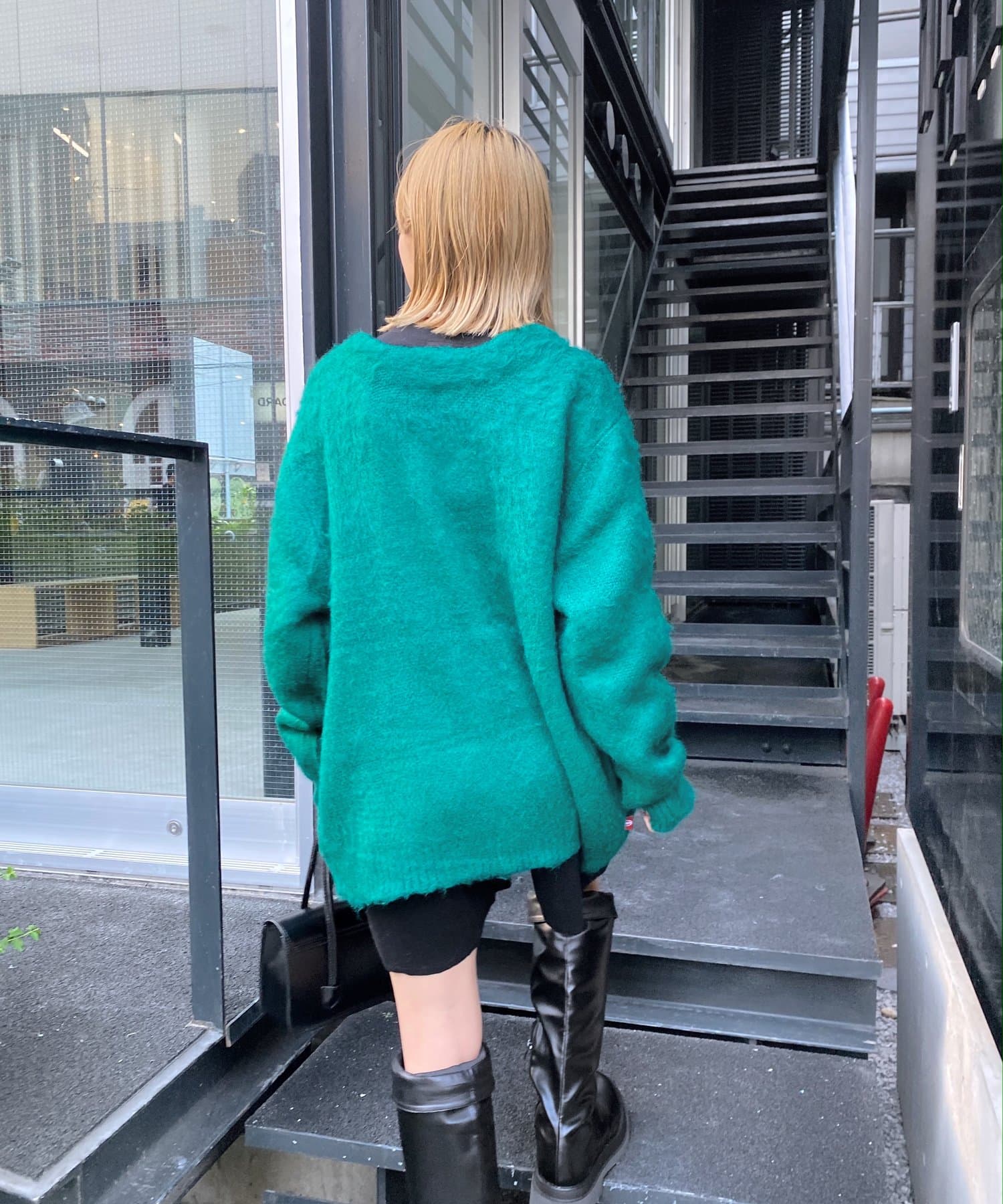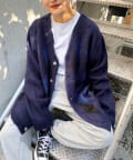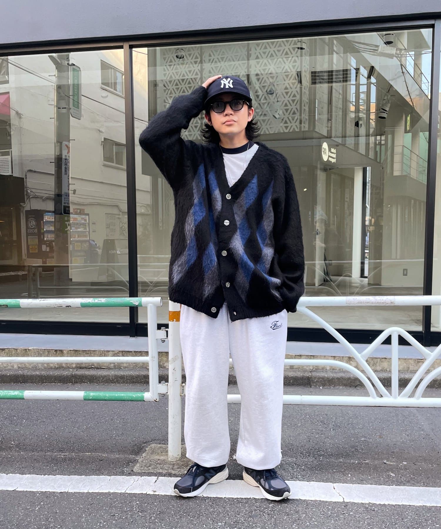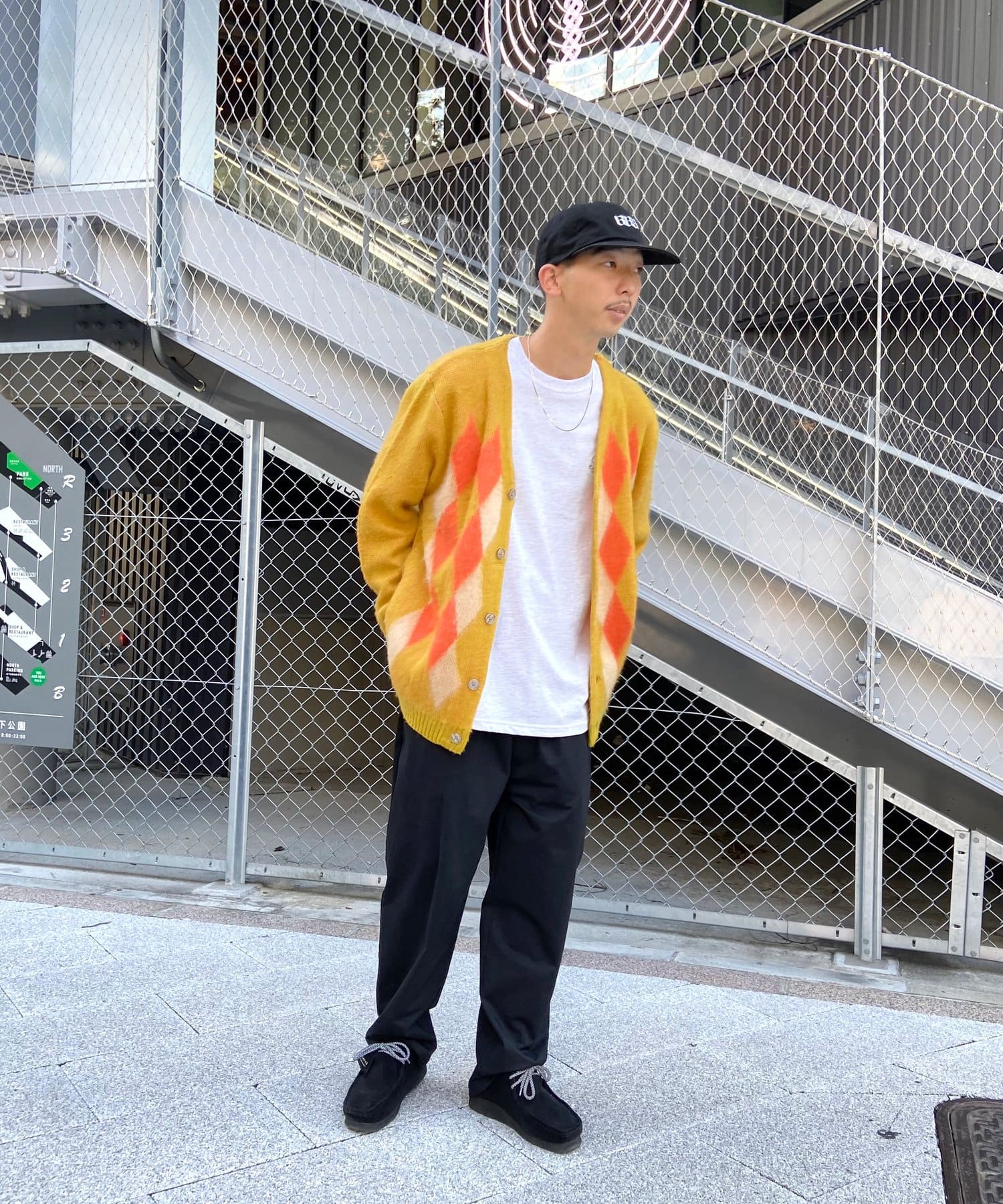 ・上品で知的に見えるアーガイル柄をビッグシルエットのカーディガンに施し、カジュアル感をプラス。