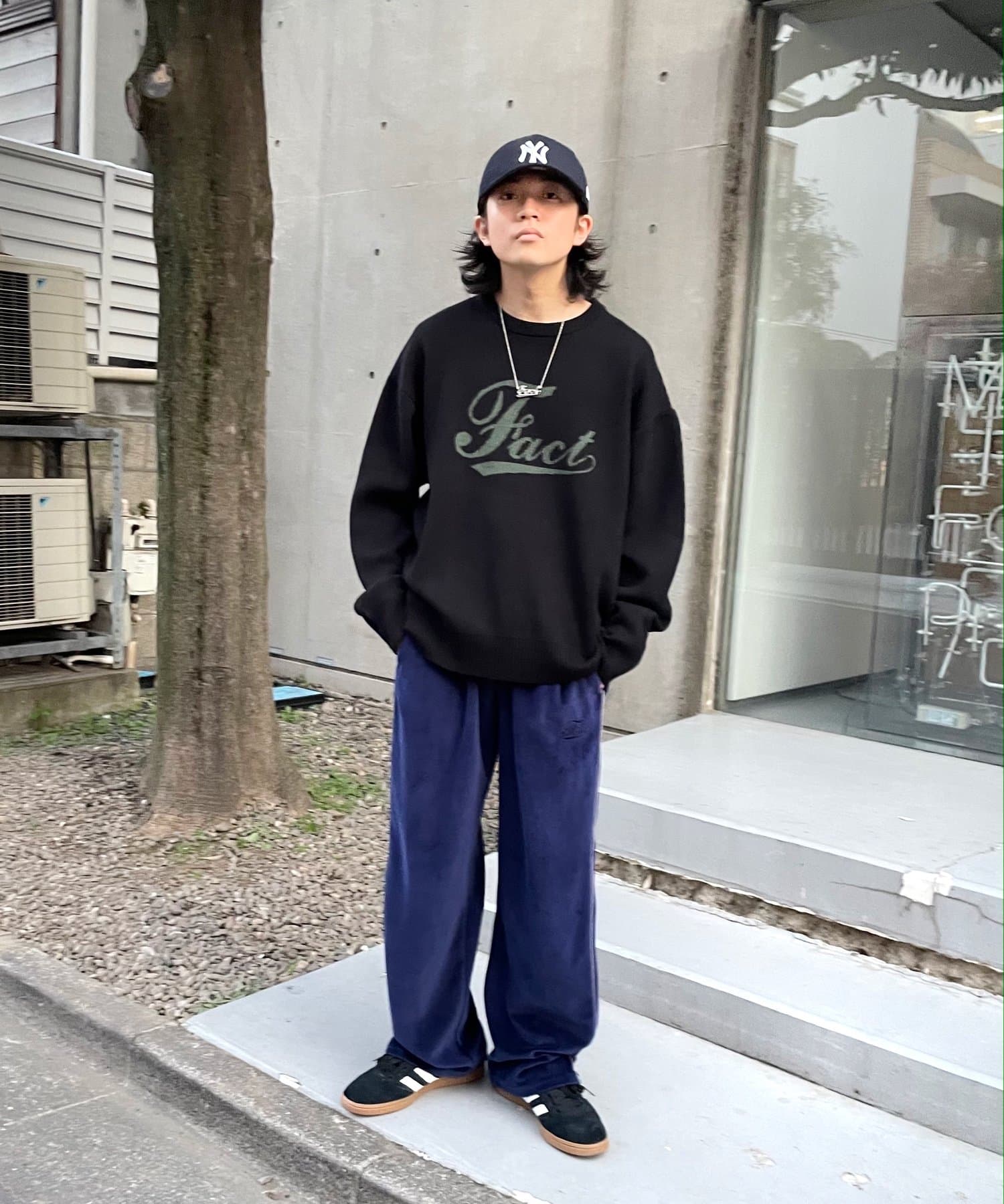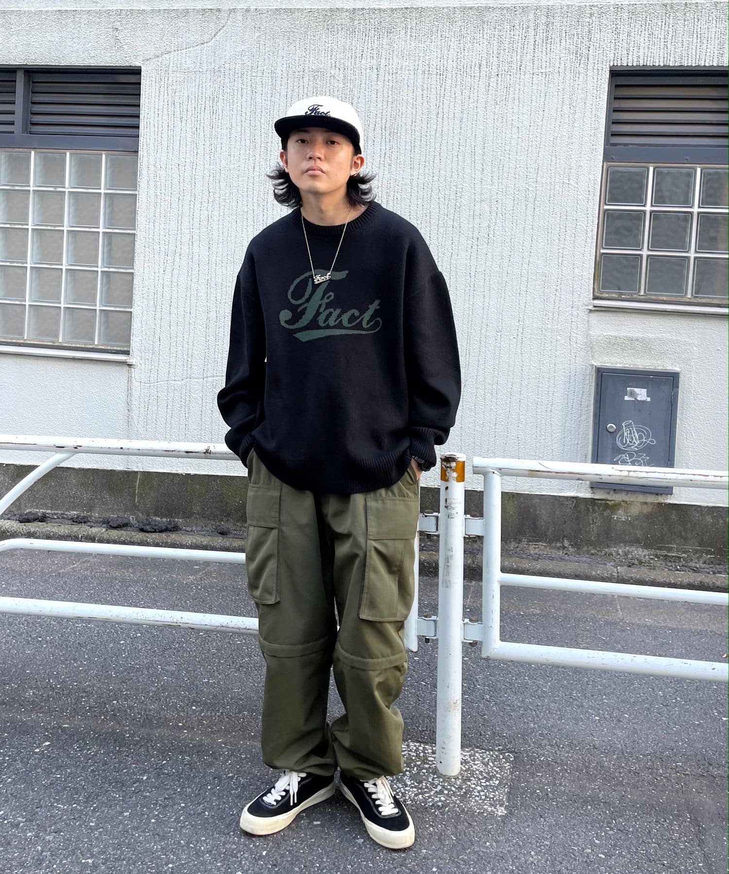 ・存在感のある大きな“Fact”ロゴがコーデを華やかに仕上げます。