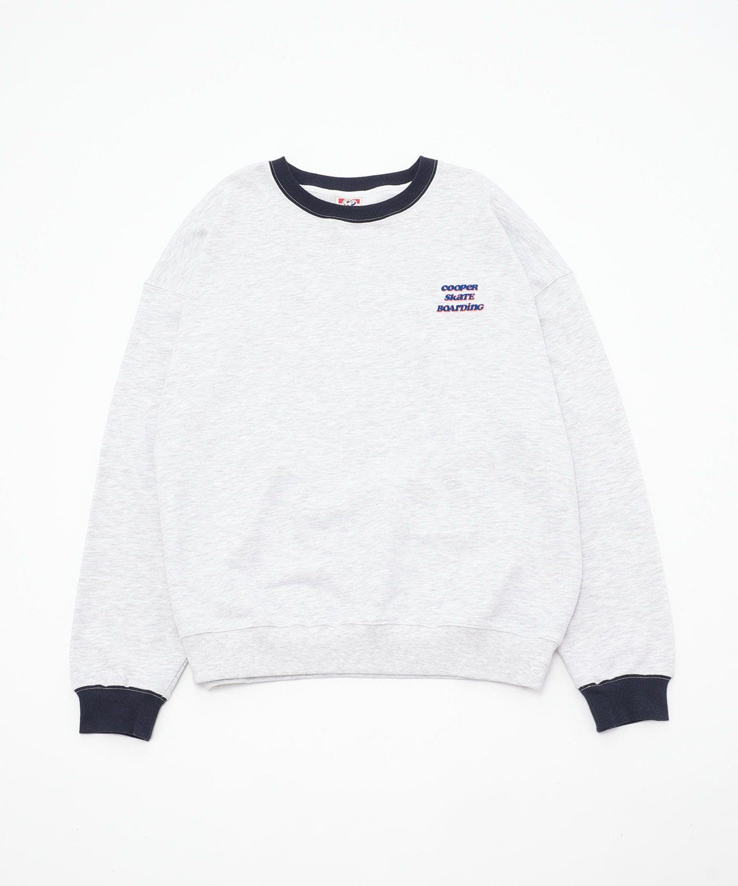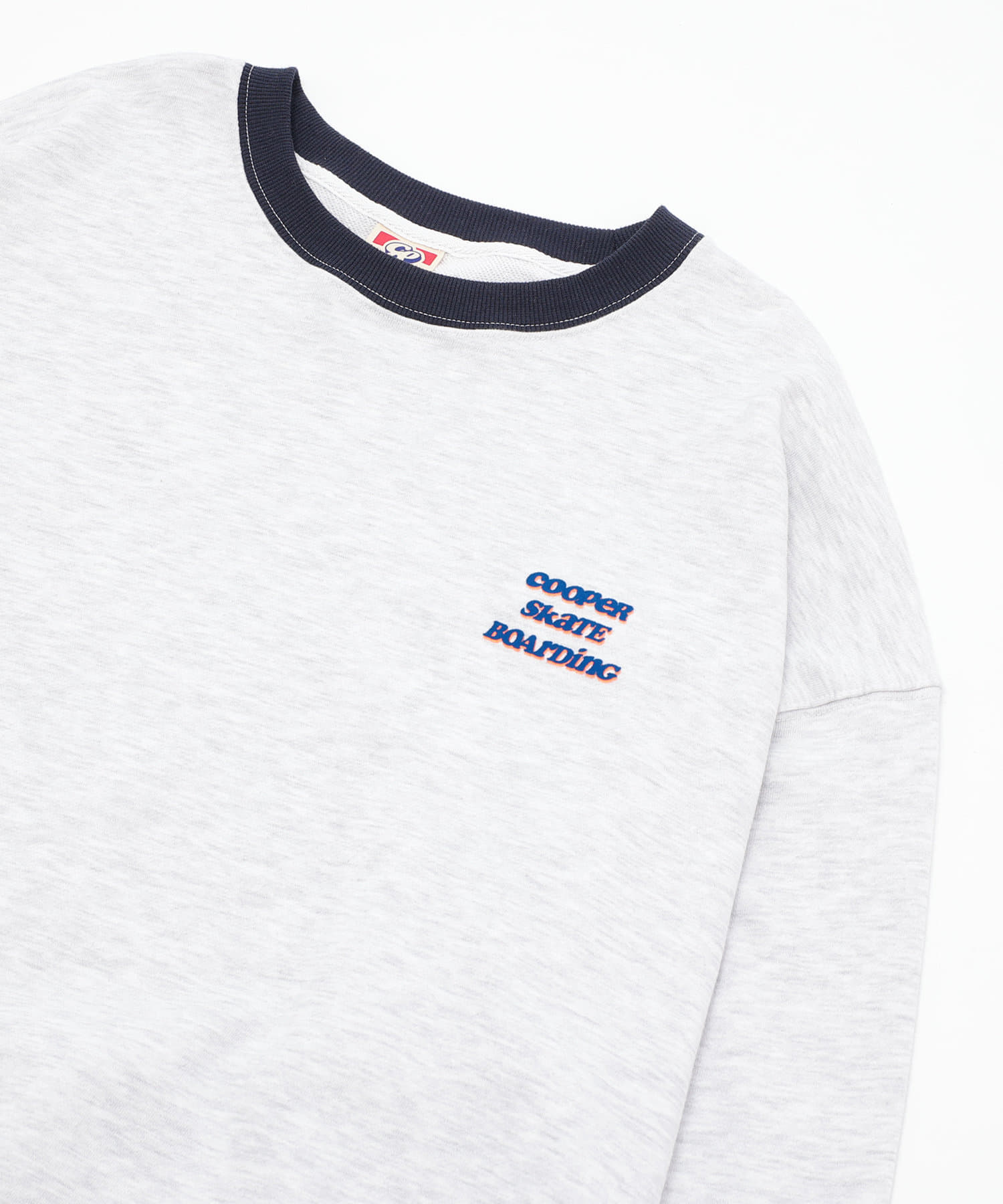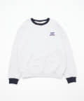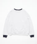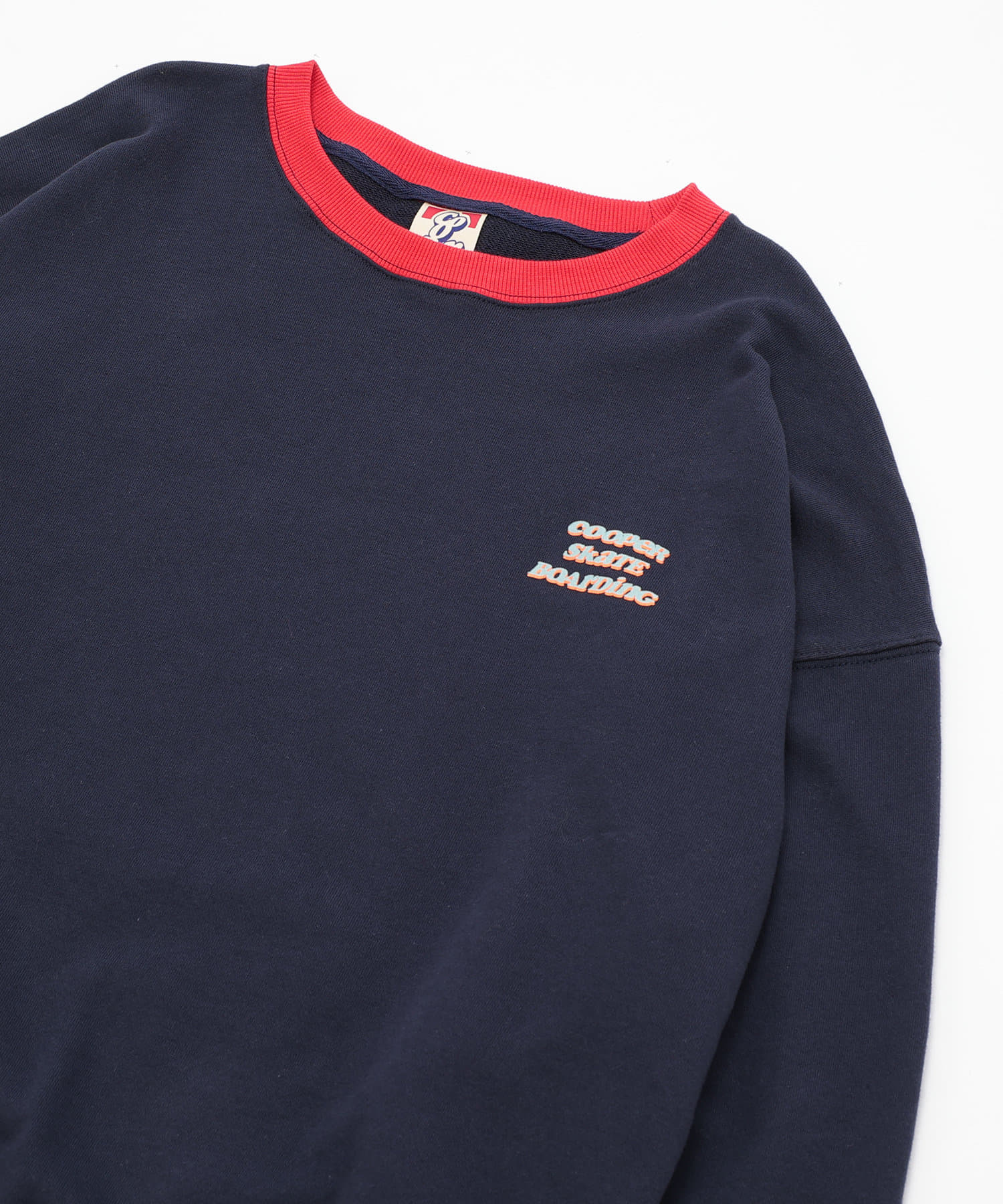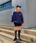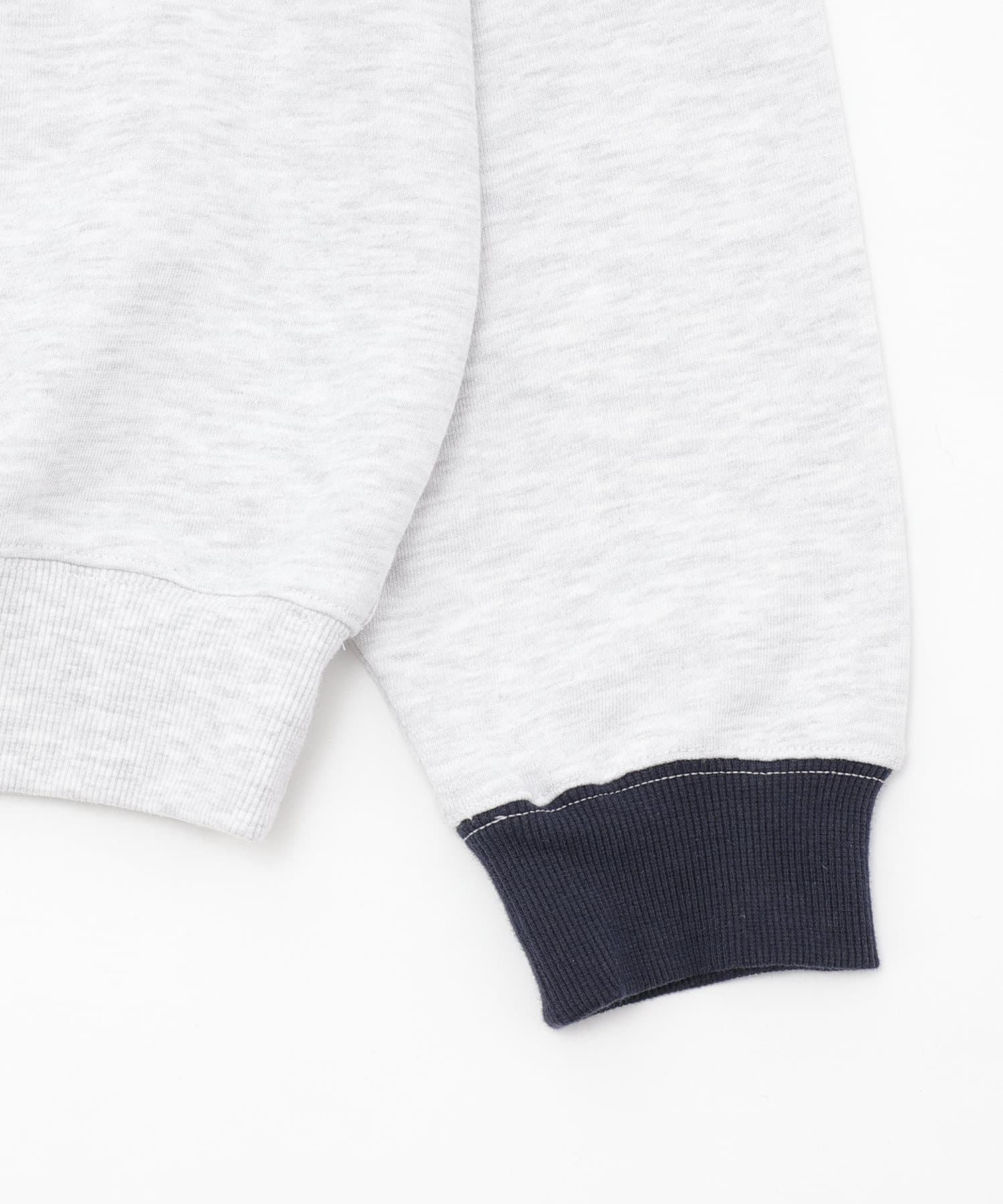 コーデのアクセントカラーになるリンガーデザインのクルースウェット