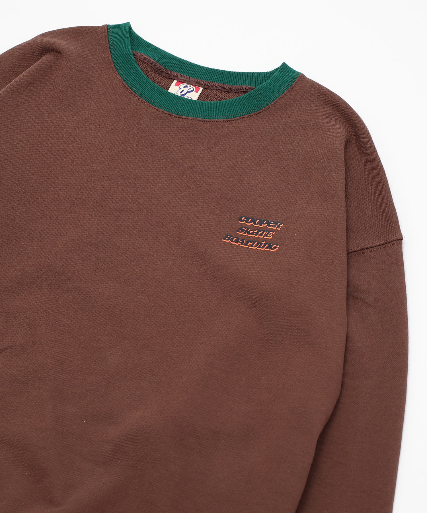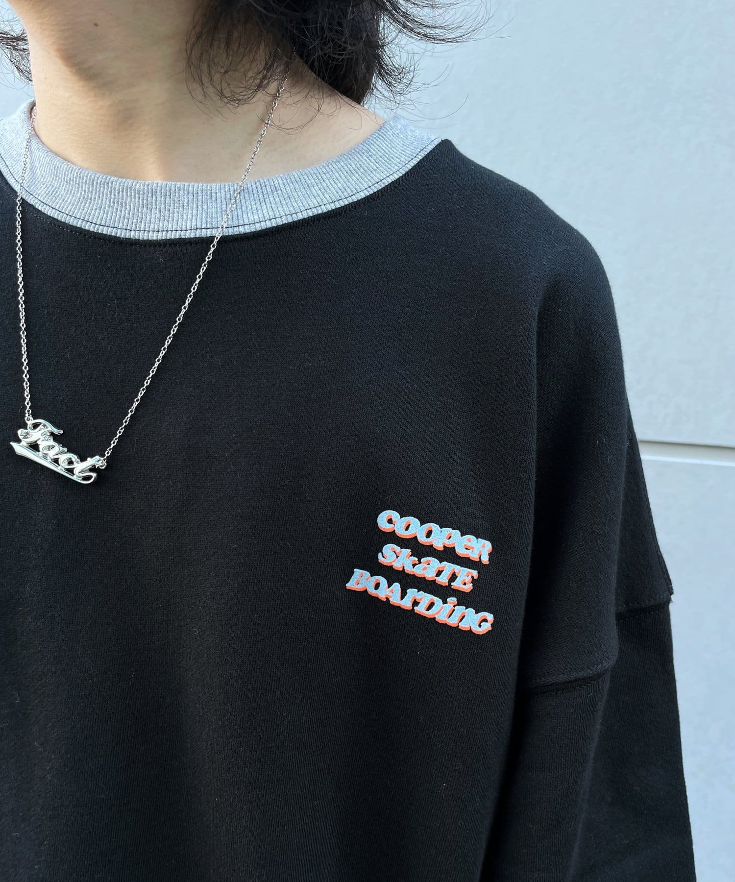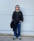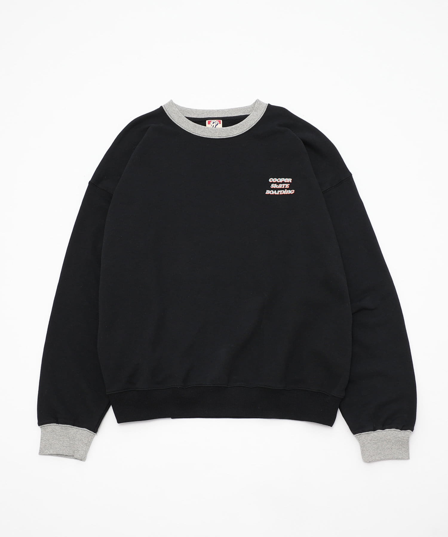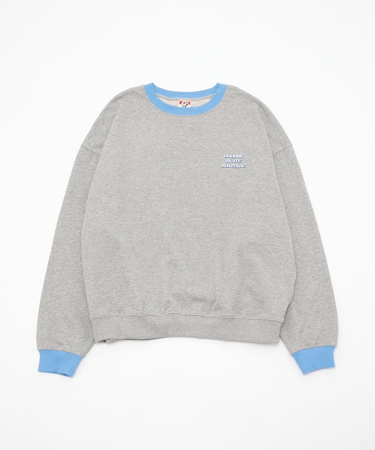 コーデのアクセントカラーになるリンガーデザインのクルースウェット