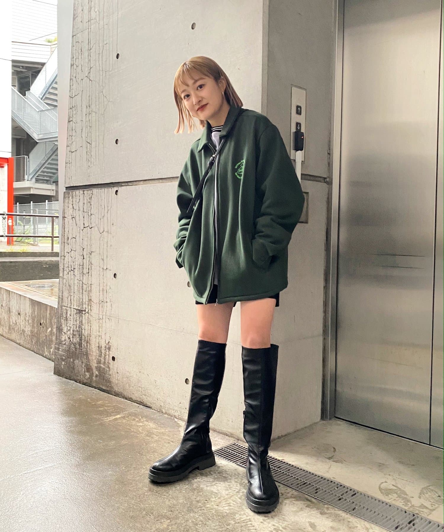 ・レディースはショートパンツ×ロングブーツ合わせが今季イチオシです。