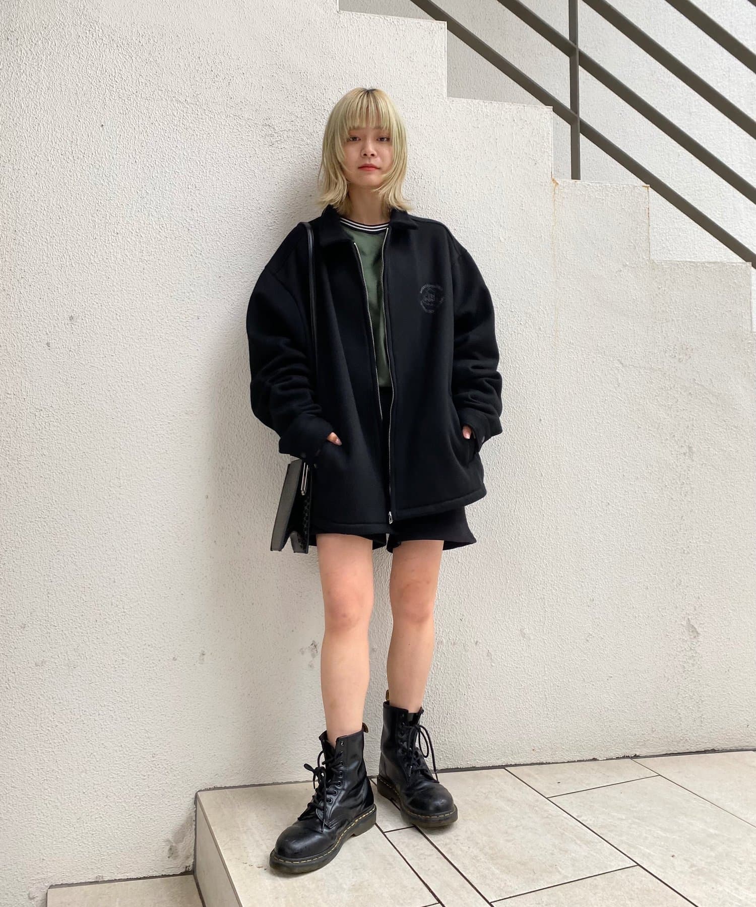 ・同シリーズのロンT合わせは、シンプルなコーチジャケットにロンTの首元のラインが映えます。